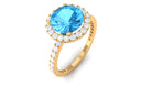 Real Swiss Blue Topaz Halo Engagement Ring with Diamond