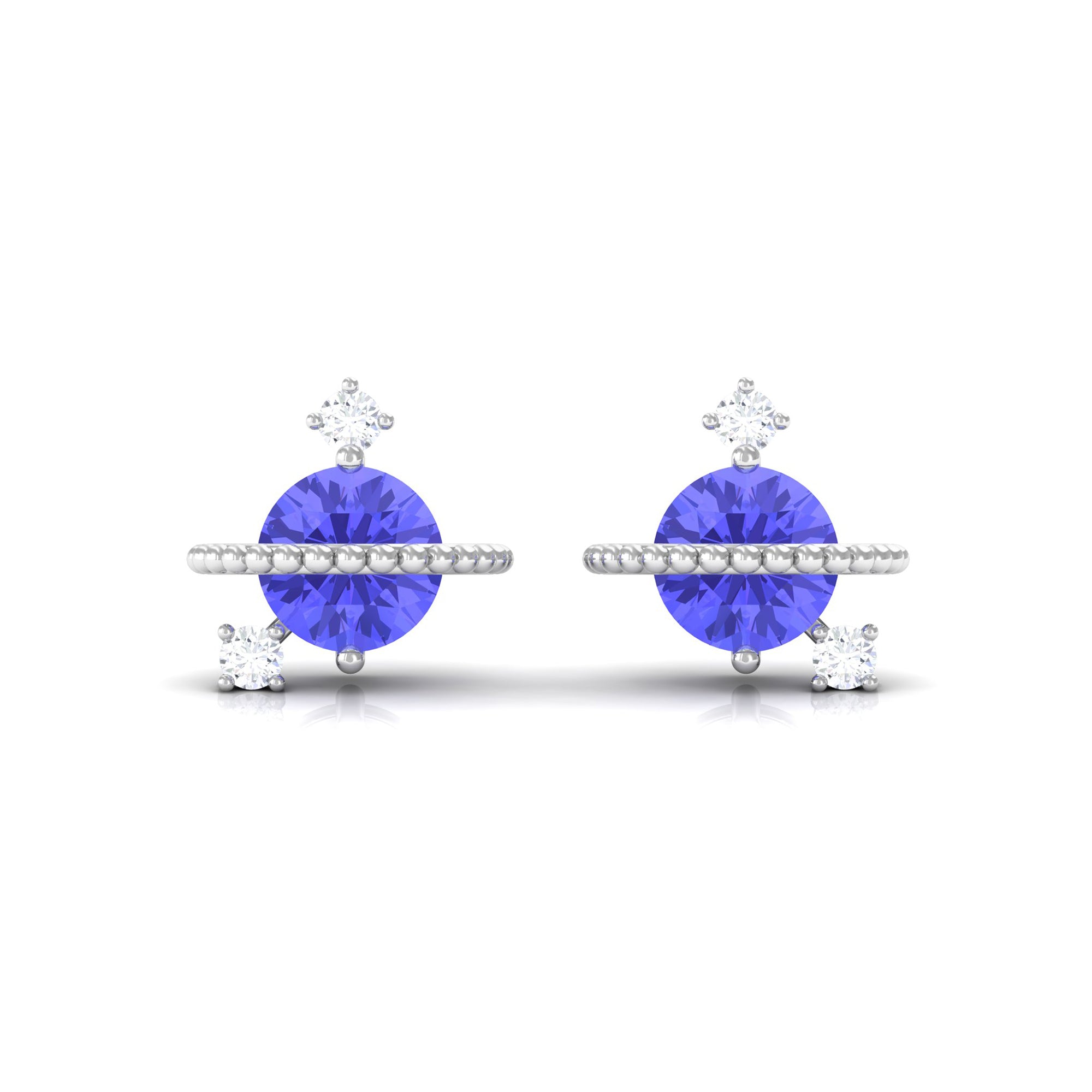 Real Tanzanite and Diamond Celestial Stud Earrings