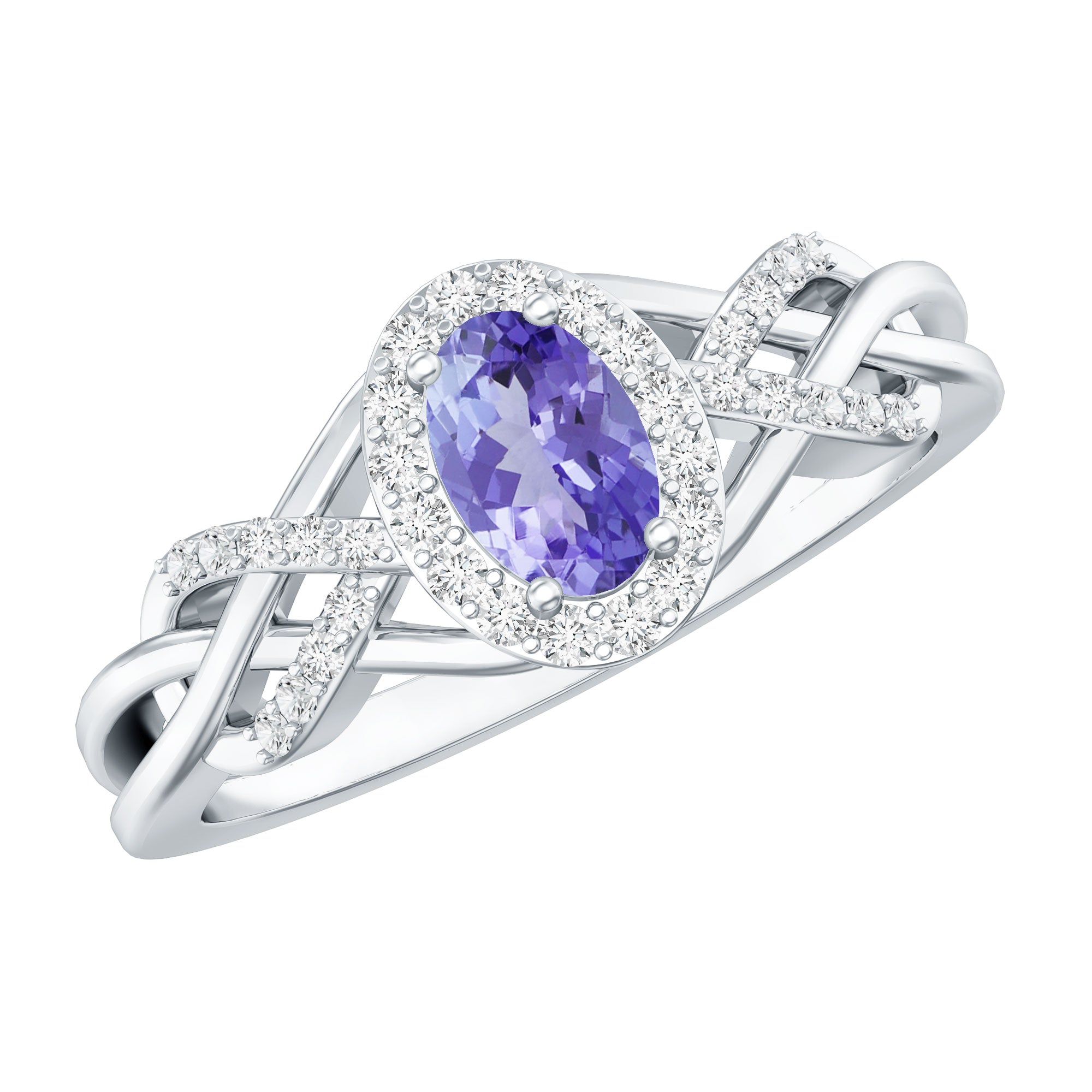 Real Tanzanite and Diamond Engagement Ring with Criss Cross Shank