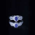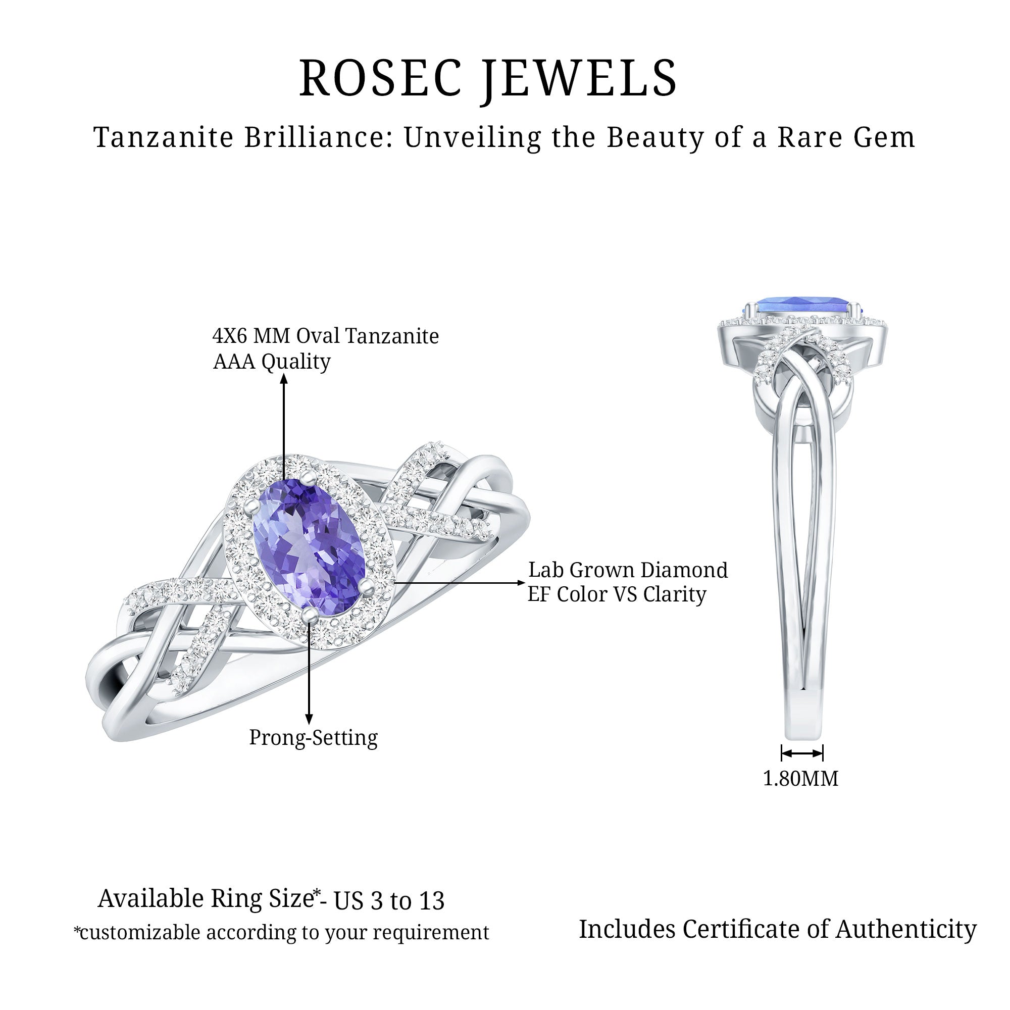 Some love stories deserve a design that is as rare and unforgettable as the bond itself. This beautiful Tanzanite Engagement Ring brings just that, a perfect mix of elegance and individuality. Thoughtfully crafted in 14K white gold plated silver, the Criss Cross Ring balances timeless design with a modern twist, making it a meaningful symbol of your forever promise. At the center sits a 4X6 MM oval cut tanzanite, securely held in prong setting to allow light to pass through and enhance its natural brilliance. Surrounding the center stone is a sparkling halo of round lab grown diamonds that gently catch the light from every angle, adding a soft glow to the overall design. What makes this Oval Engagement Ring truly stand out is the crossover style shank, accented with additional lab grown diamonds. The twist detail represents two lives intertwined, moving forward together, stronger and brighter. It is a subtle yet beautiful design choice that adds depth and symbolism to the ring, all while keeping it elegant and wearable. It comes with a certificate of authenticity and is beautifully packed in a signature jewelry box, ready to become part of your story.