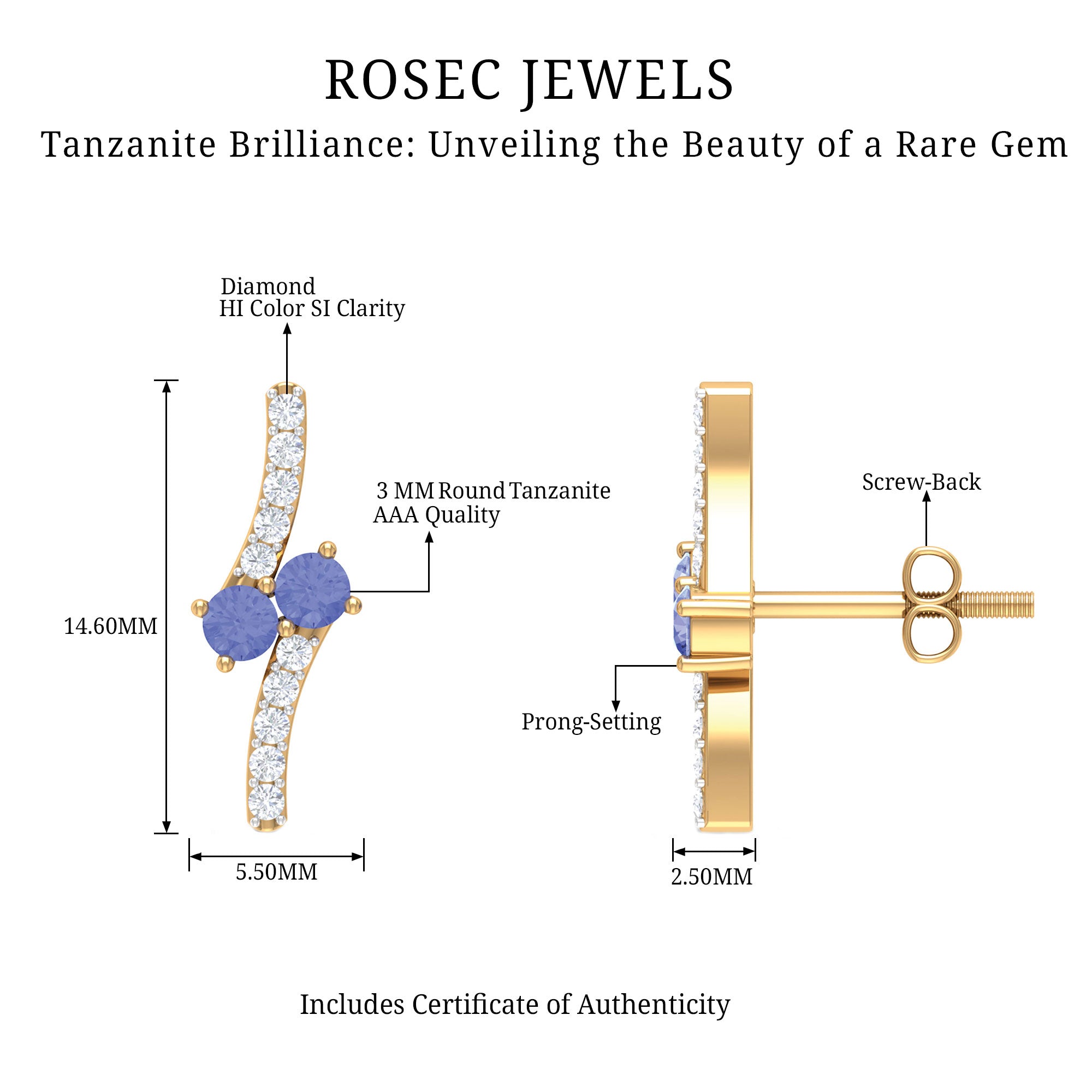 Dazzle your way through with these Minimal Stud Earrings featuring Round Shape Tanzanite set in Prong Setting with round shape Diamond in a Pave Setting.