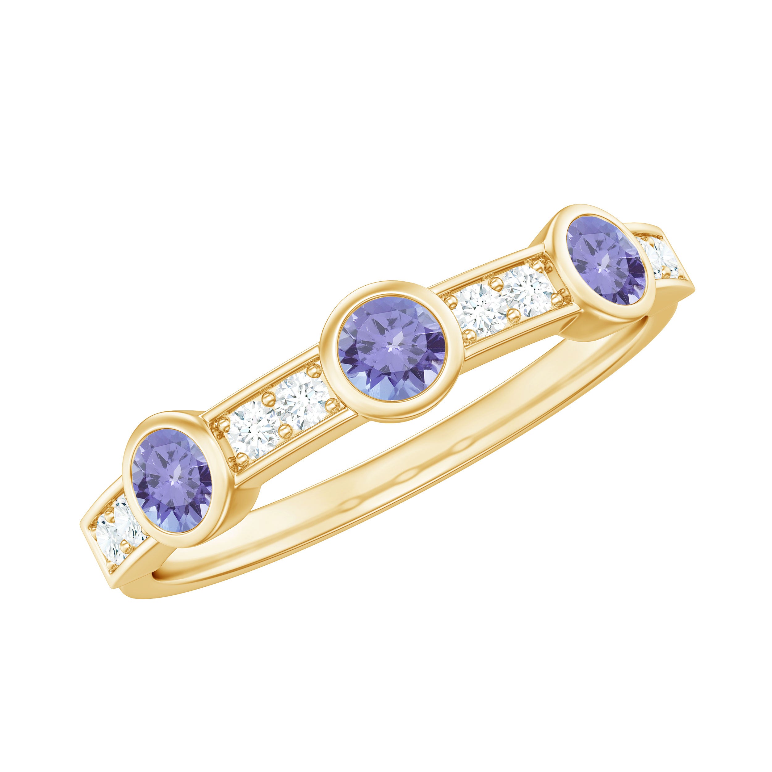 The Round Shape Tanzanite in Bezel Setting with Diamond on the Band Ring is a perfect piece for your special day and is a stunning Stackable Jewelry.