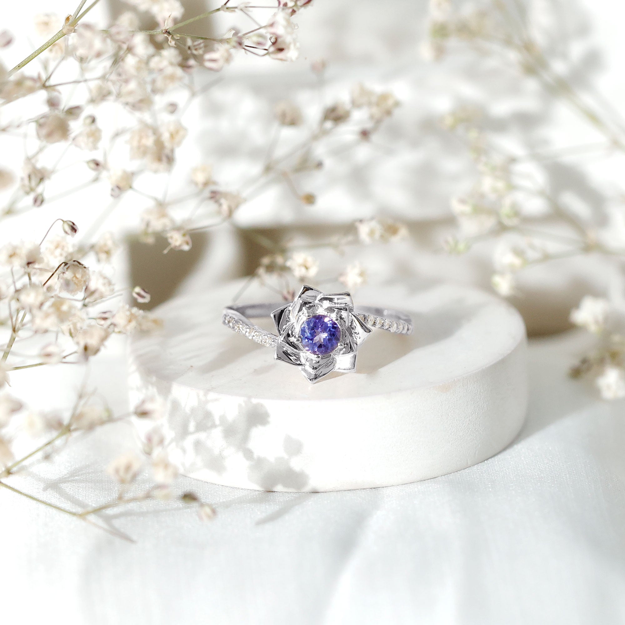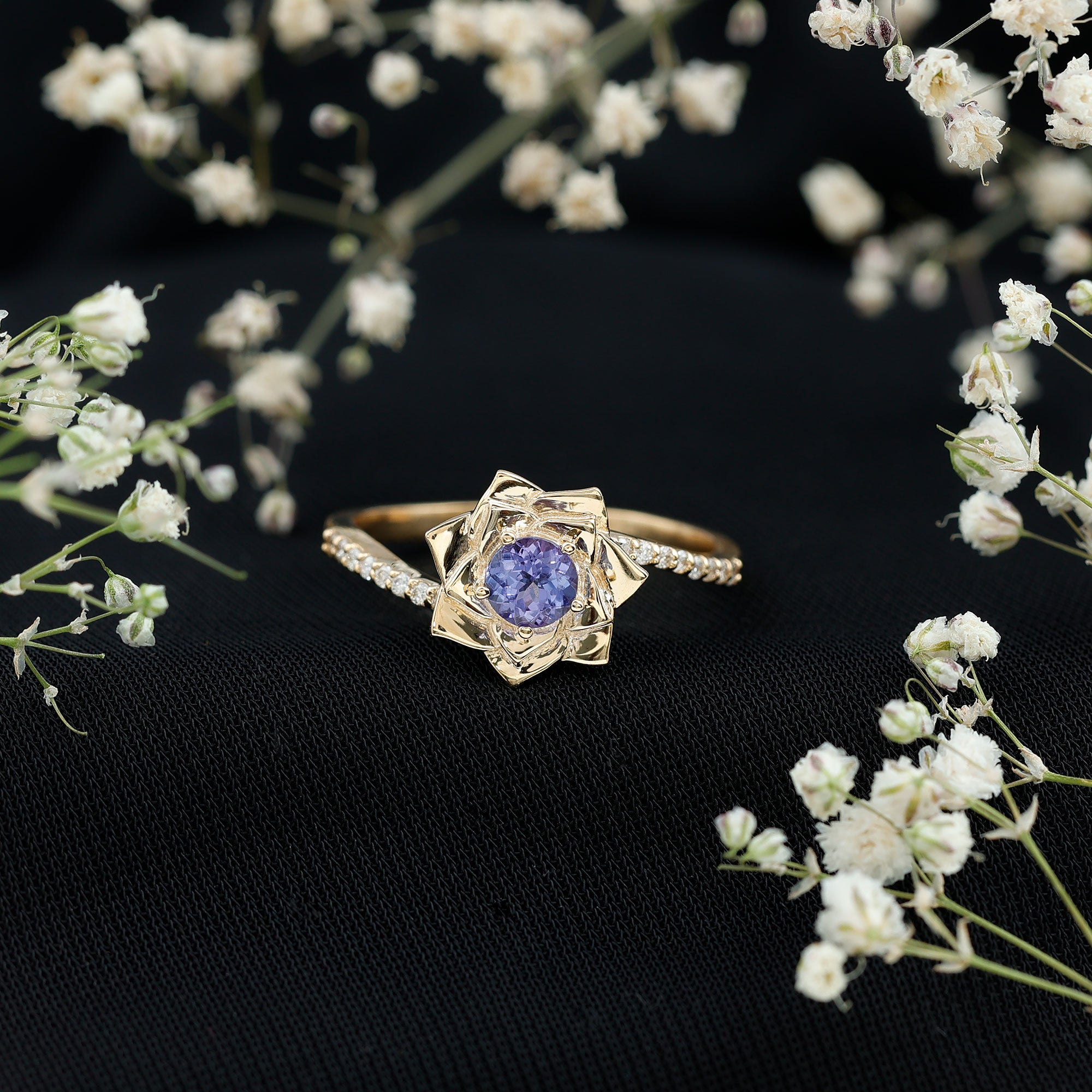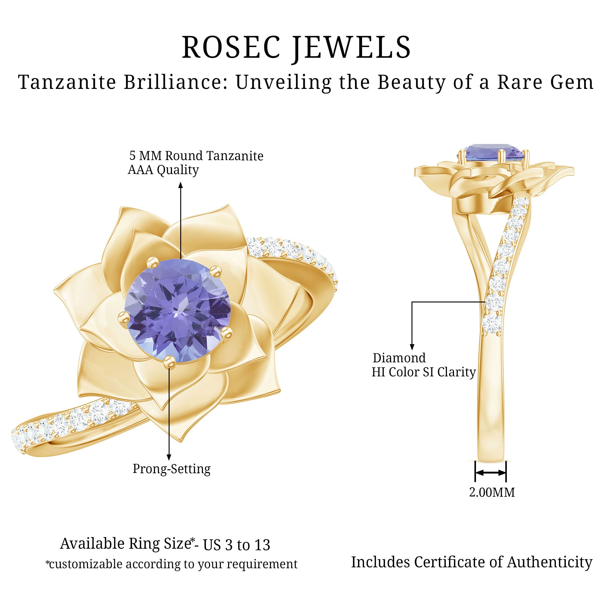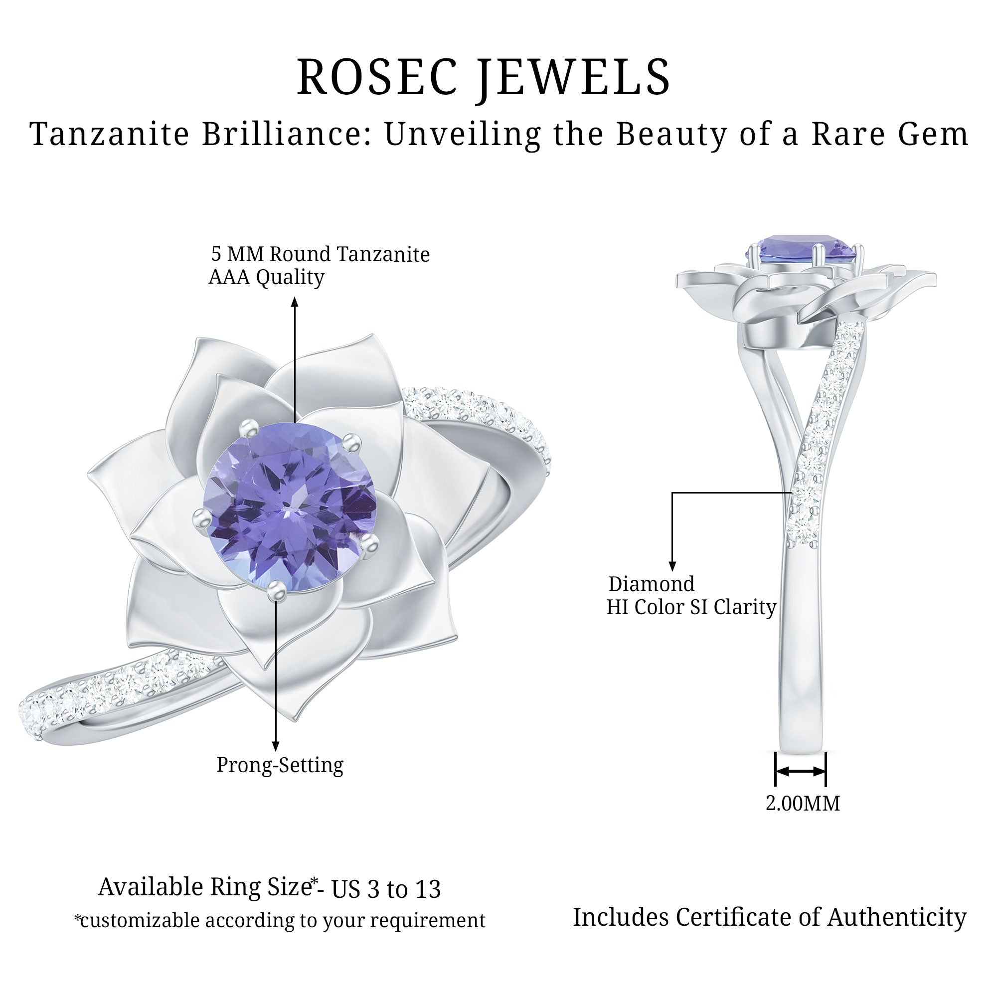 FAQs About: Real Tanzanite Rose Flower Engagement Ring with Diamond Bypass Shank