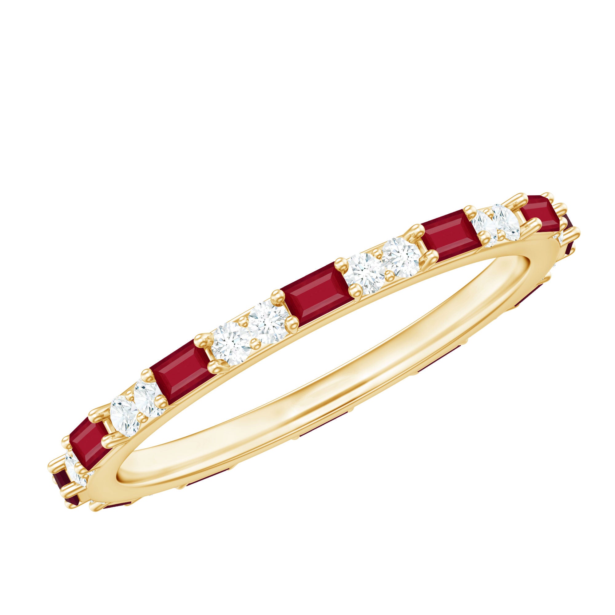 Embrace eternal passion with this Full Eternity Ring adorned with Ruby and Diamond gemstones. A captivating circle of love, radiating with fiery brilliance.