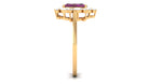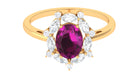 Make a stunning proposal with this elegant Rhodolite Engagement Ring. The ring features an oval cut Rhodolite surrounded by a halo of marquise and round moissanite. The designer halo adds a touch of glamour to this gorgeous piece of jewelry, crafted in beautiful gold. Celebrate your love in style with this stunning engagement ring.