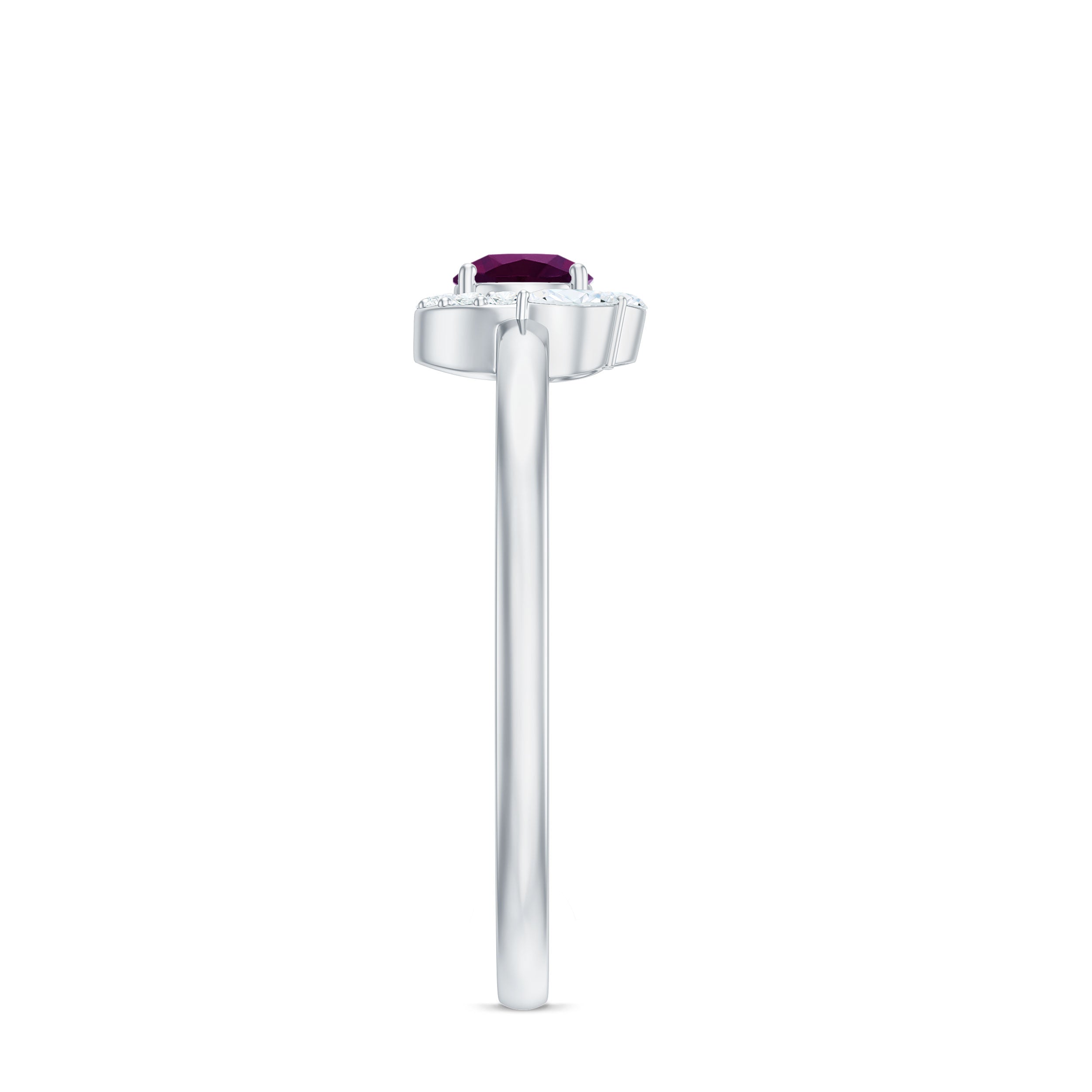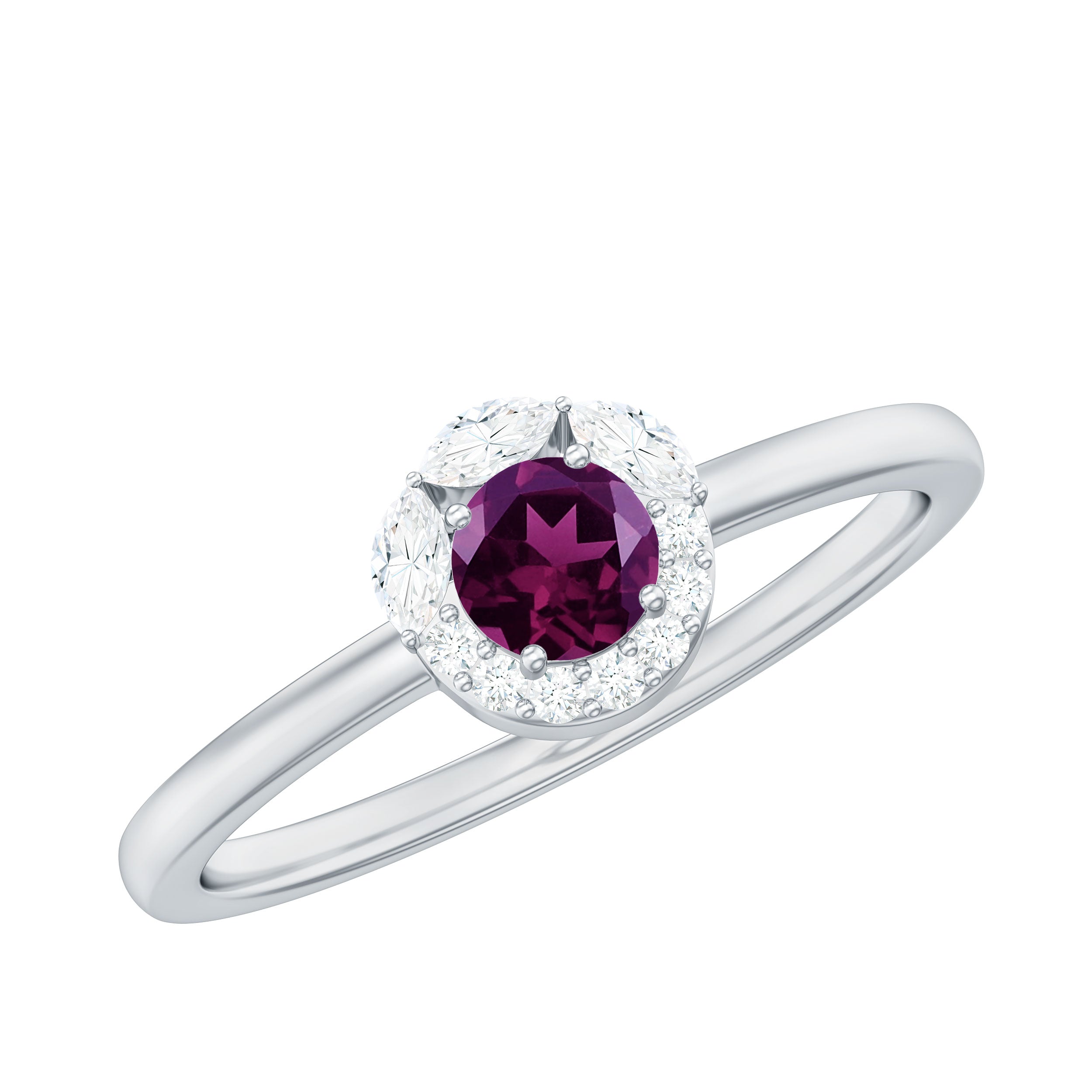 Rhodolite Minimal Promise Ring with Diamond Halo