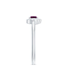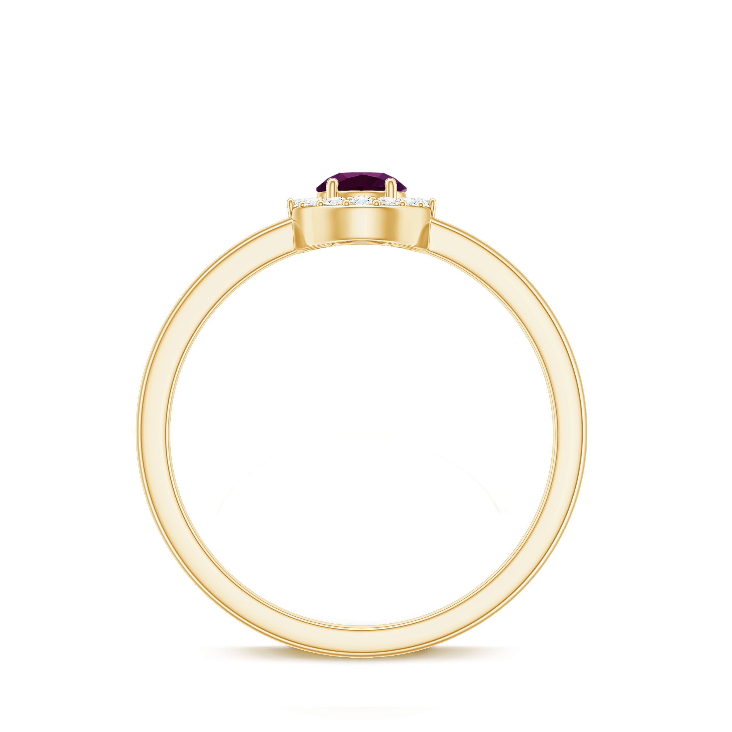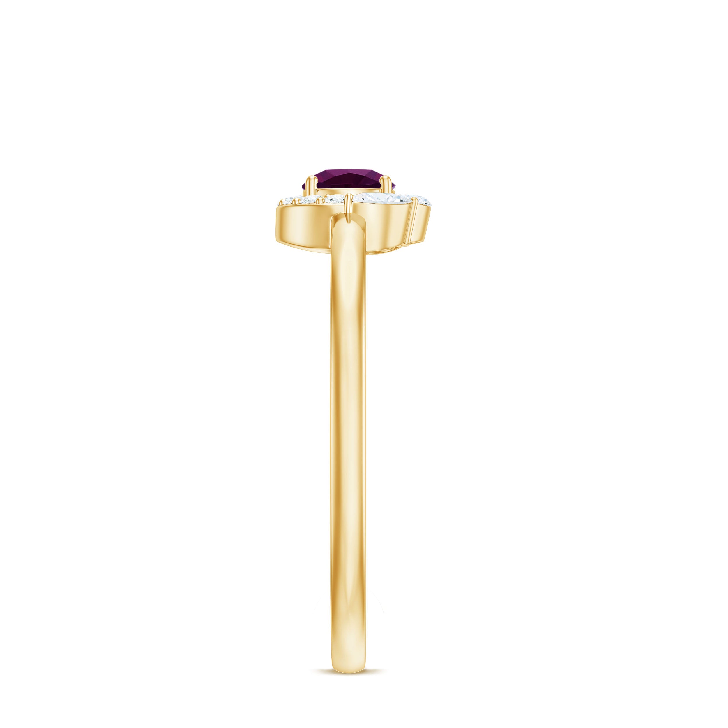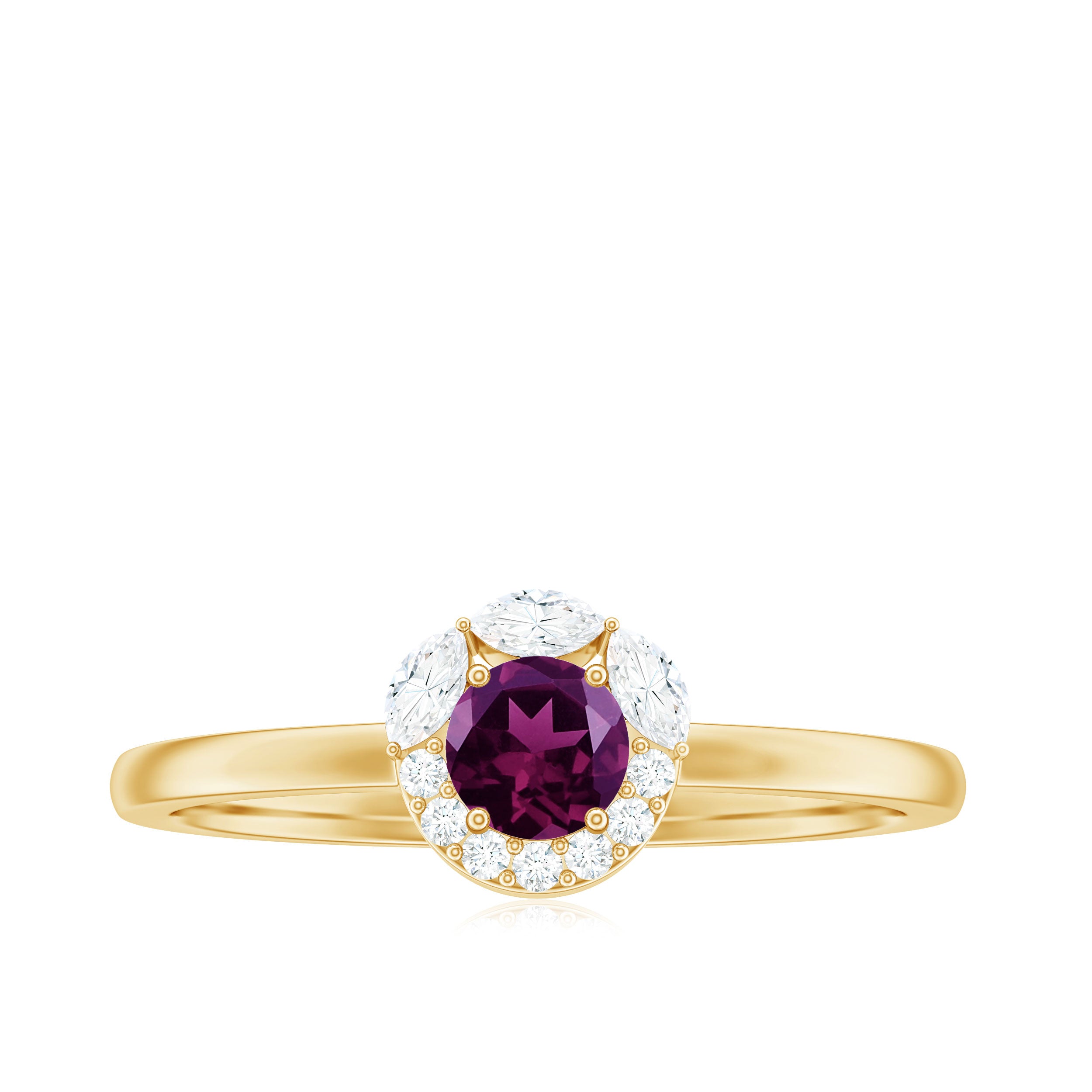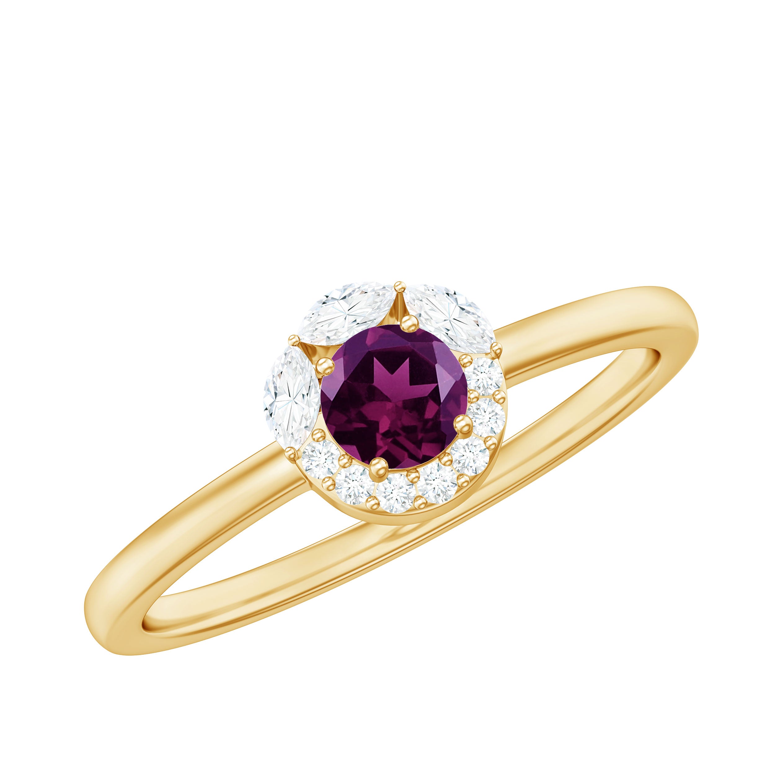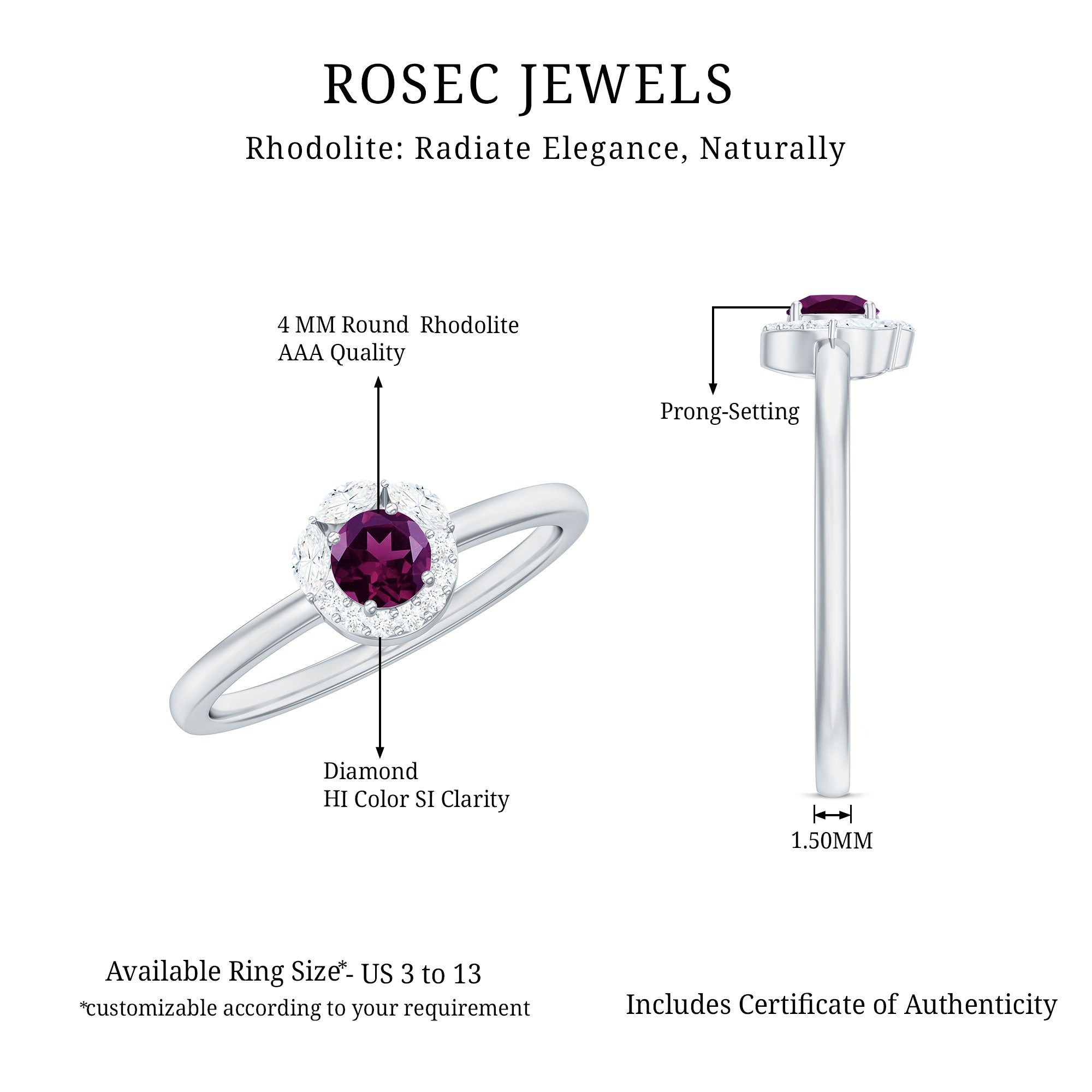 Seal your promise with this Minimal Promise Ring adorned with Rhodolite and Diamond Halo that adds brilliance to this symbol of commitment and love.