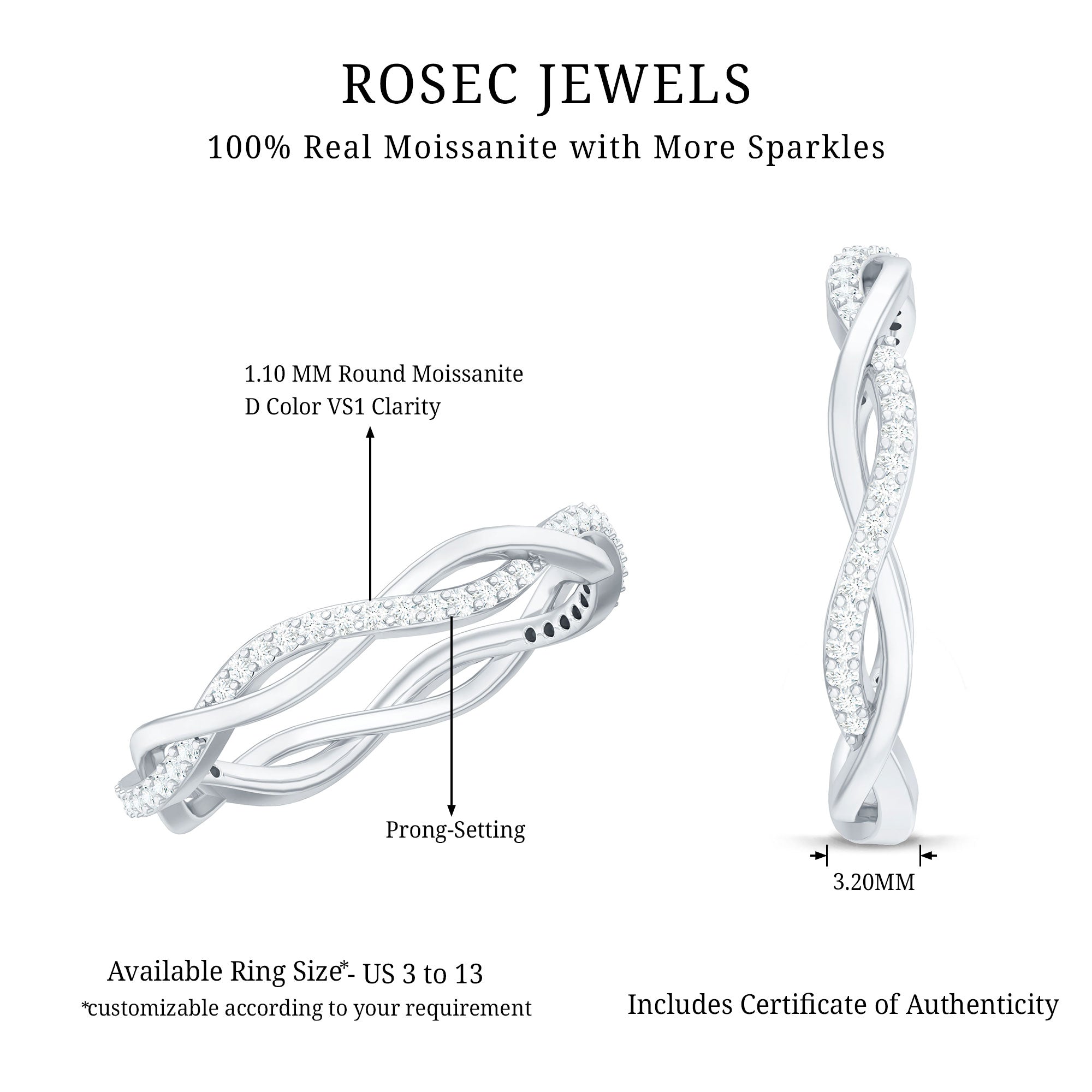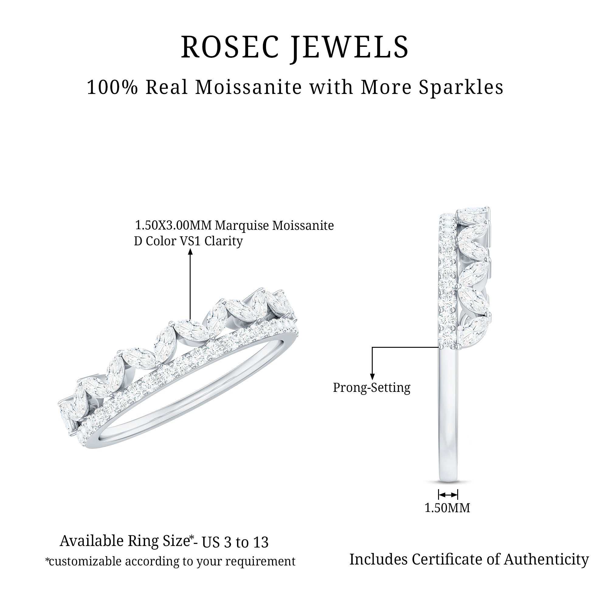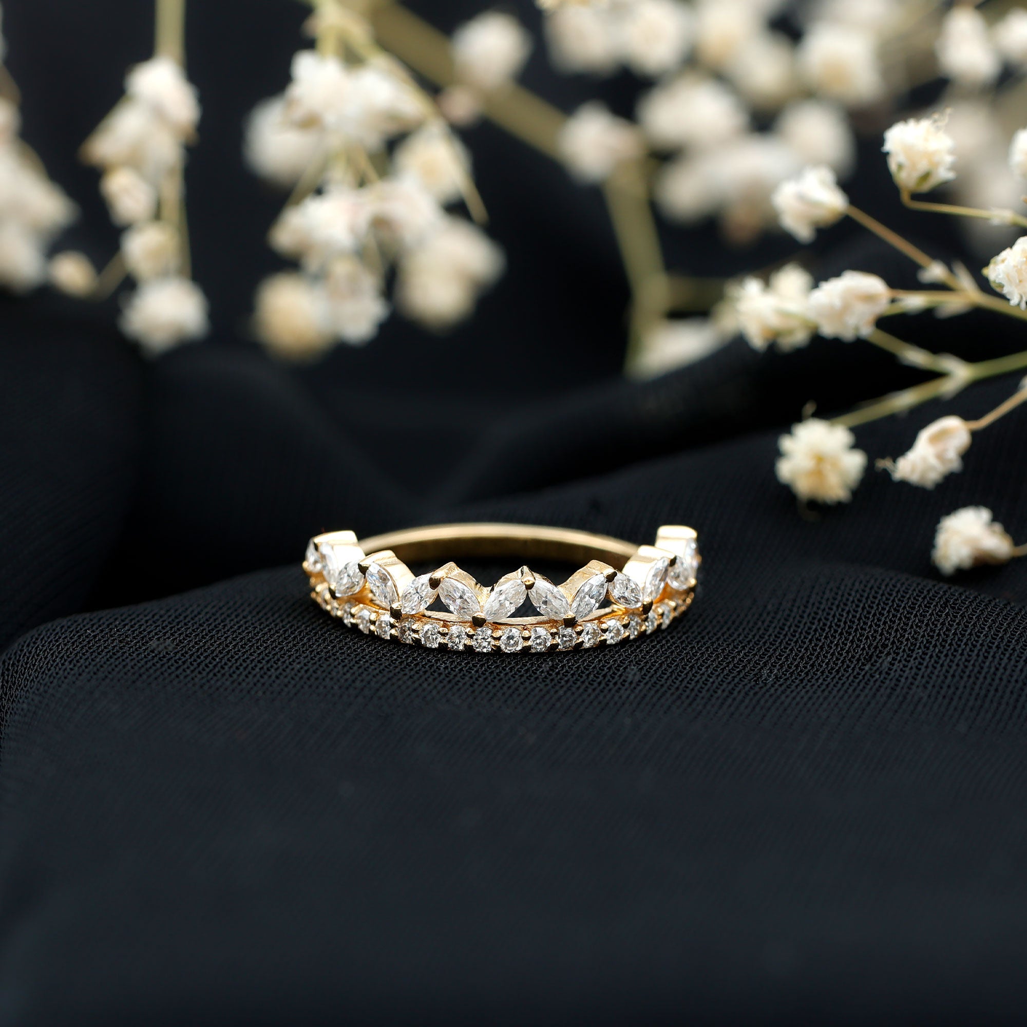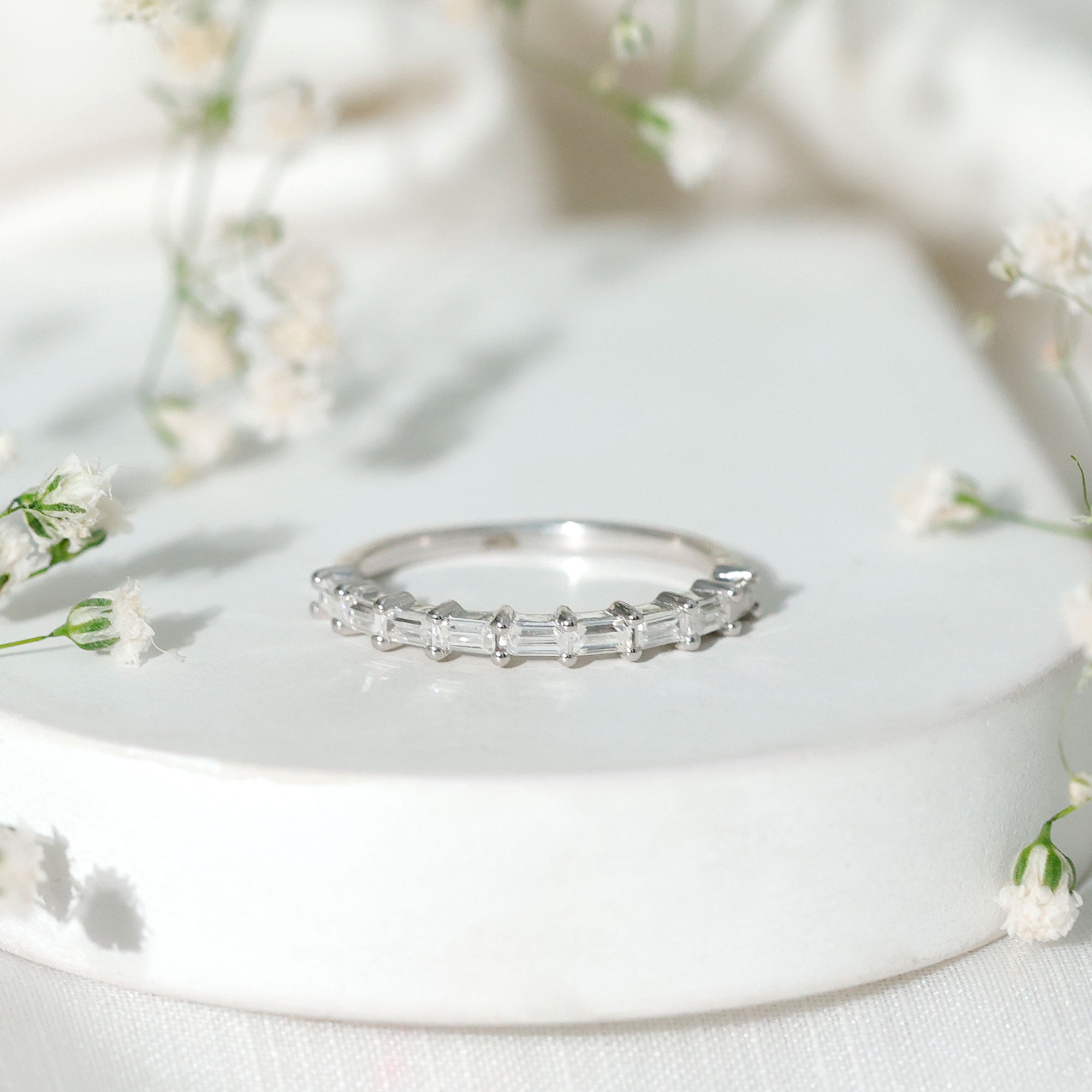 Check gemstone shapes: To create a uniform stack, gemstone shape must be considered. It's very important to play with proportions carefully. Like for your teardrop sapphire engagement ring, moissanite curved wedding rings can be good complementing rings. Opt shapes that fit well in the stack.