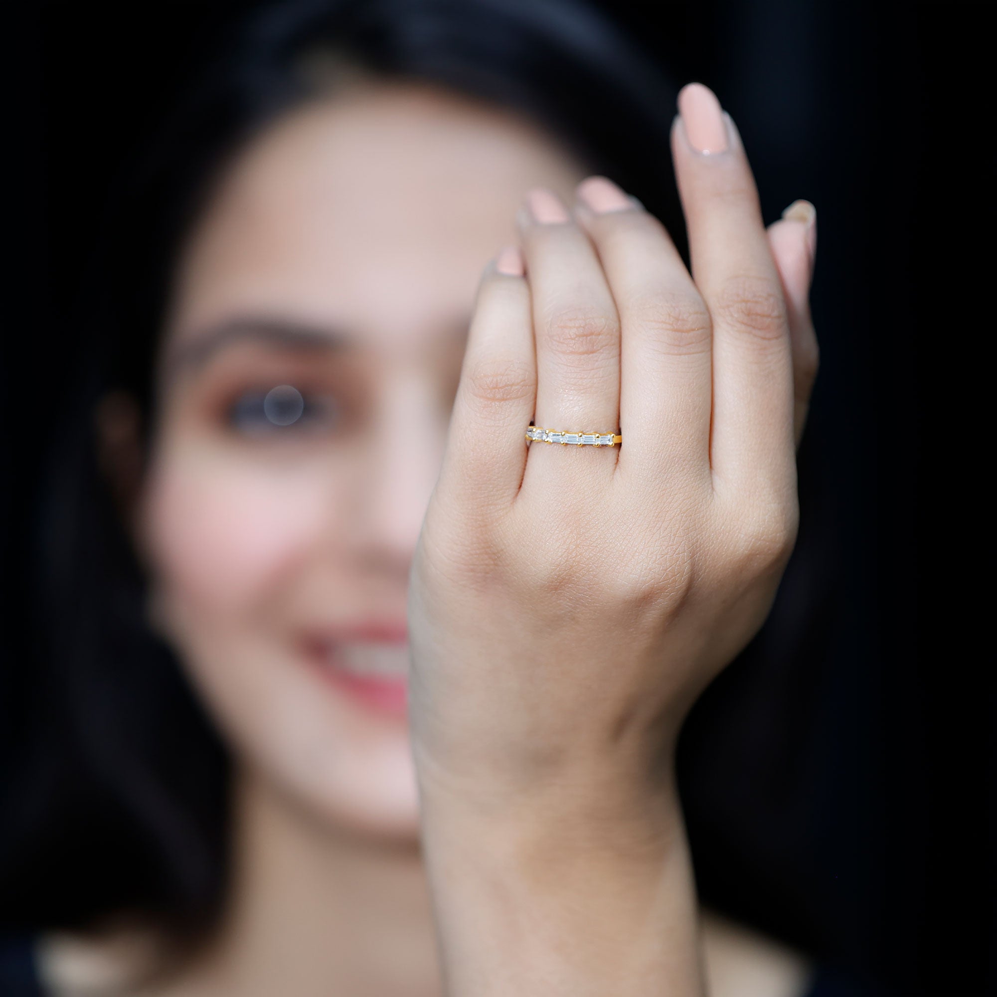 Shining Ring Stacks: If you love sparkles all around, then you can opt for shimmering stone rings. Timeless diamonds, durable moissanites, and trending lab growns make great stackable rings.