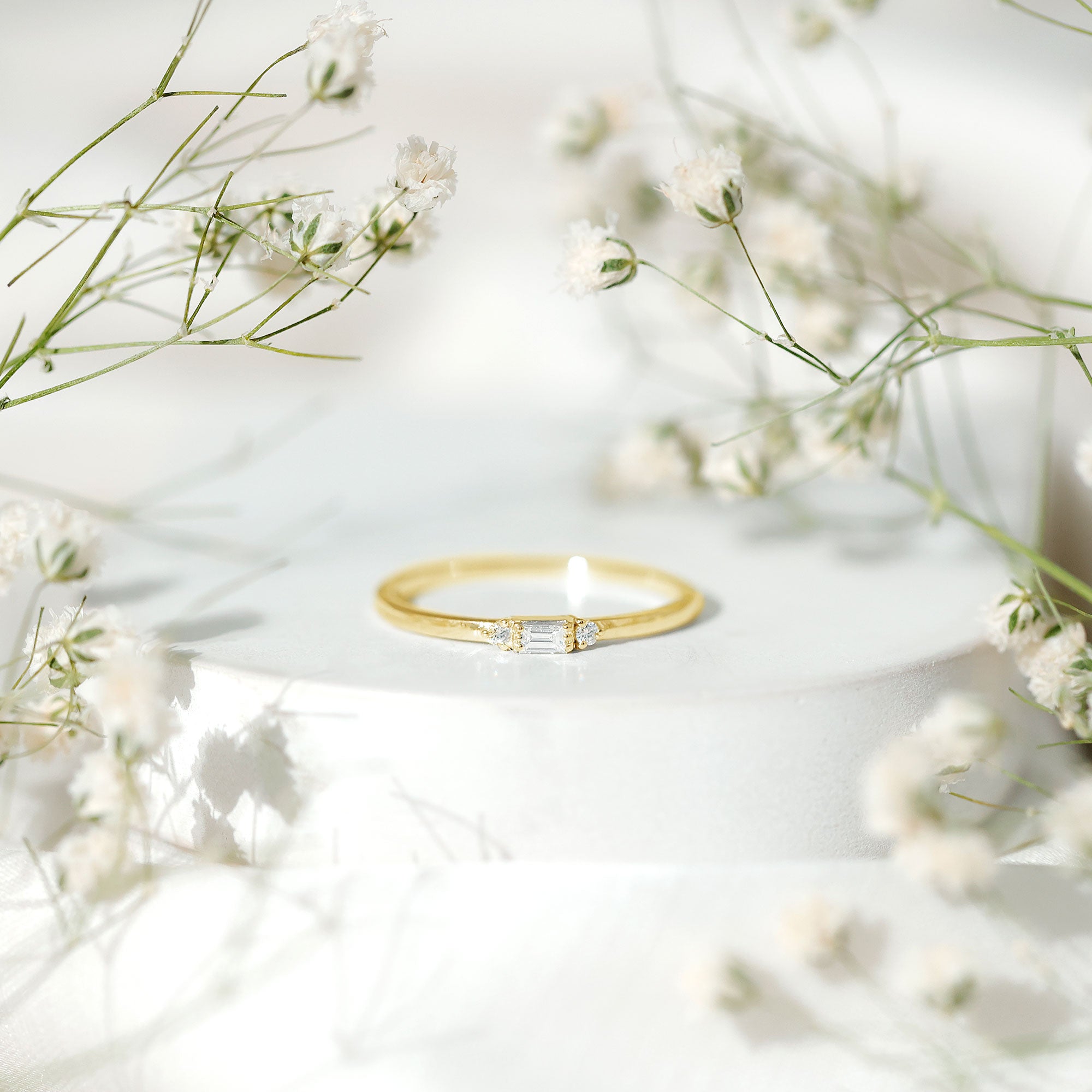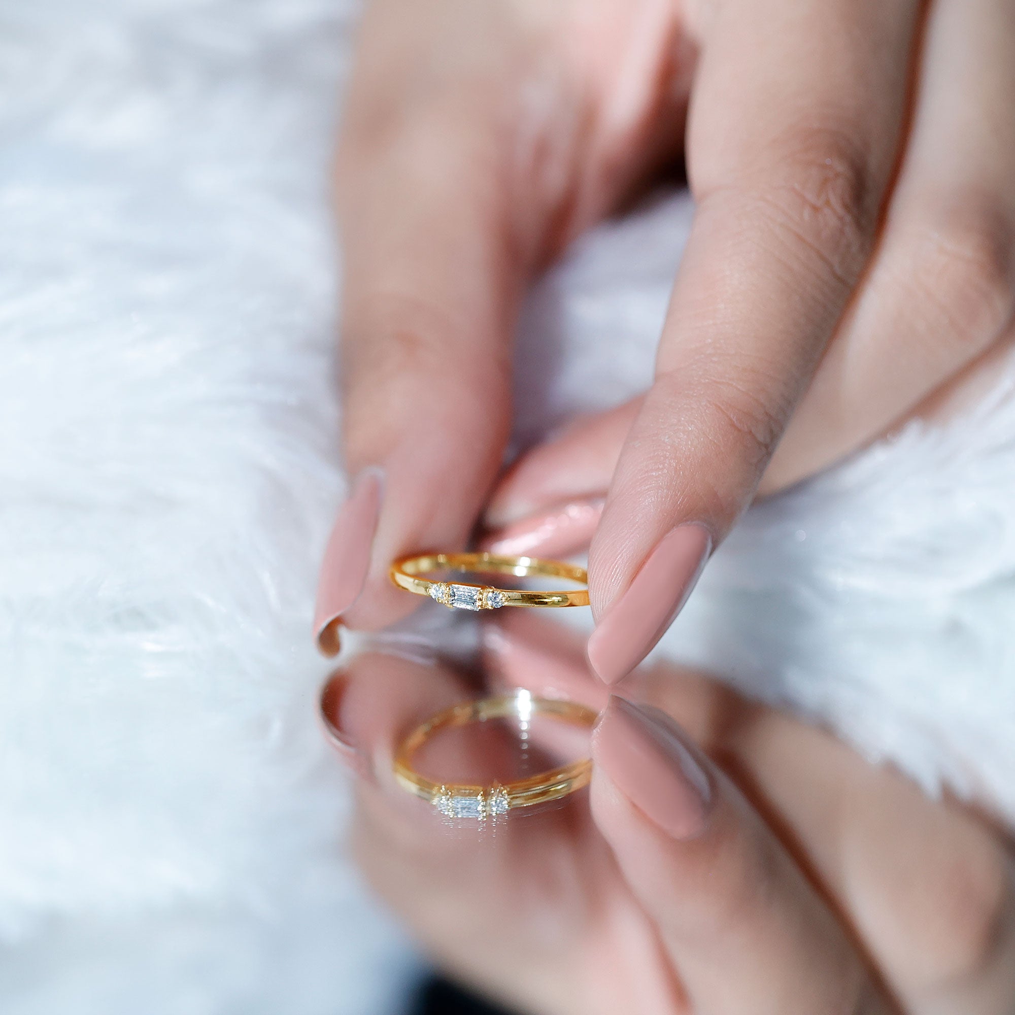 Choose Simple bands: Plain gold bands or simple twisted bands adorned with very few gemstones can add depth to the stack.