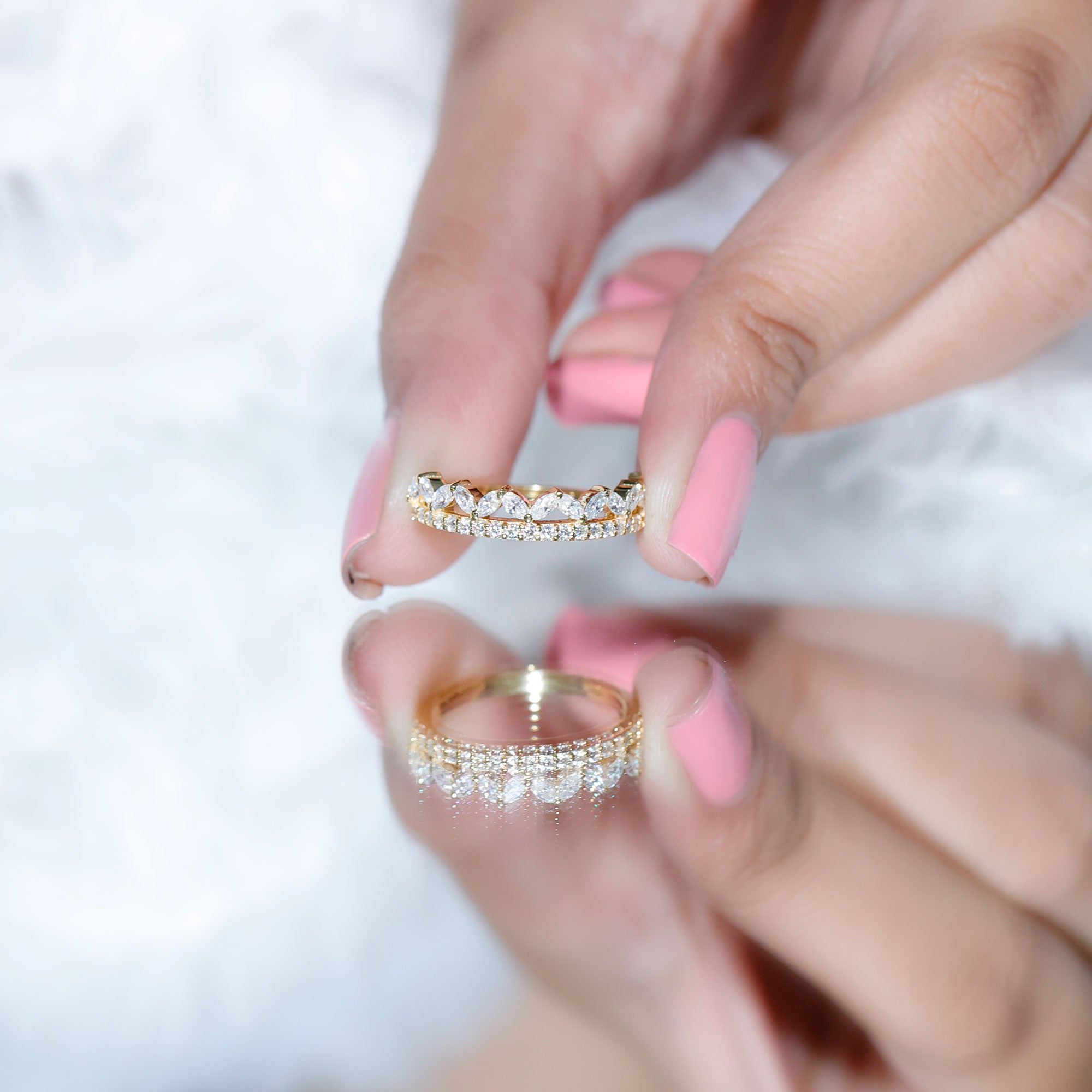 Stackable rings are stylish finger jewels that help in creating a cohesive and unique look. These especially designed rings help in personal expression through layering of multiple rings of different styles. Different gemstone rings shining or vibrant of identical or different shapes can be mixed and matched for a creative and stylish stack. These versatile pieces with endless possibilities are the choice of every minimalist as well as maximalist.