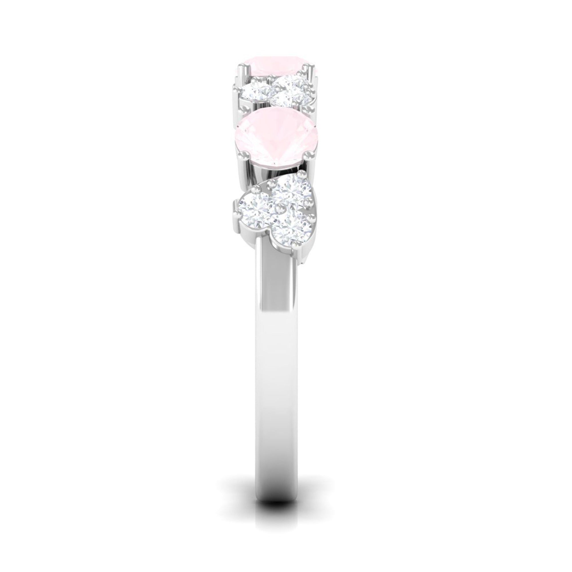 Rose Quartz and Diamond Heart Shape Alternate Half Eternity Ring