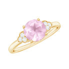 Natural Rose Quartz Solitaire Engagement Ring with Diamond Trio
