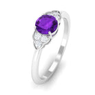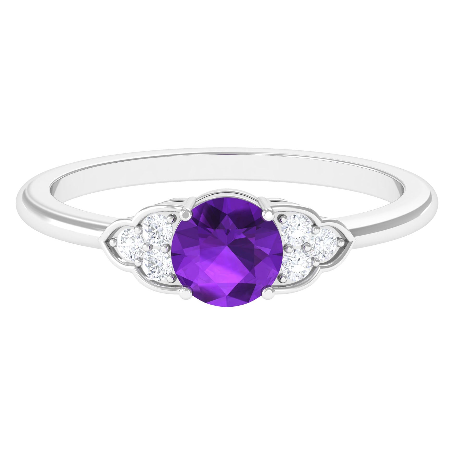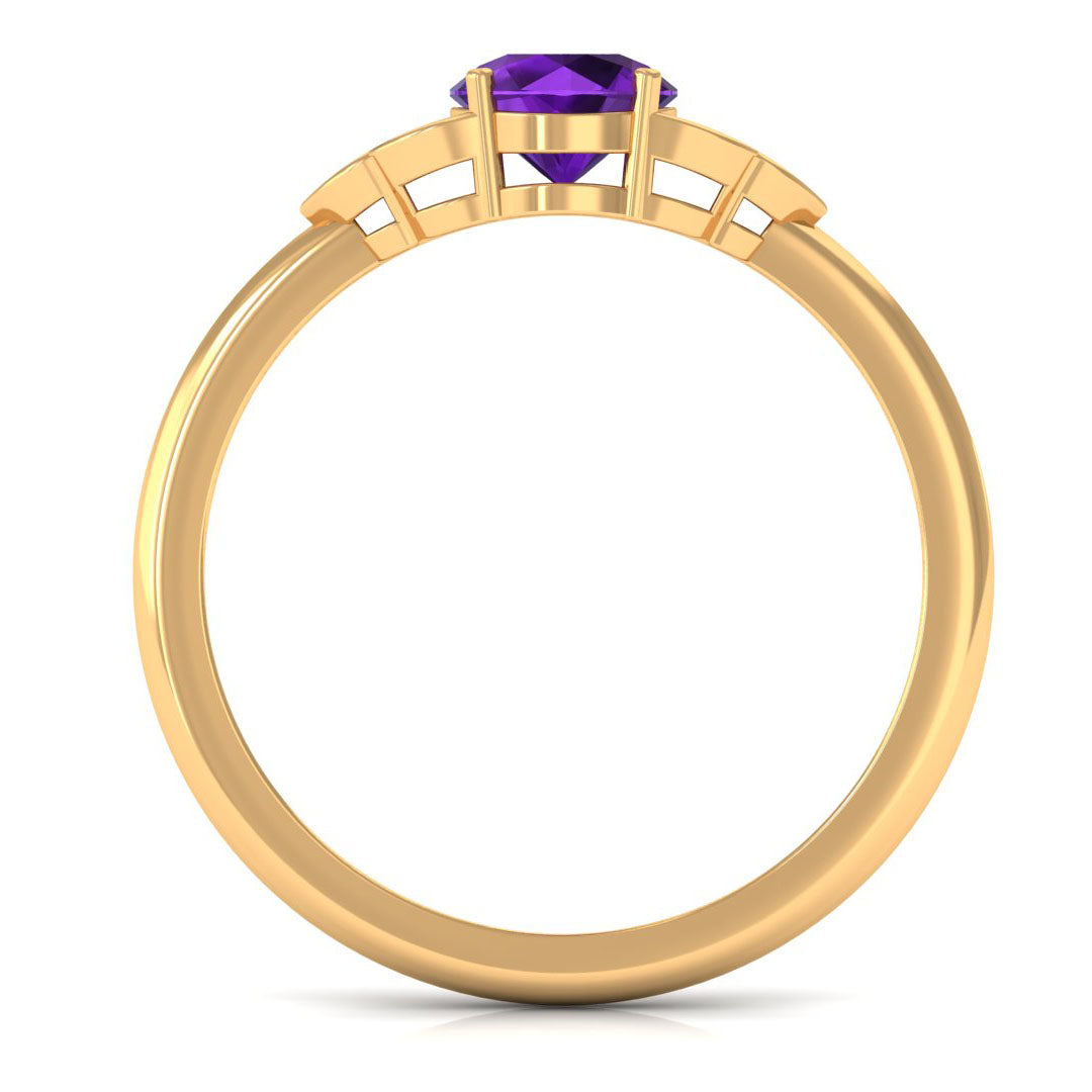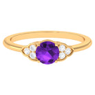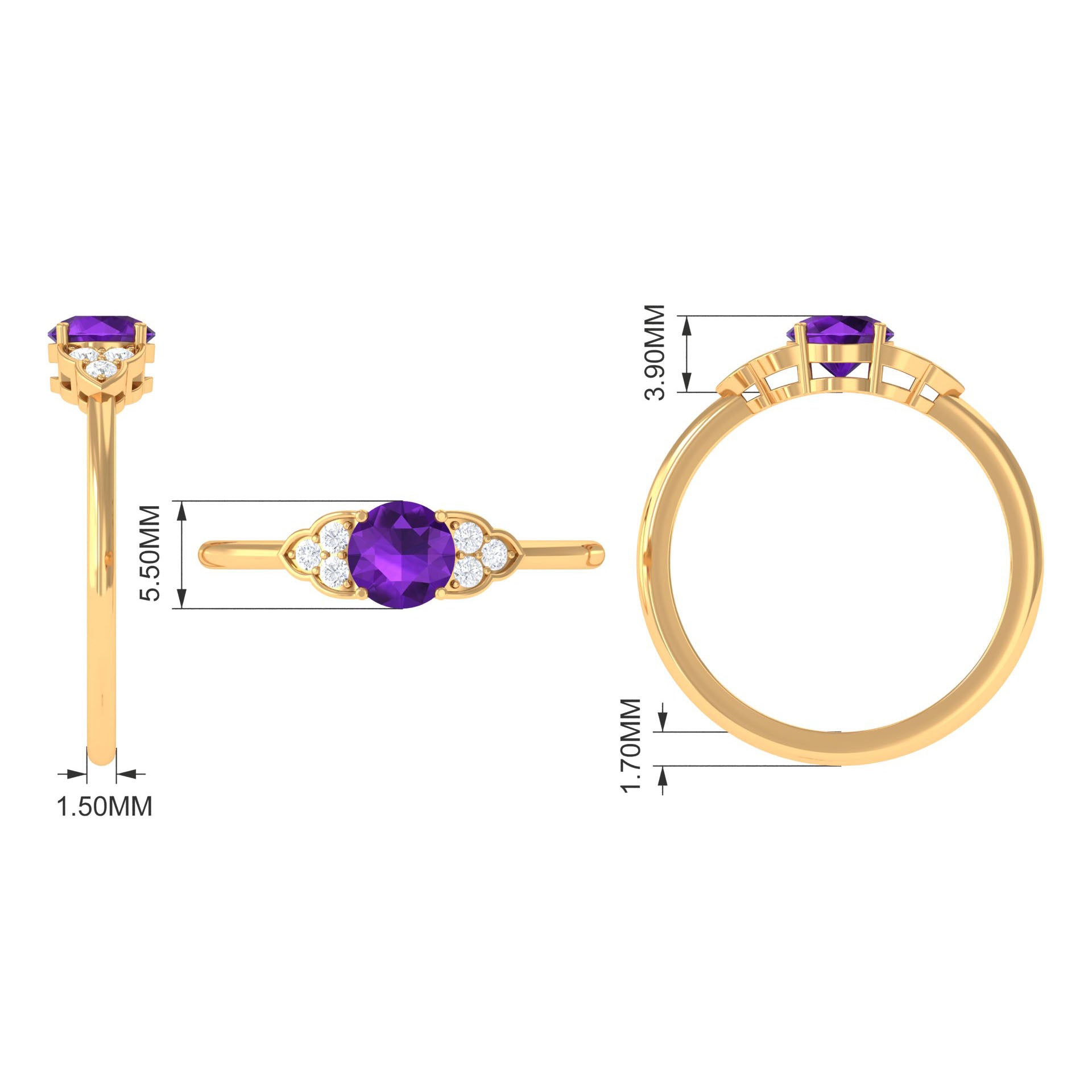 Ask her to spend a lifetime with you with an Amethyst Engagement Ring that represents faithful love, happiness, and pretty much everything that they write fairytales about. Boasting a pretty pop of purple, the Center Stone of 5 MM Round Shape Amethyst sits atop with a trio of Diamond accents flanking it on either side for a beautiful color contrast. All the gemstones in this Certified Amethyst Ring have been handpicked for their color and clarity, making them worthy of commemorating your love forever.