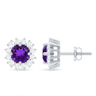 Classic Amethyst Stud Earrings with Diamond Halo