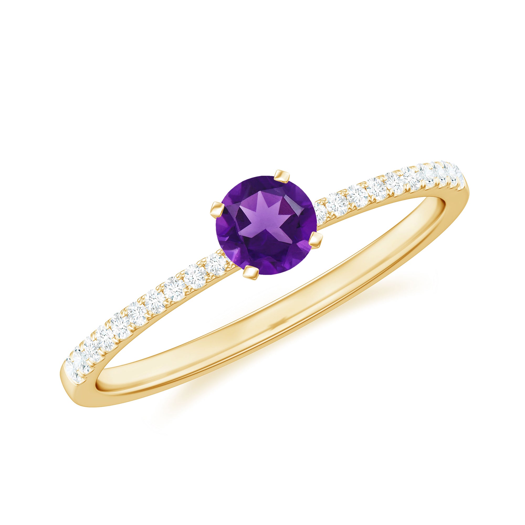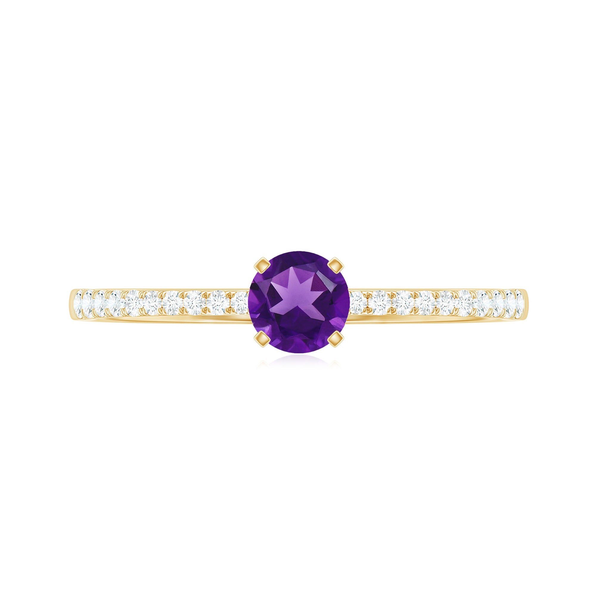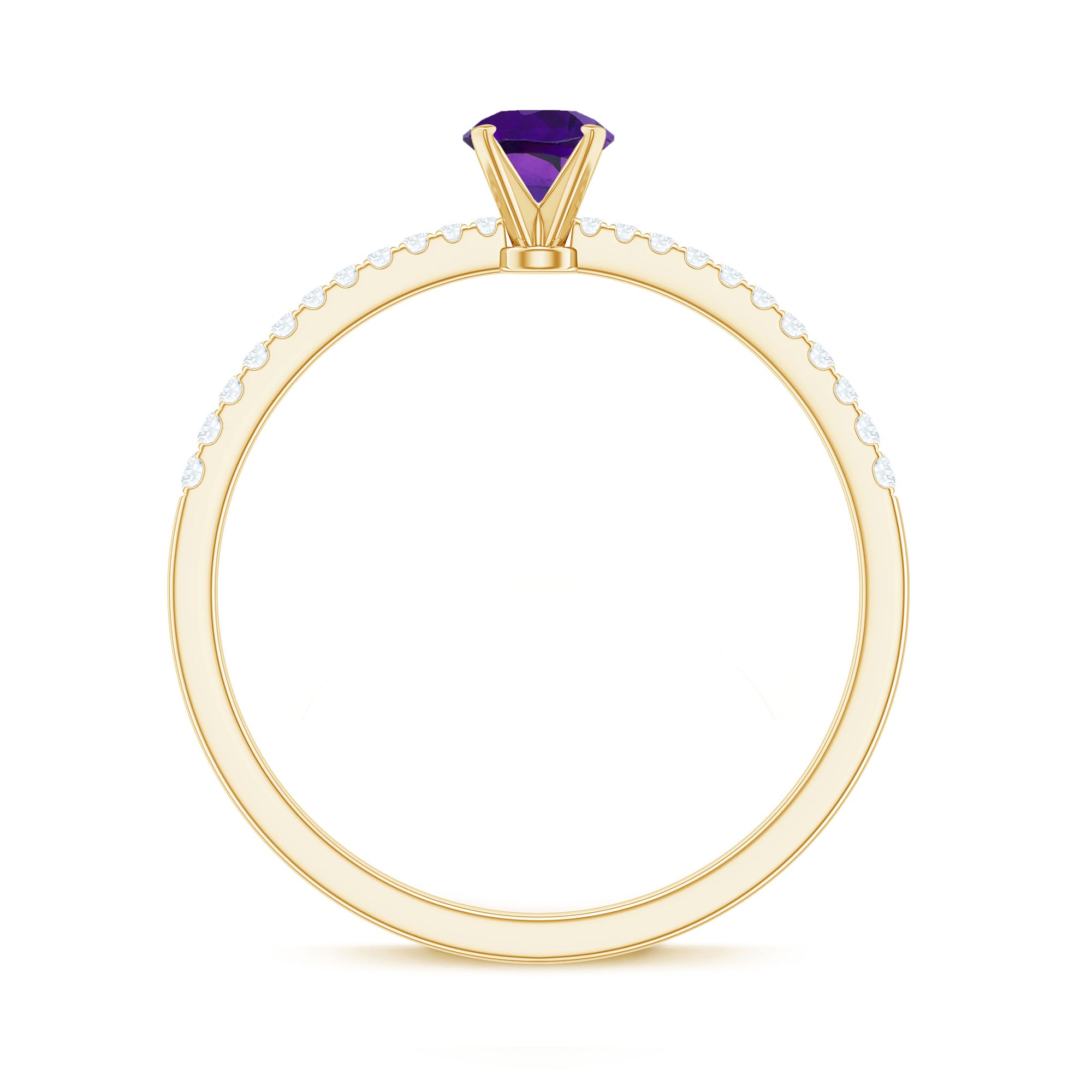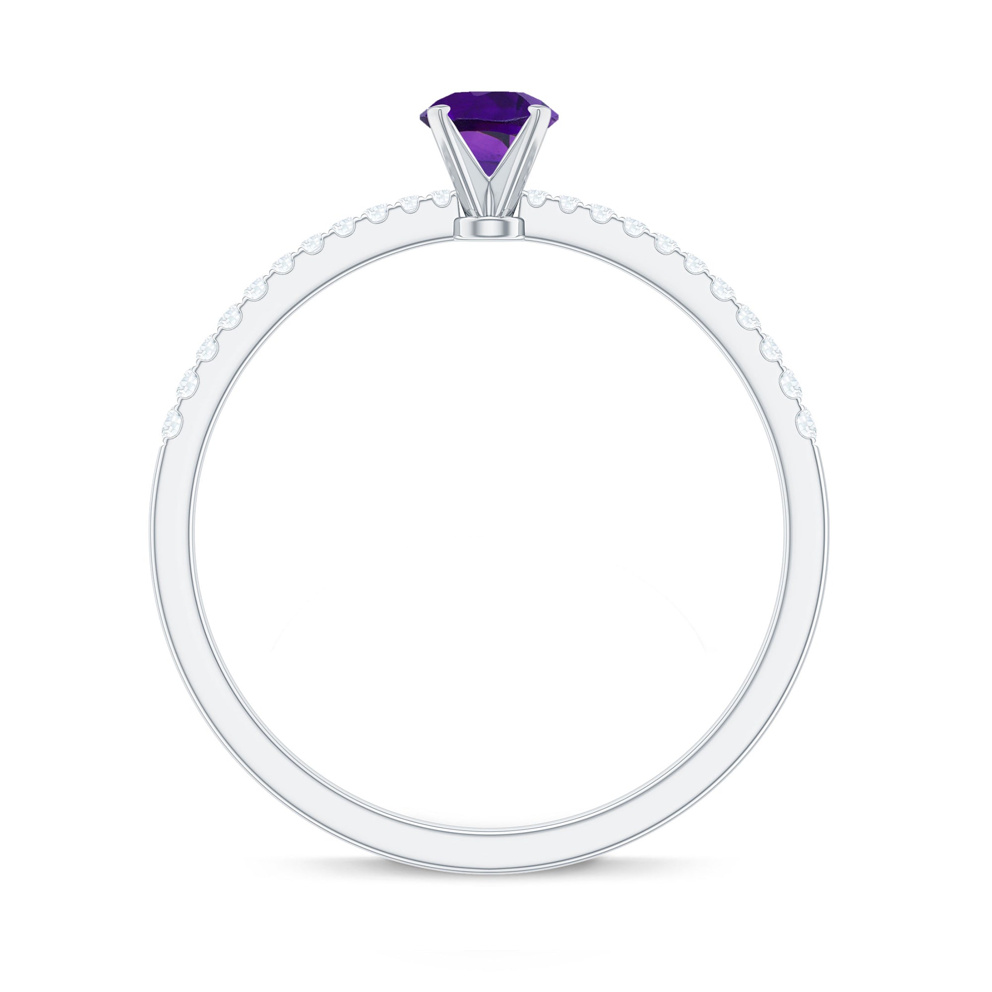 Round Amethyst Solitaire Engagement Ring with Diamond