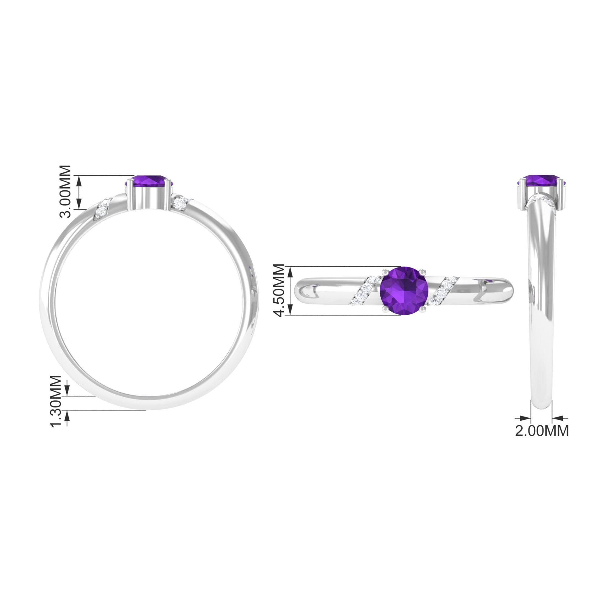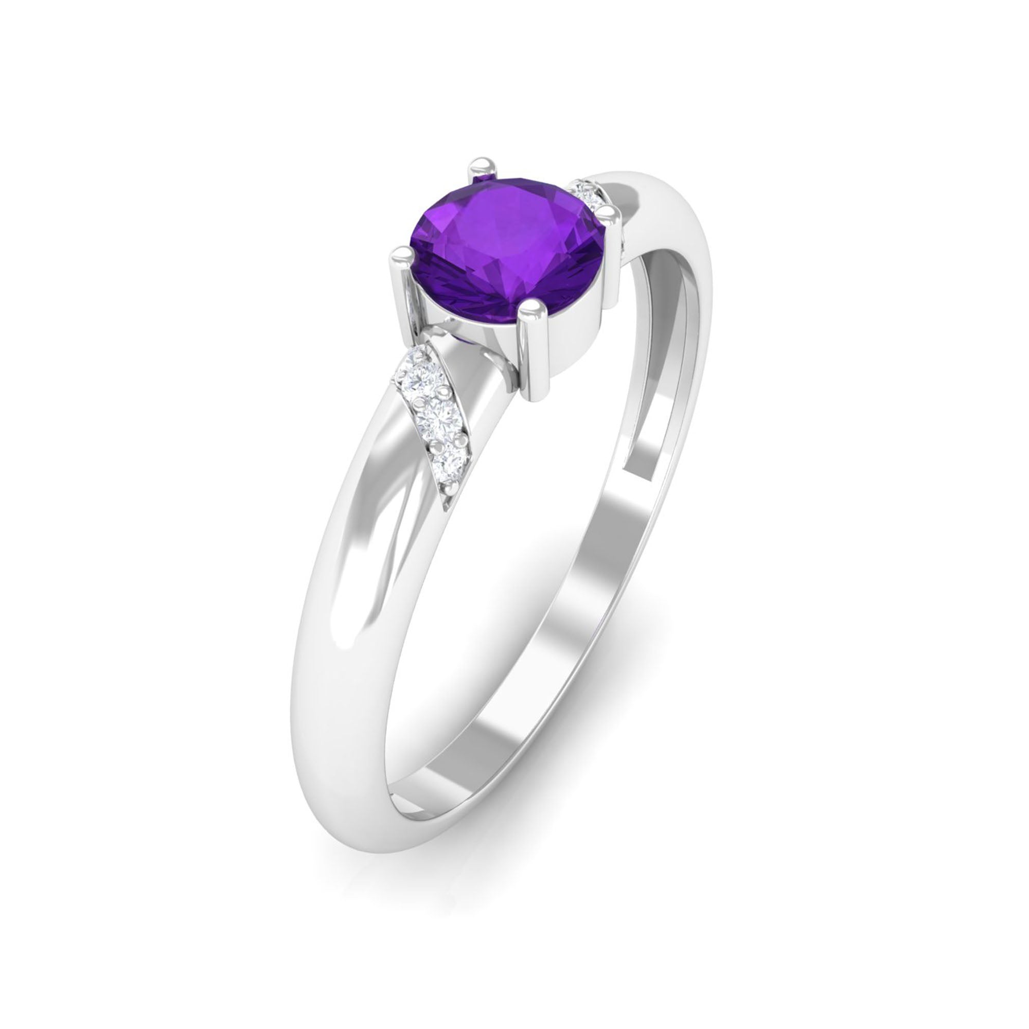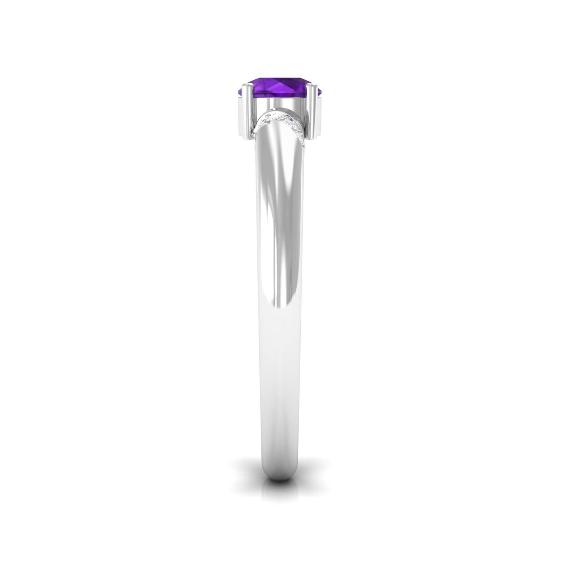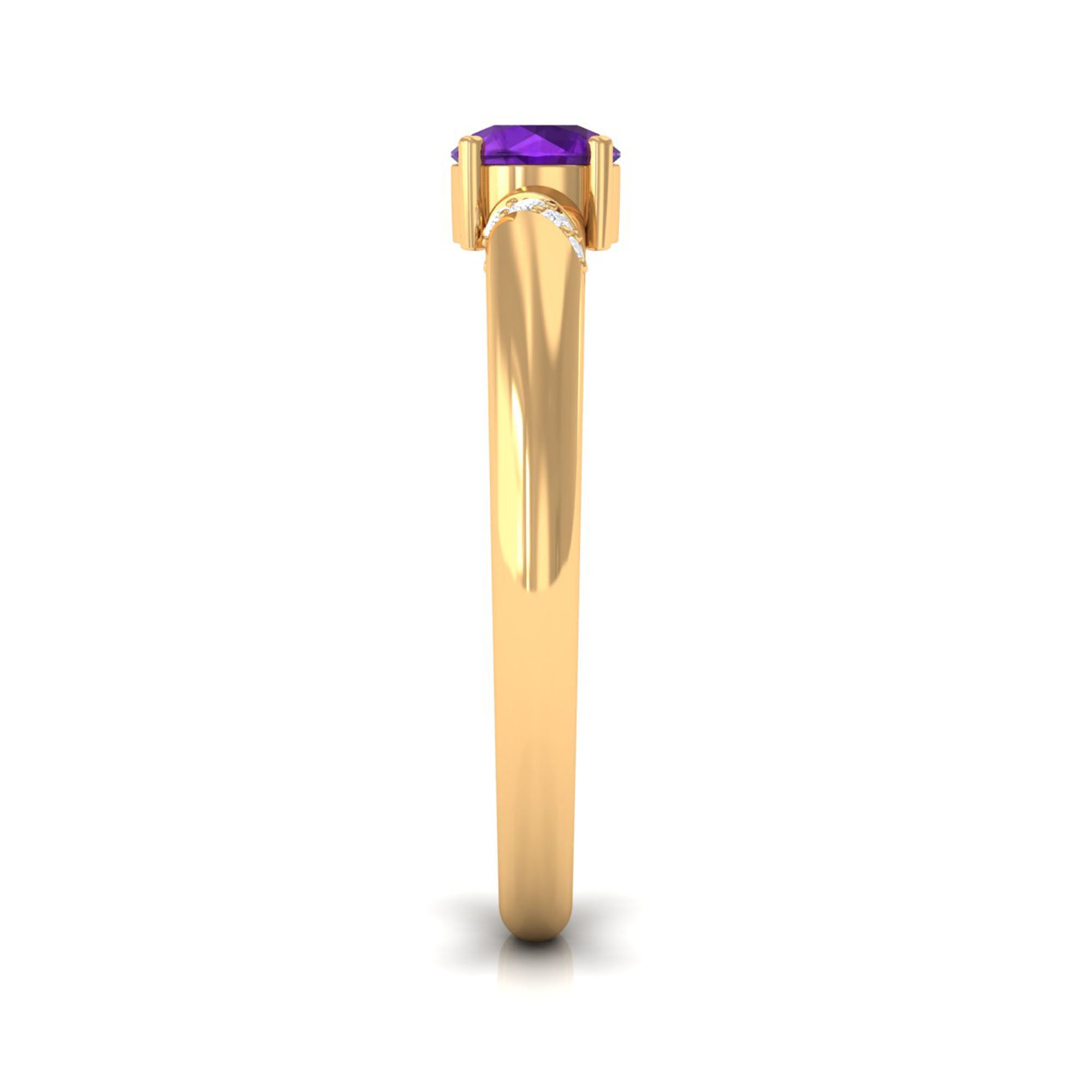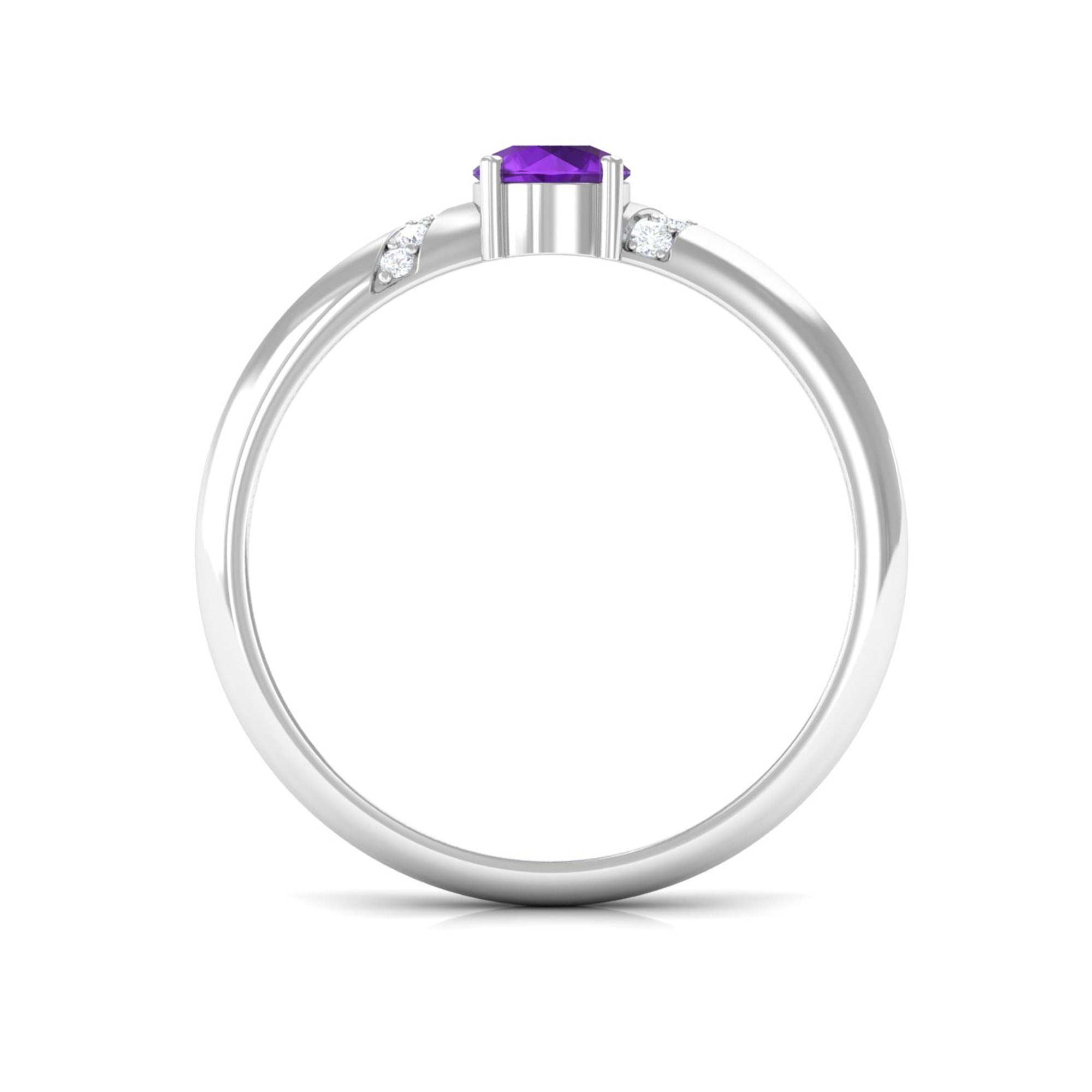 Round Amethyst Solitaire Promise Ring with Diamond