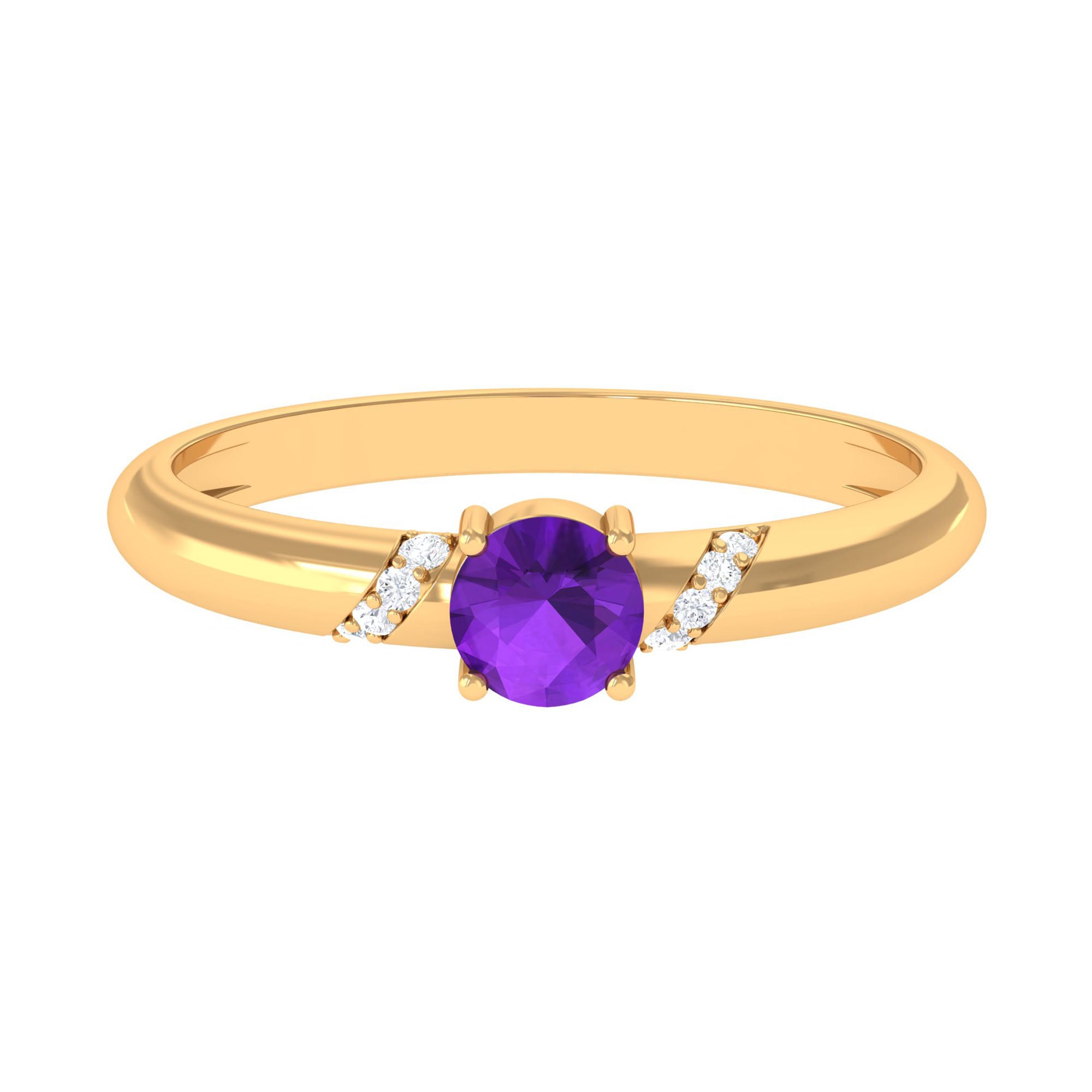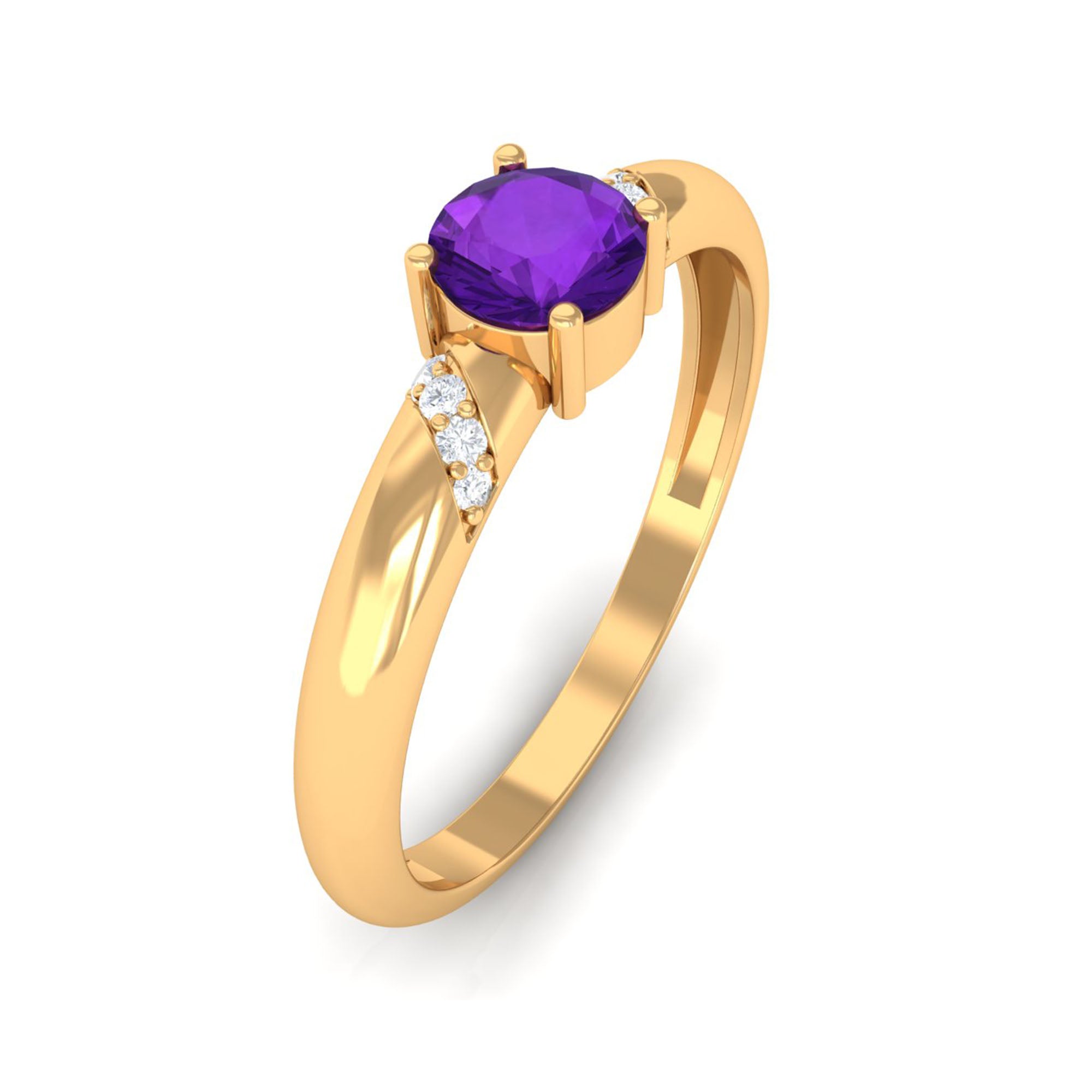 You can steal the spotlight of any event by wearing this Solitaire Ring. Featuring Round Shape Amethyst secured in Prong Setting while Round Shape Diamonds studded on the shank.• Declare your feelings for your partner by getting this Amethyst Solitaire Ring, as she will never take it off her finger.