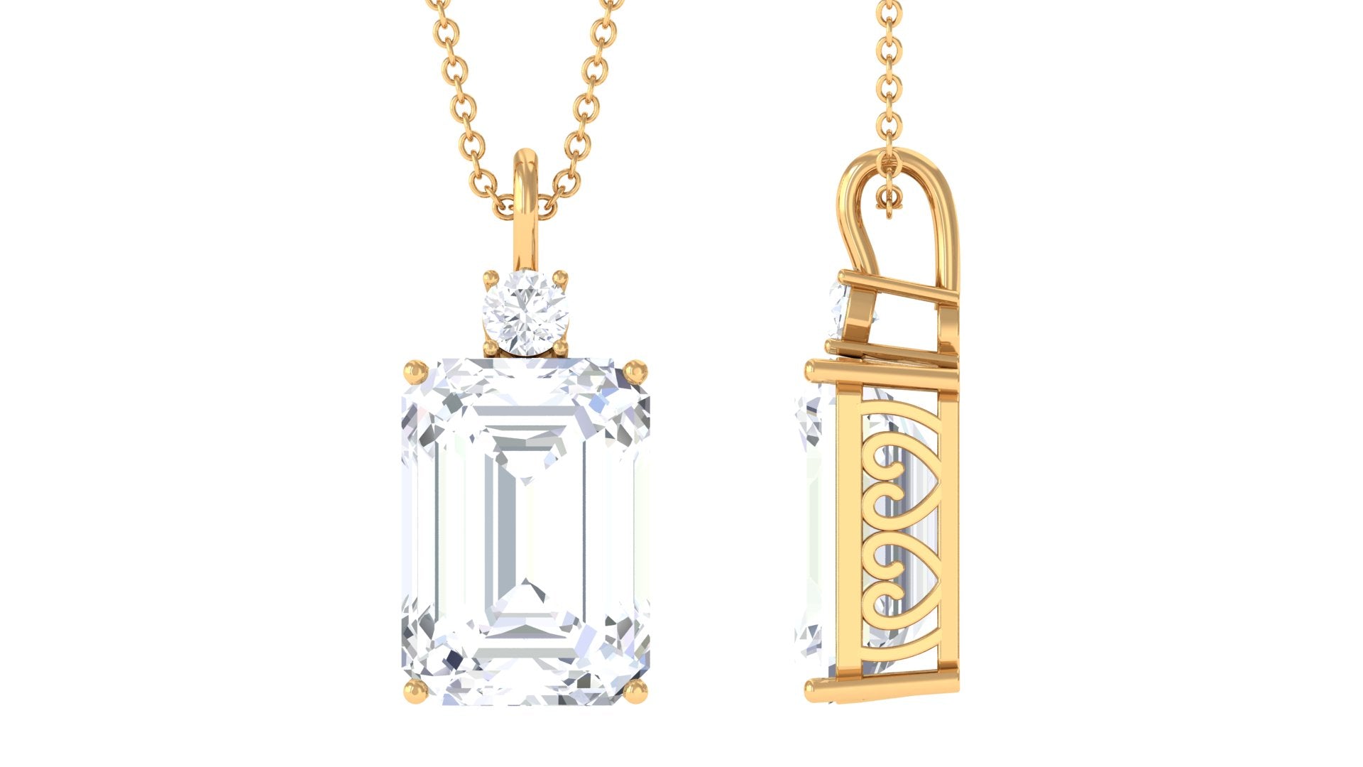 Round and Emerald Cut Moissanite Solitaire Pendant Necklace