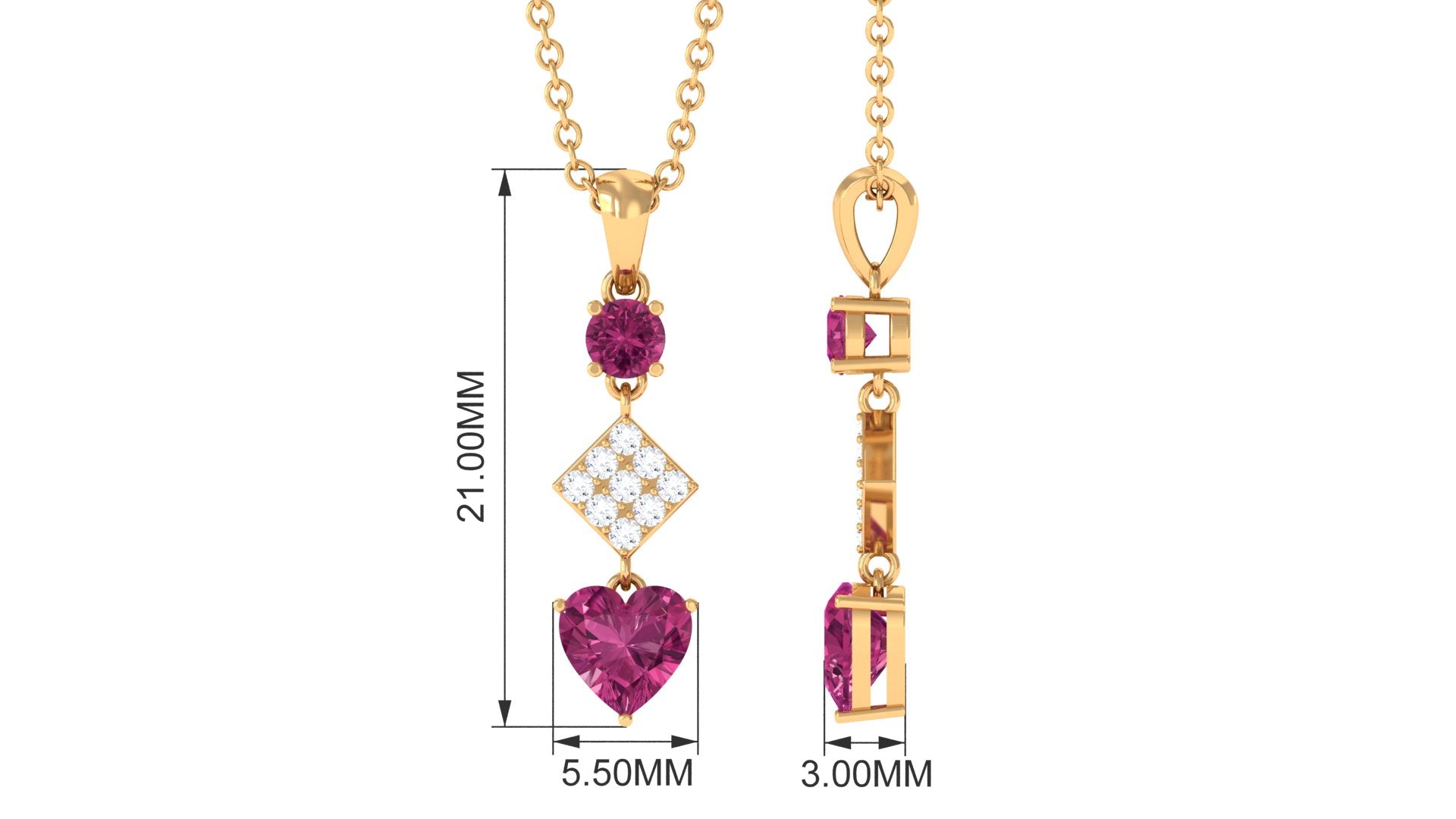 Round and Heart Shape Pink Tourmaline Dangle Pendant with Diamond