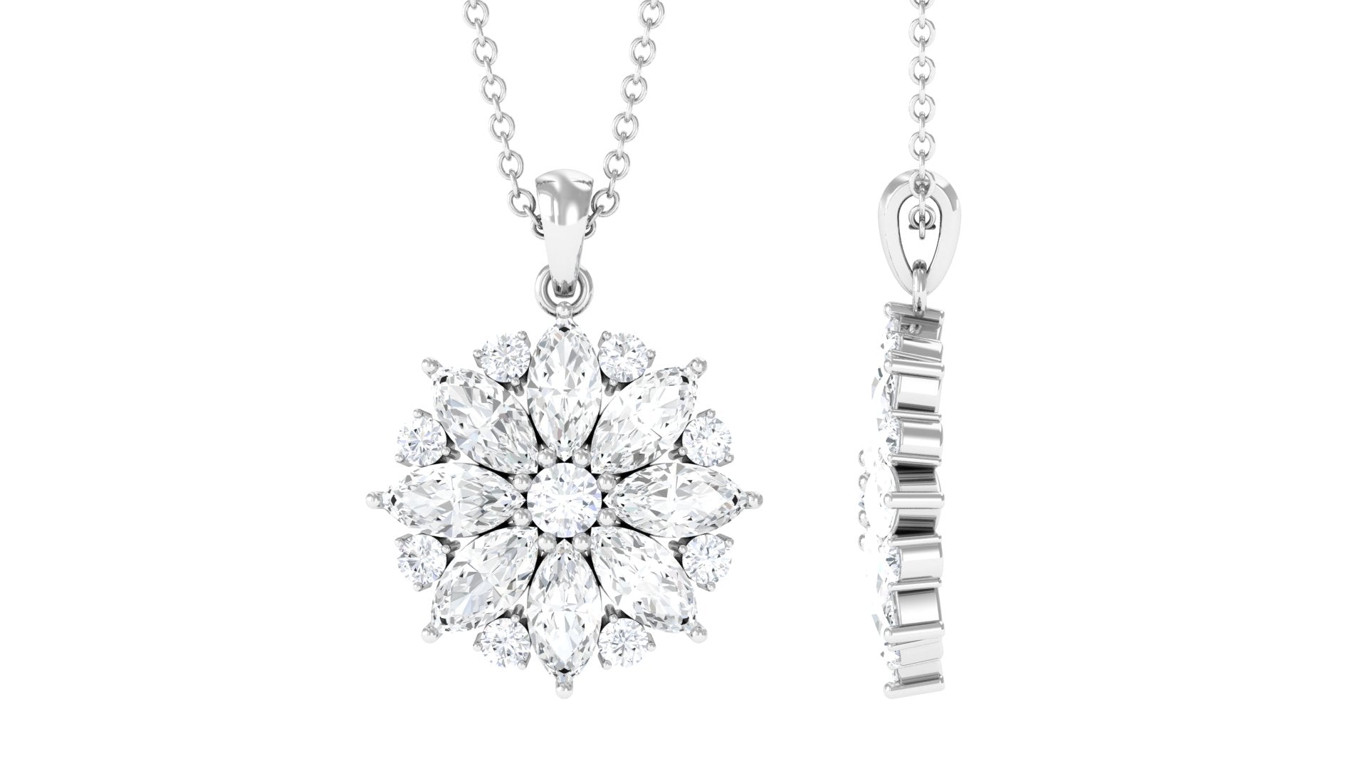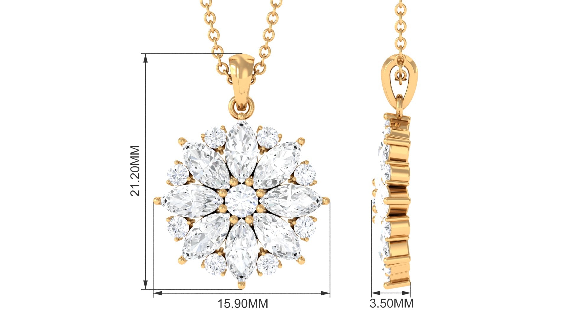 Round and Marquise Cut Moissanite Statement Flower Pendant