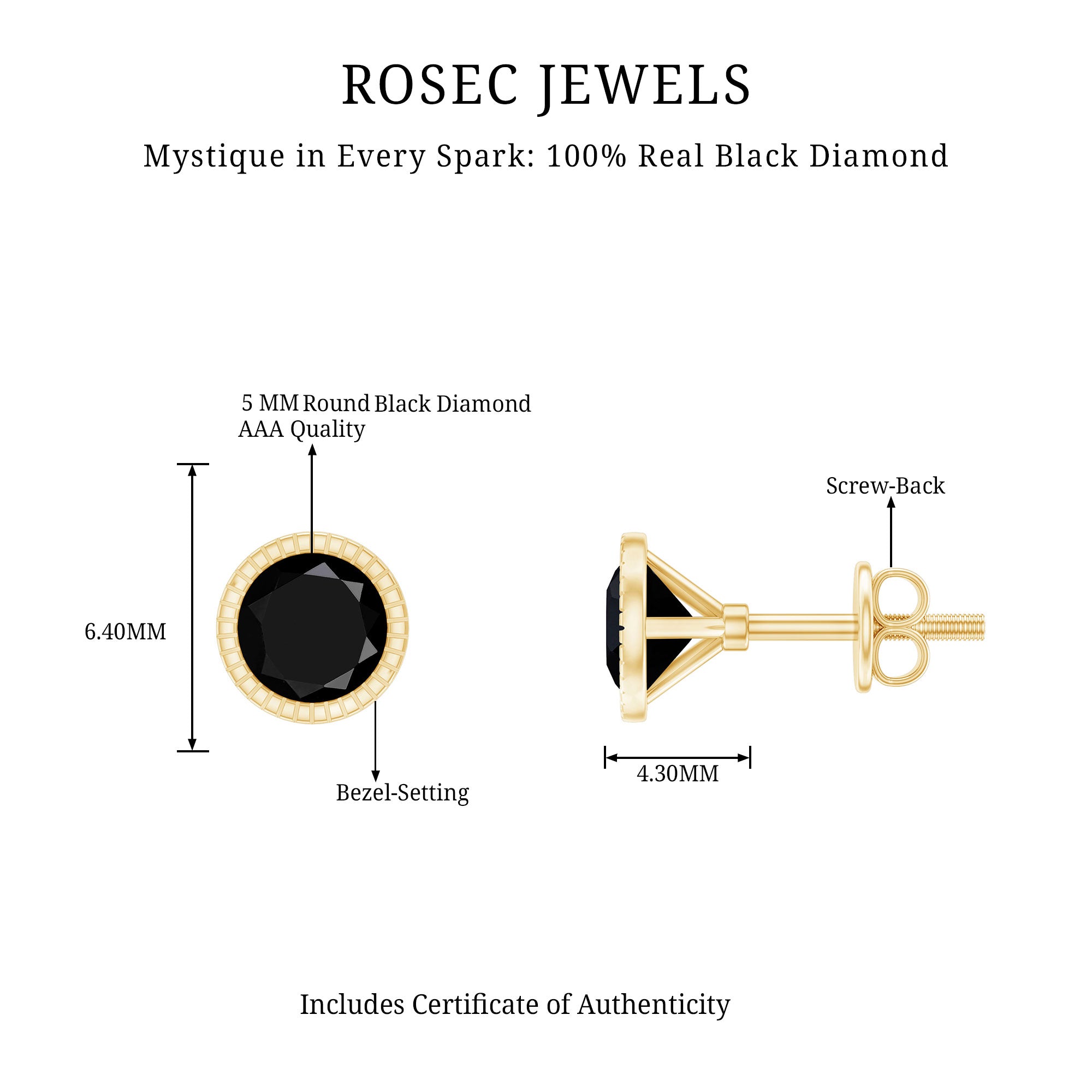 Experience the essence of simplicity and feminine charm with these Classic Black Diamond Gold Earrings, adorned with a Round Shape Black Diamond in a bezel setting. Crafted with solid Gold, these earrings exude elegance, making them the perfect accessory for working women. Surprise your loved one on your anniversary with this adorable and charming present.