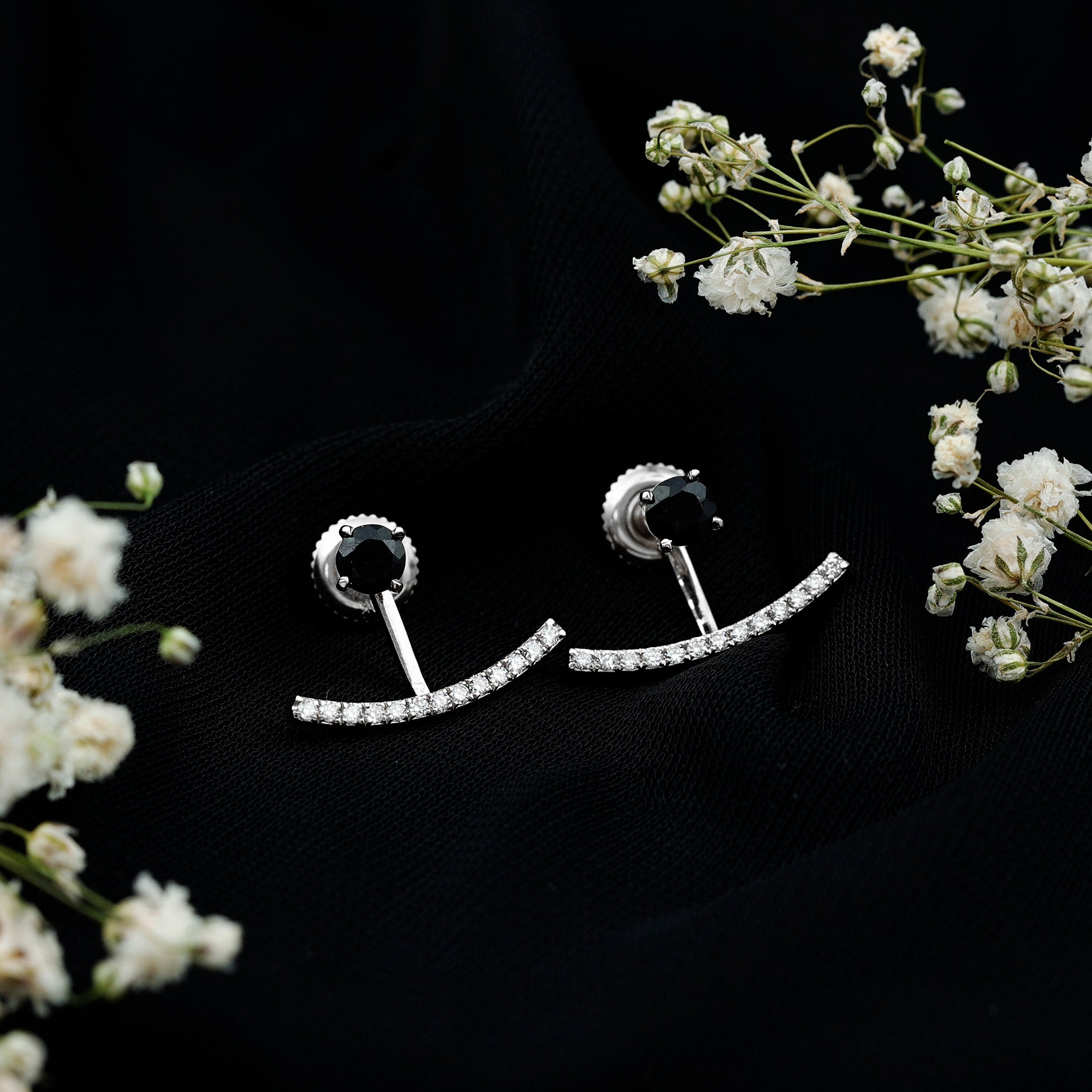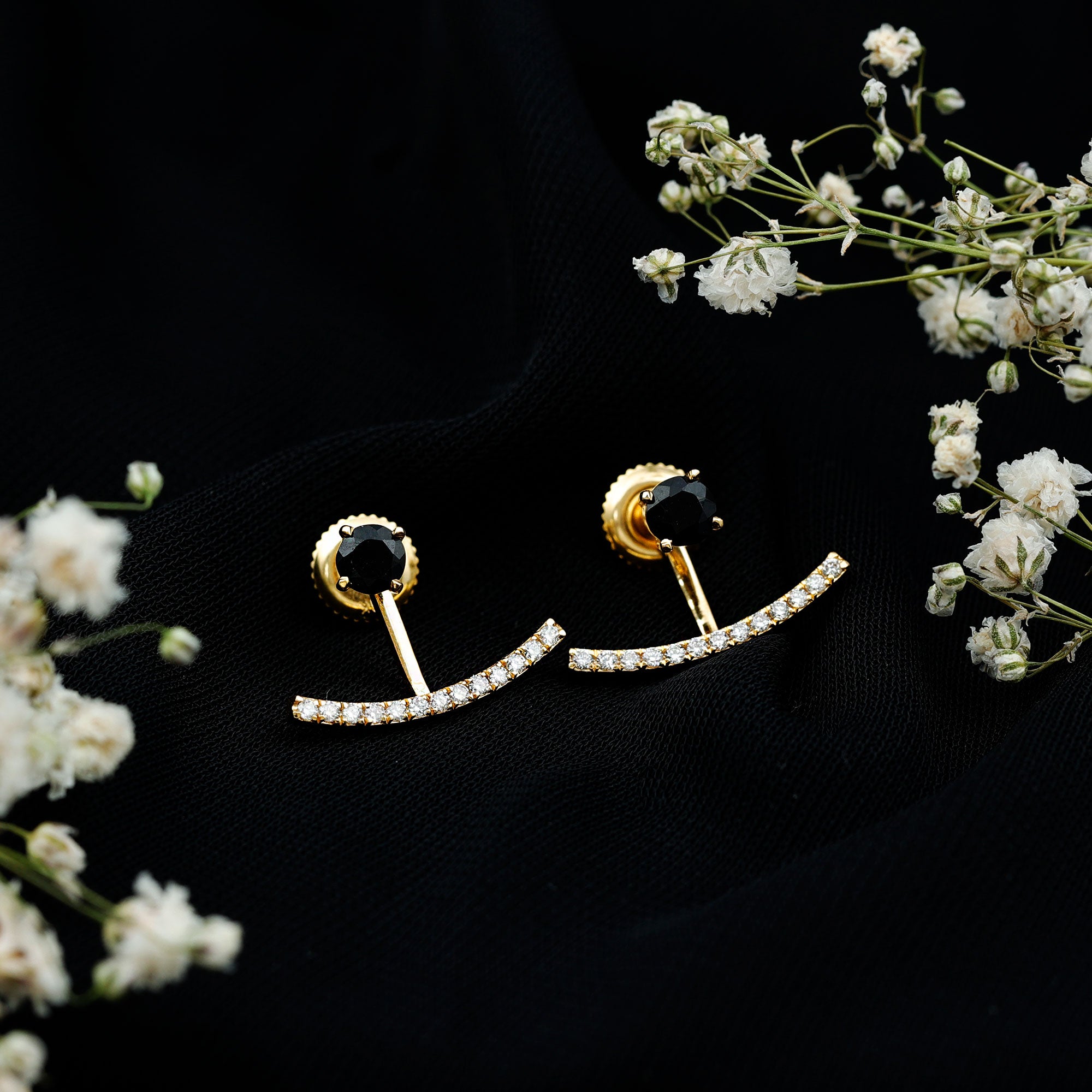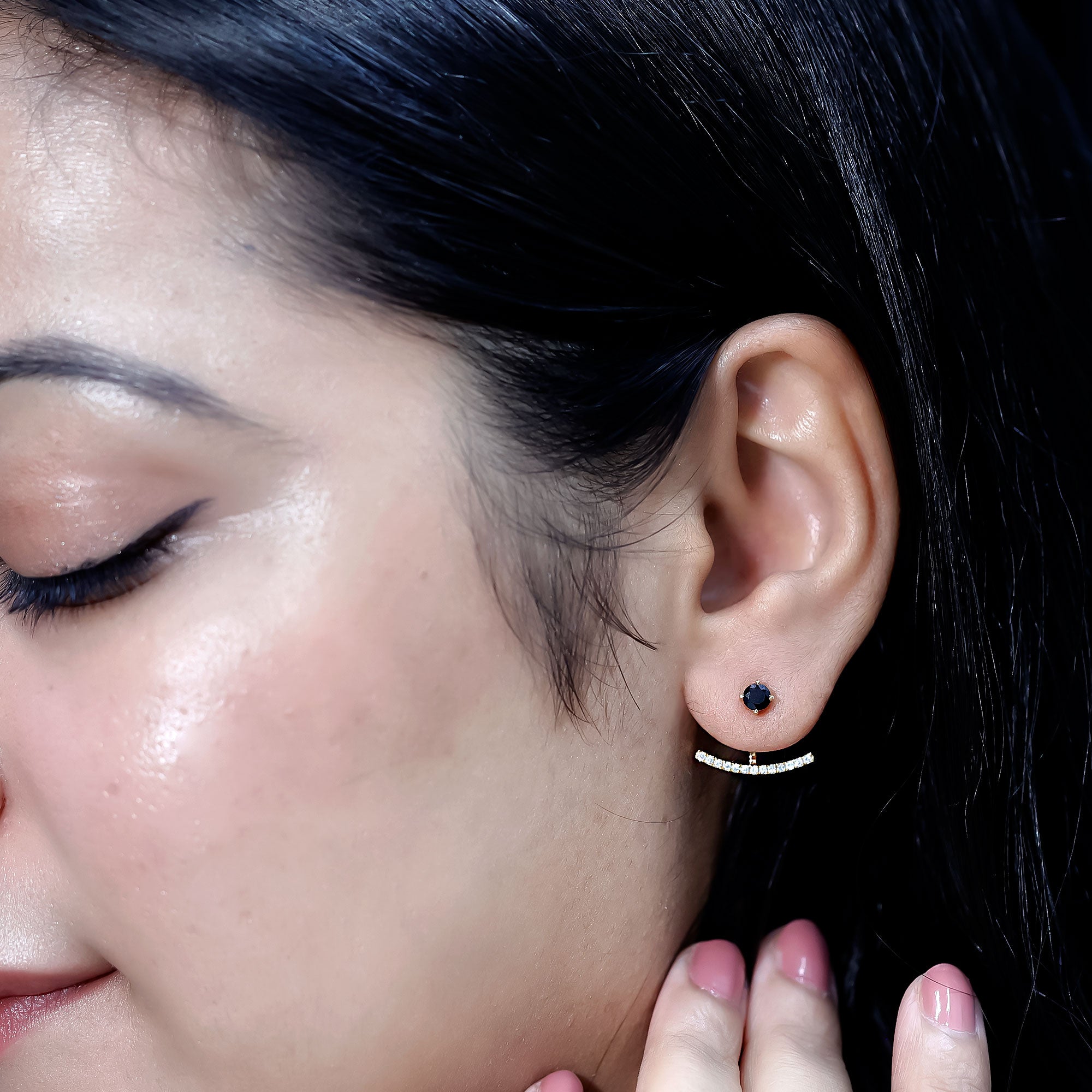 The Front Back Earrings are a gorgeous pair designed to create desirable looks as and when you like and can be worn together or separately. The Front Back Earrings are adorned with Round Shape Black Onyx in front and Round Diamonds are set on the jacket. The Double Sided Earrings are secure comfortably with screw backs. Celebrate a special milestone in your relationship by getting our beautiful Ear Jacket Earrings for your better half as an anniversary gift.