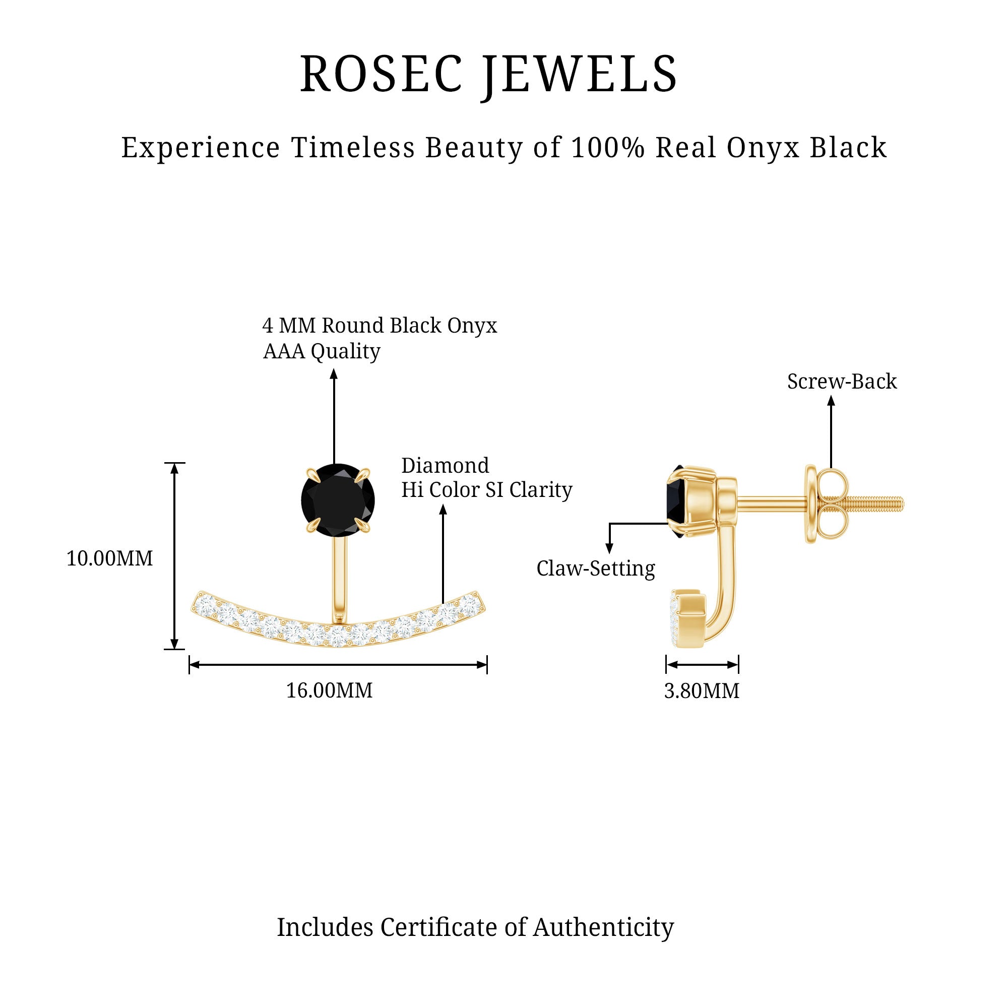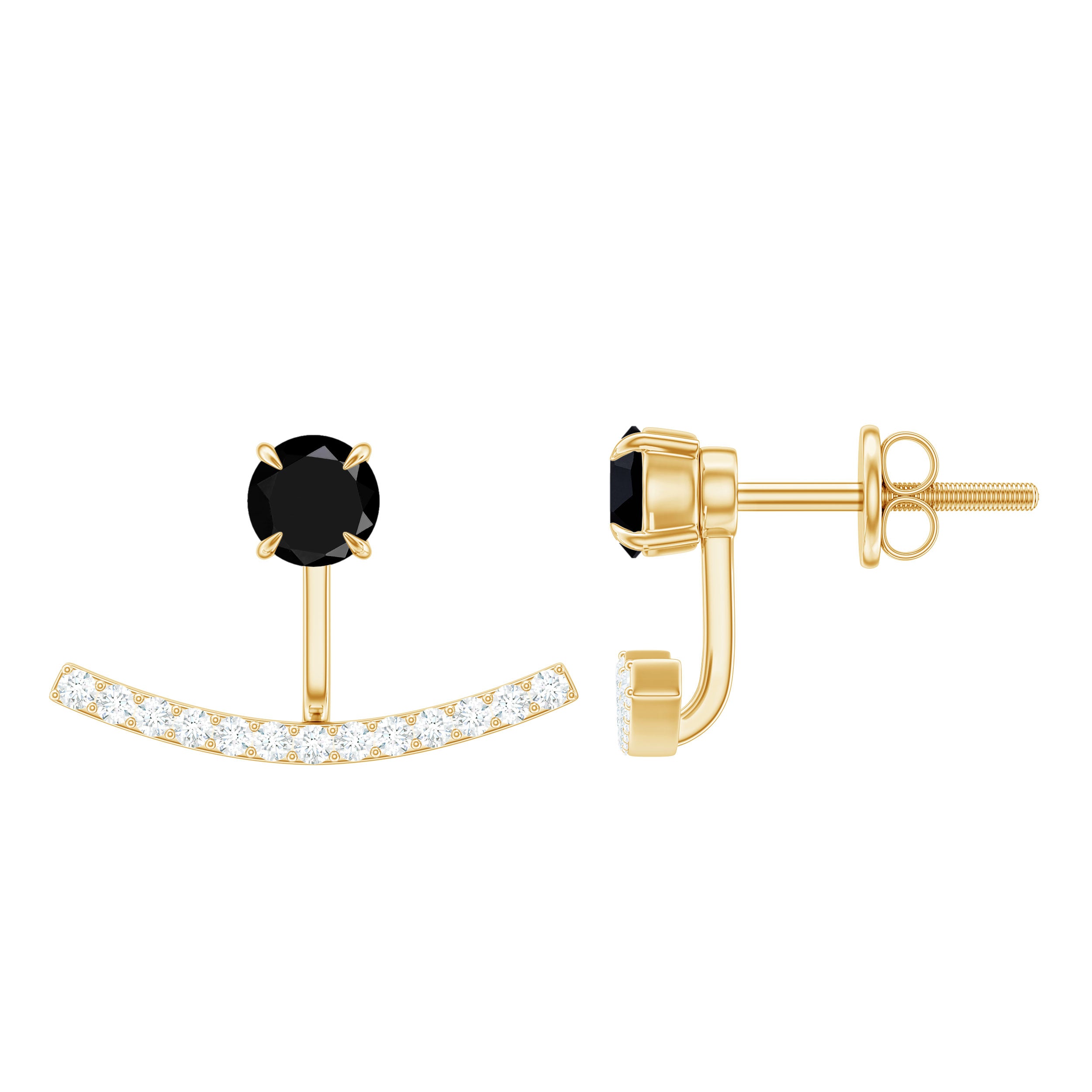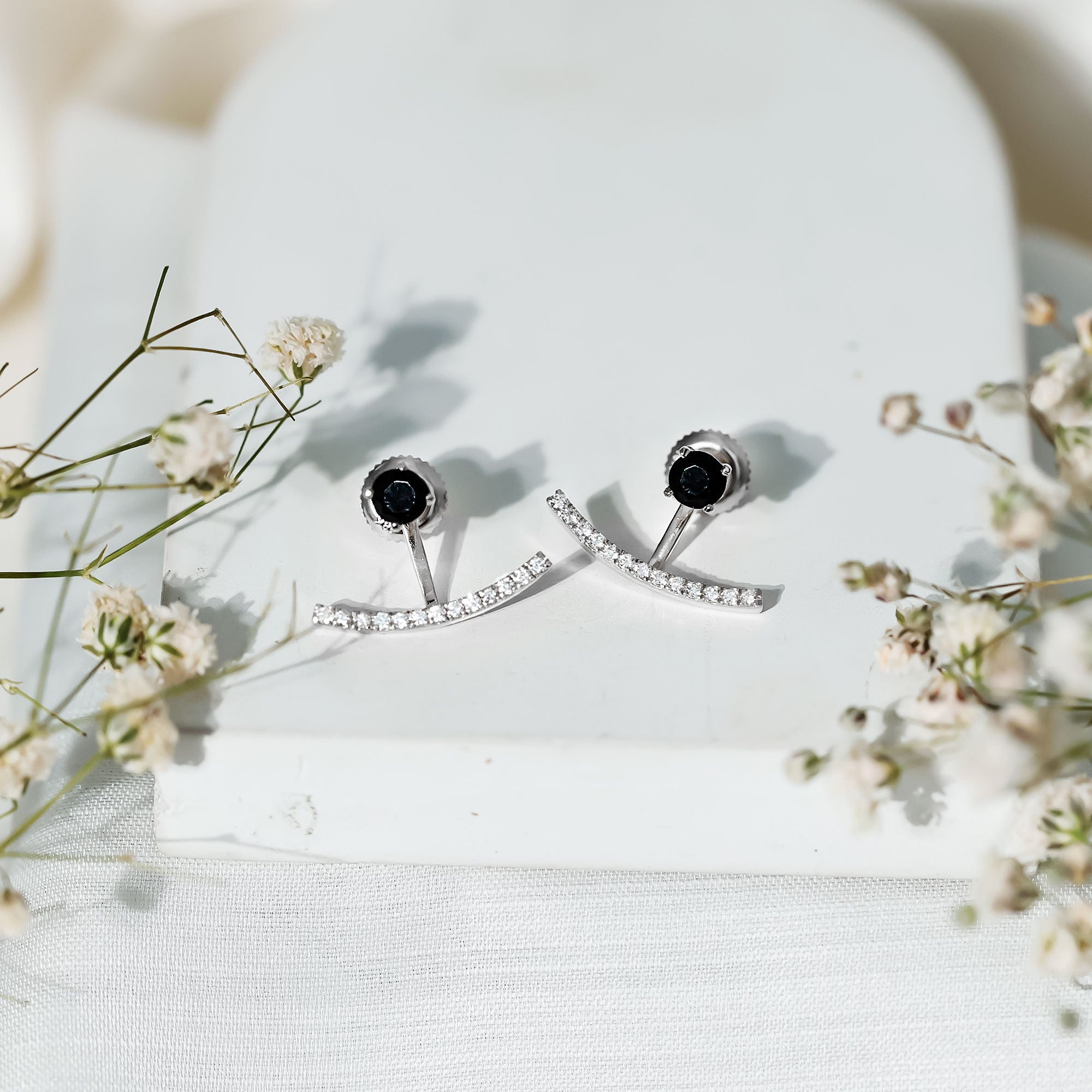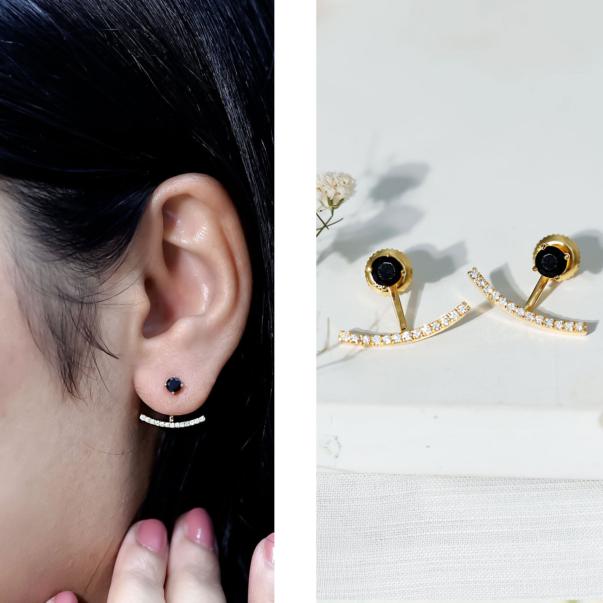 The Front Back Earrings are a gorgeous pair designed to create desirable looks as and when you like and can be worn together or separately. The Front Back Earrings are adorned with Round Shape Black Onyx in front and Round Diamonds are set on the jacket. The Double Sided Earrings are secure comfortably with screw backs. Celebrate a special milestone in your relationship by getting our beautiful Ear Jacket Earrings for your better half as an anniversary gift.