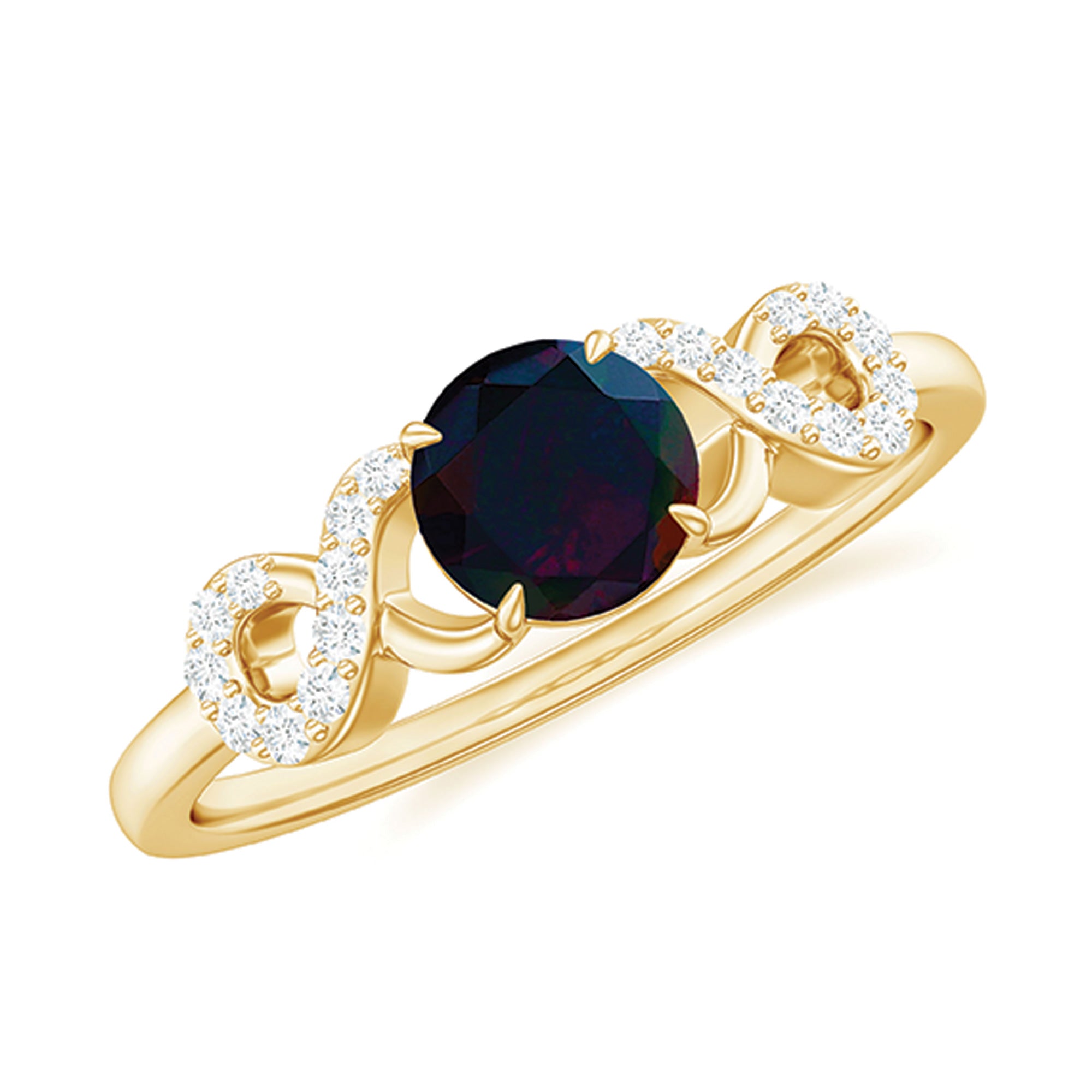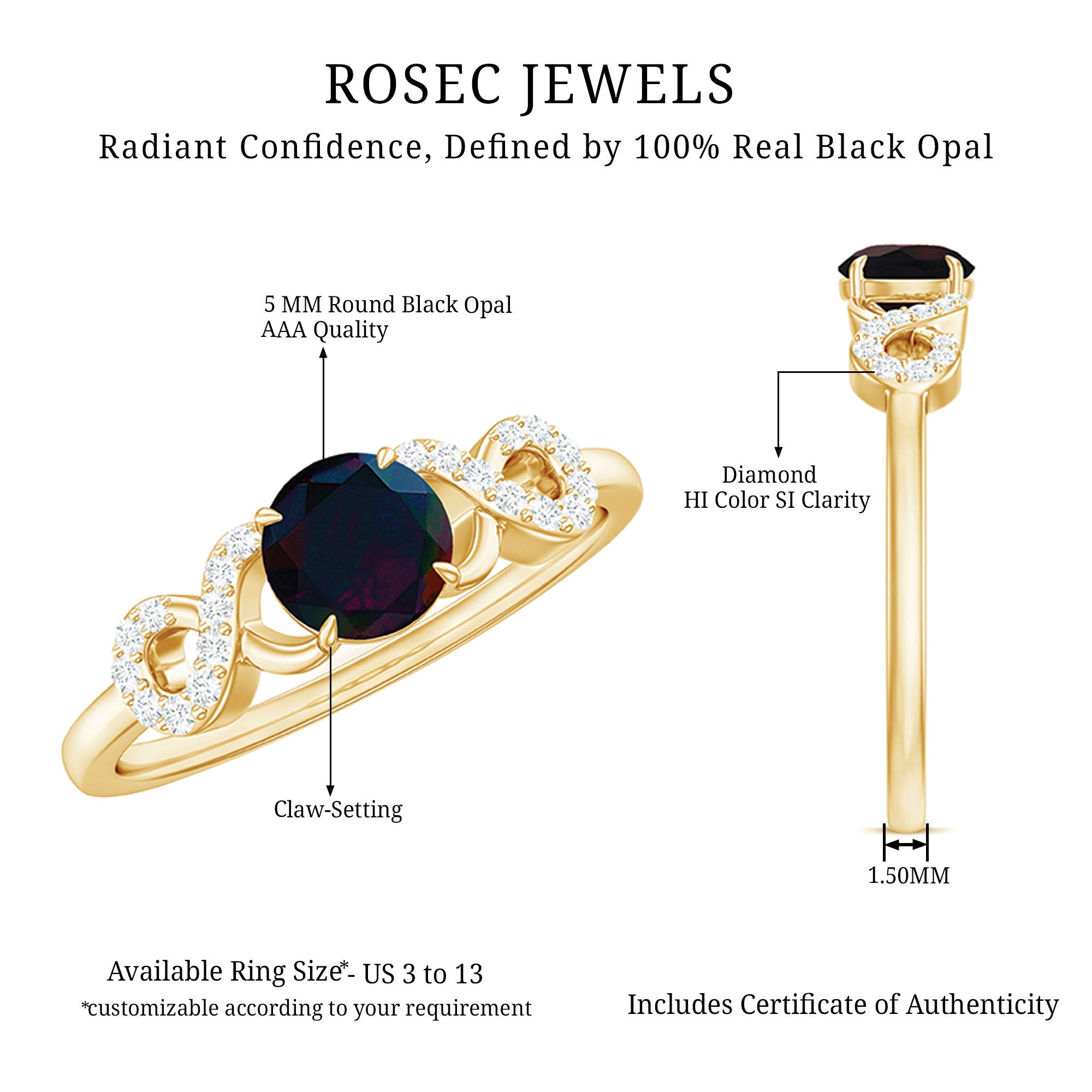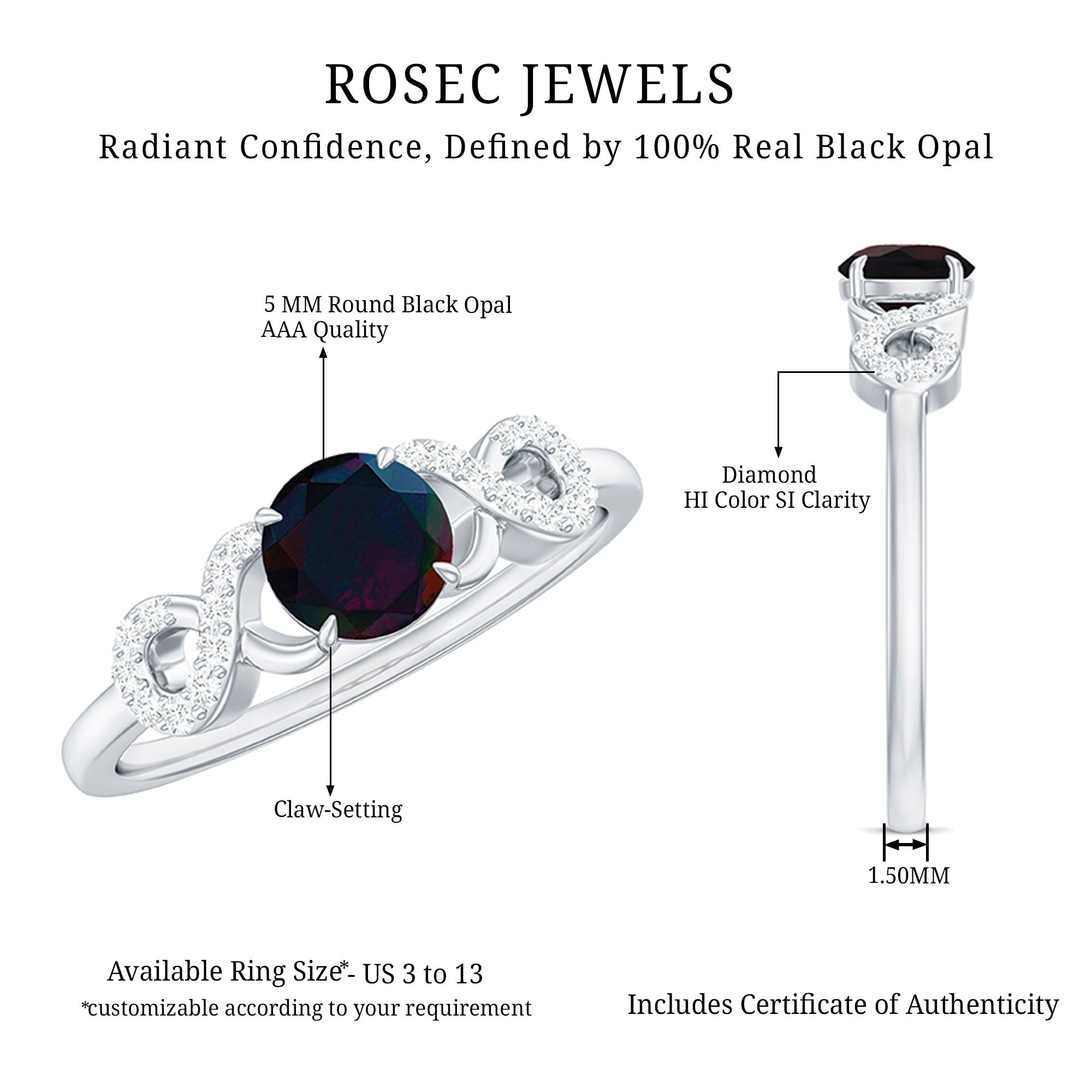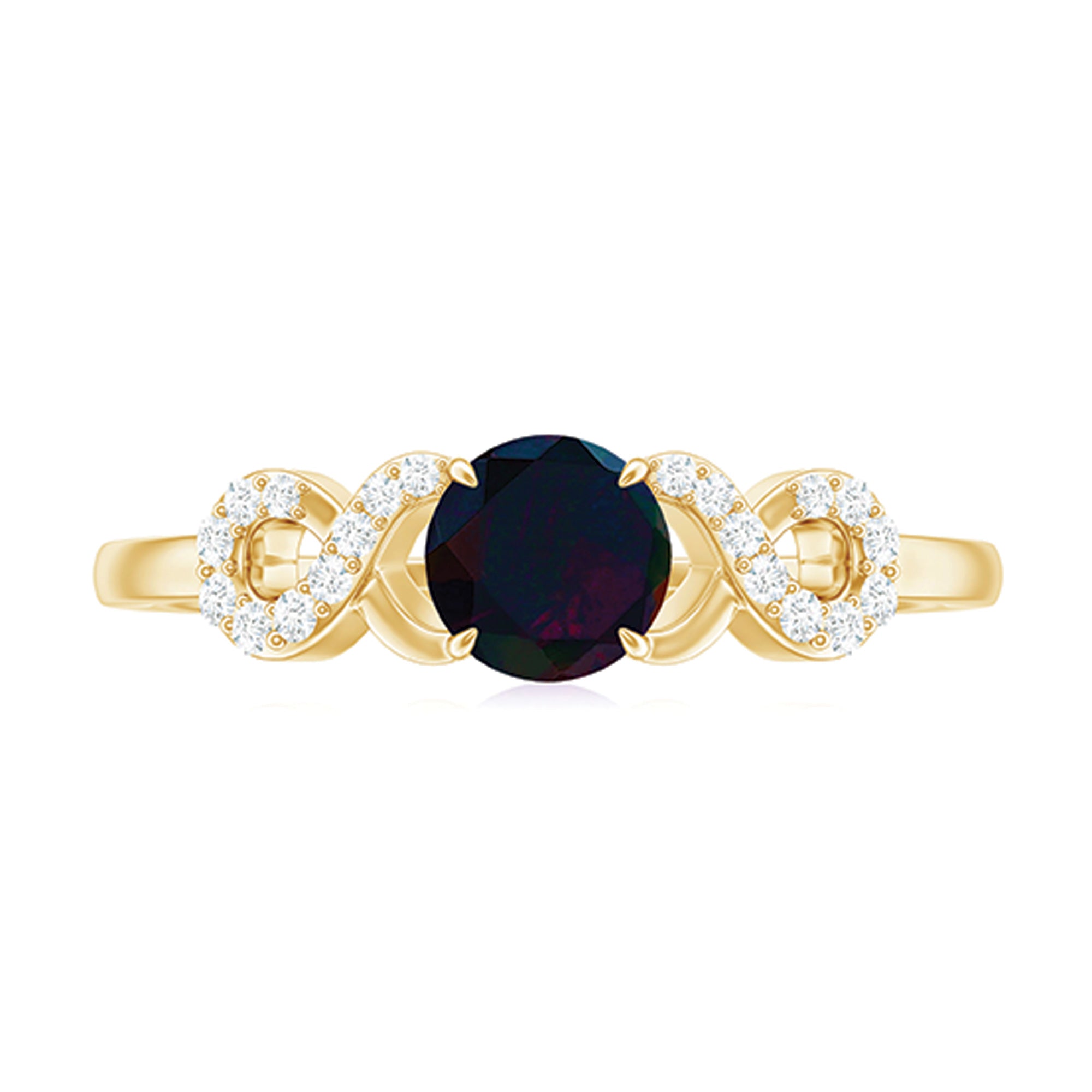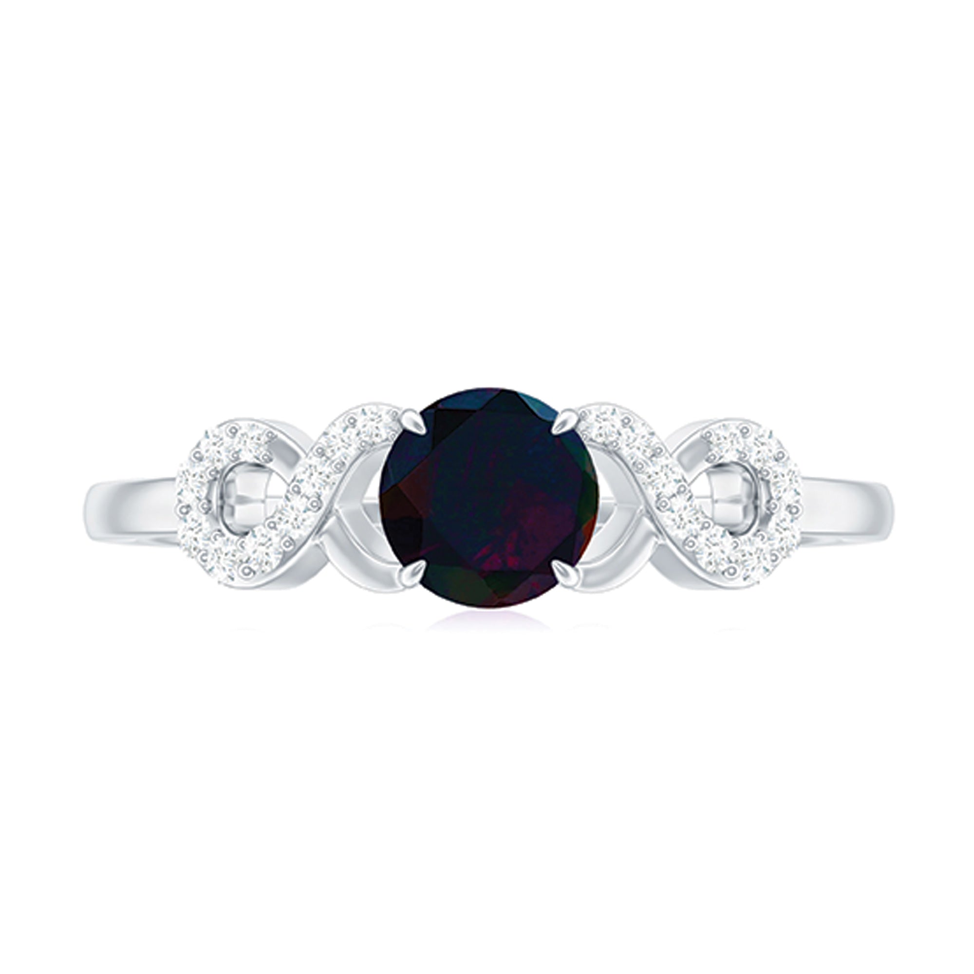 Round Black Opal Criss Cross Promise Ring with Diamond