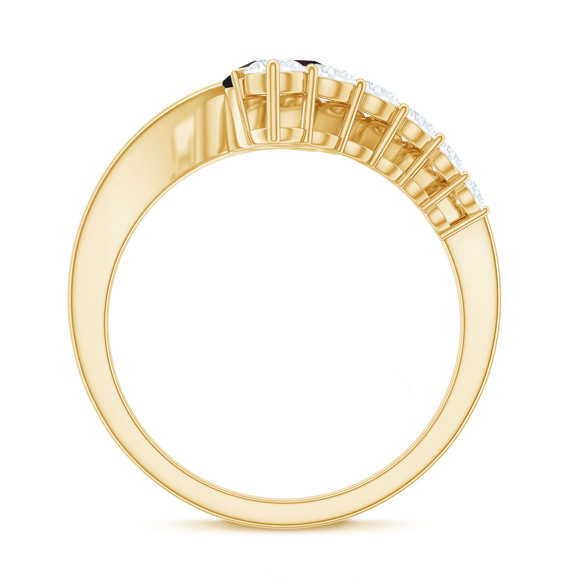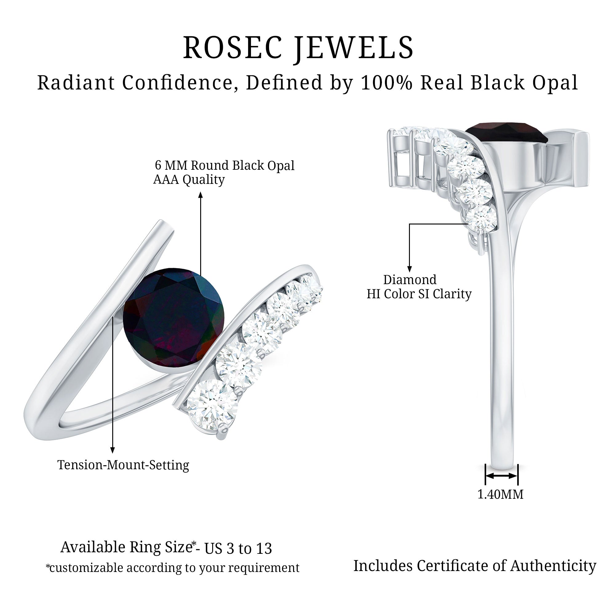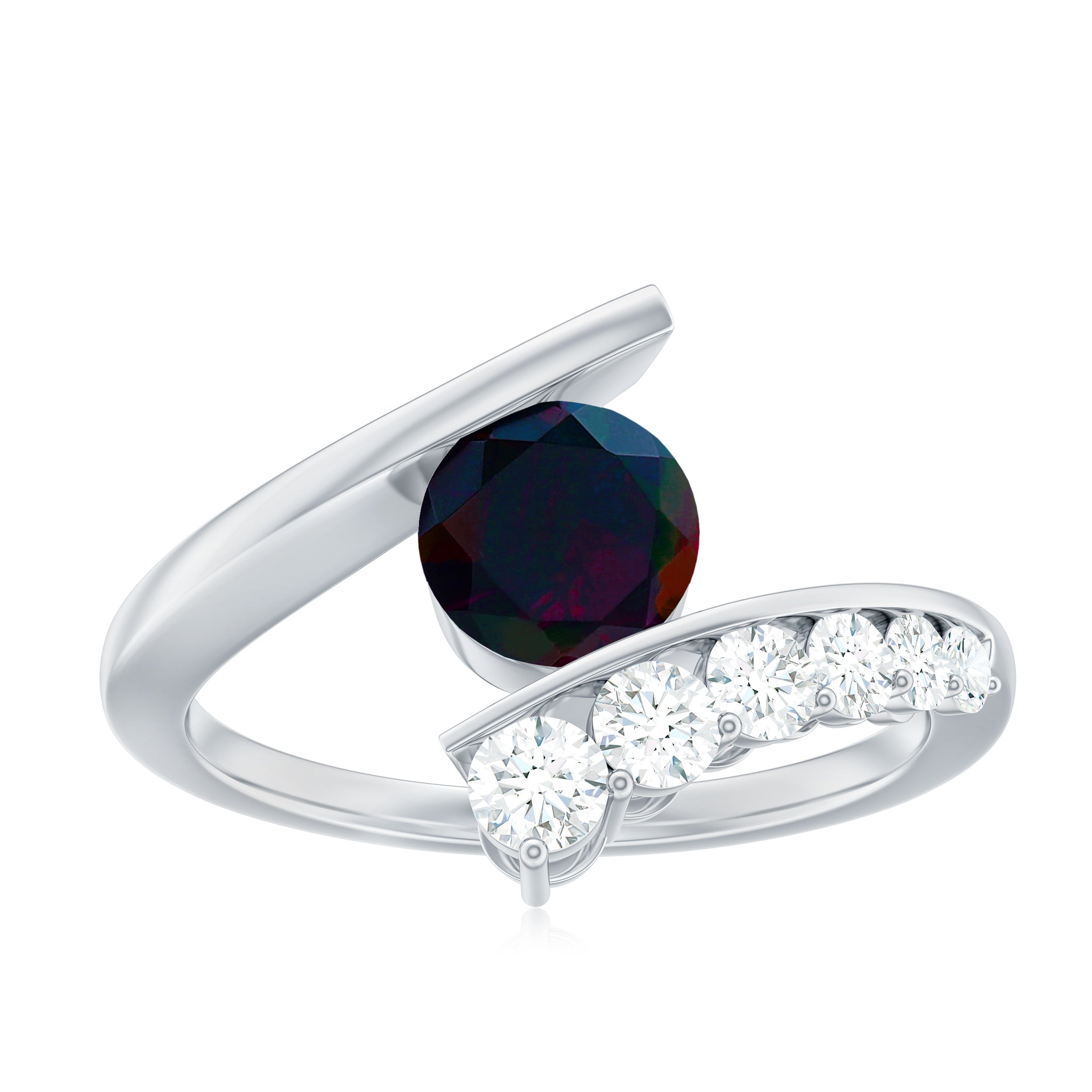 Round Black Opal Solitaire Bypass Ring with Diamond
