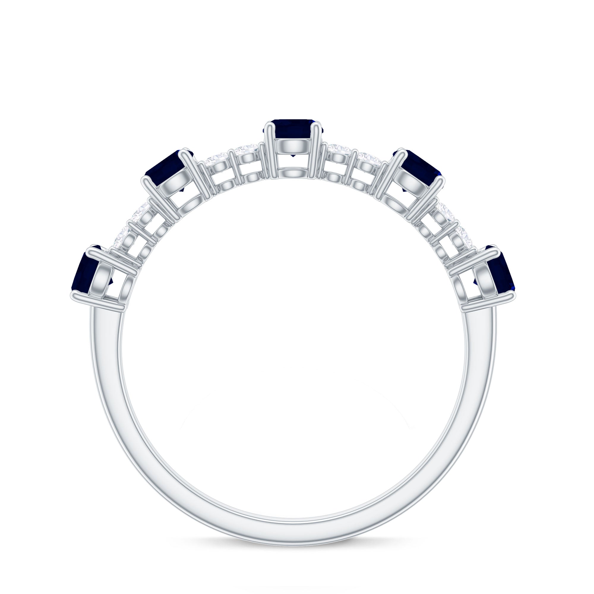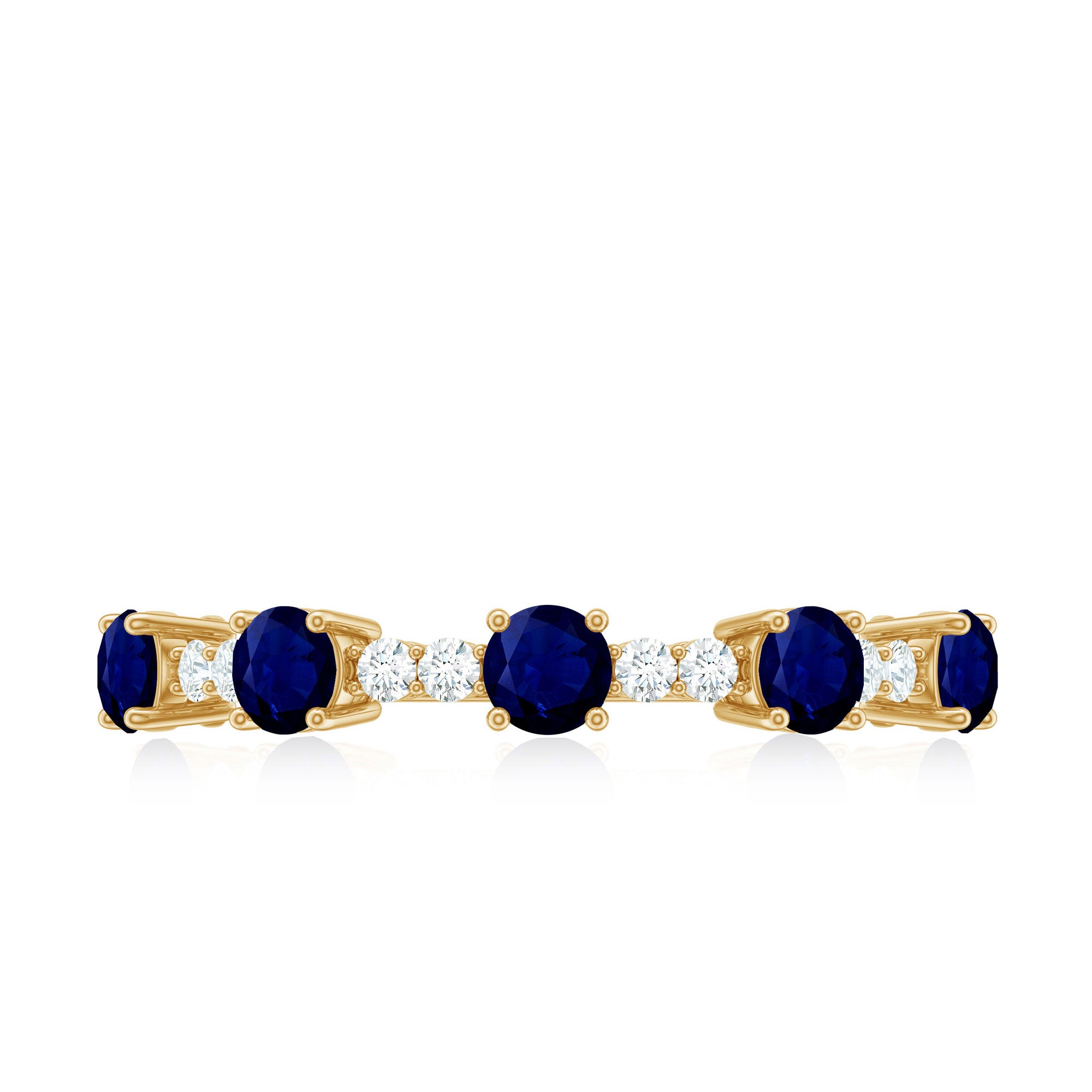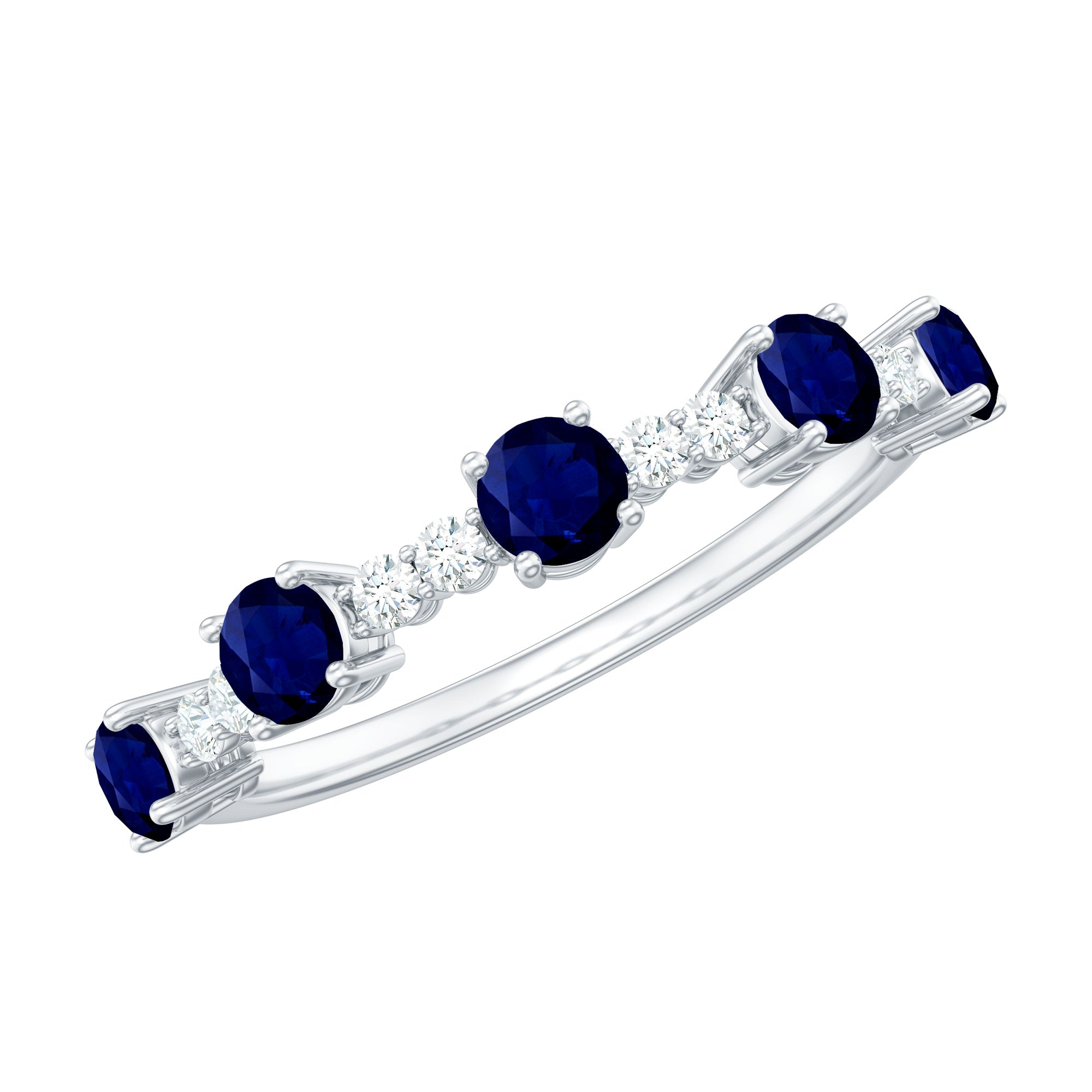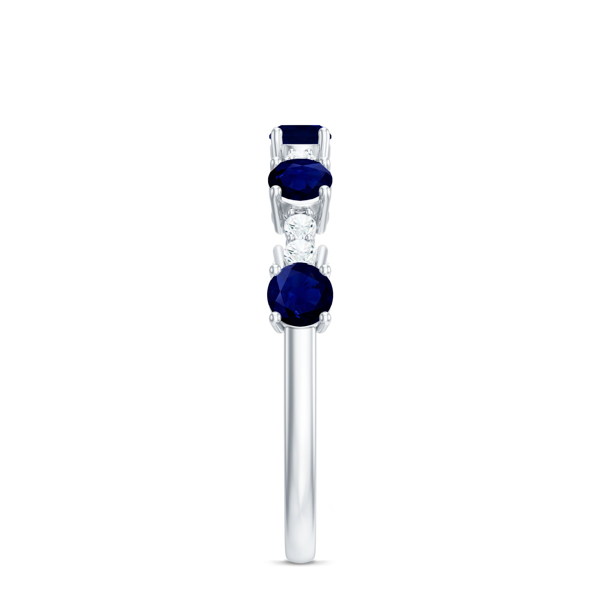 Round Blue Sapphire and Diamond Half Eternity Ring