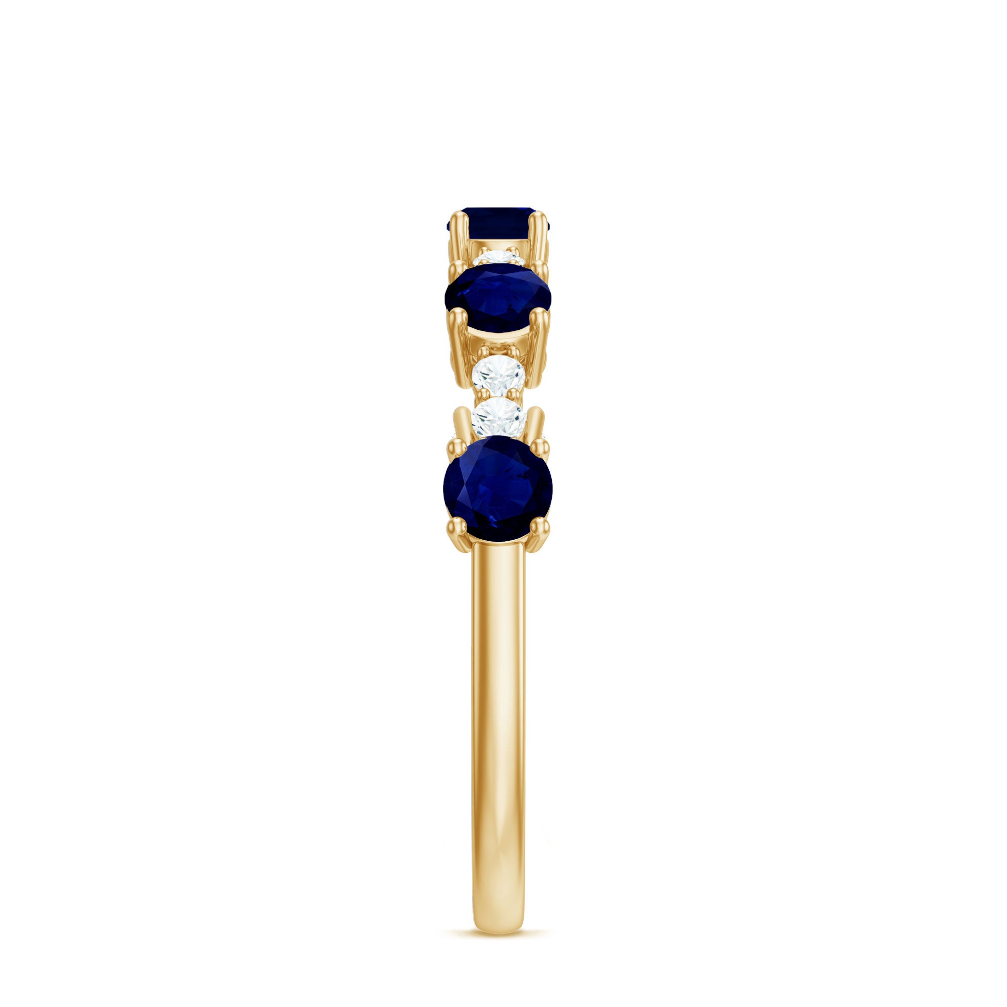 This simple and subtle Half Eternity Band Ring is embellished with Round Shape Blue Sapphire in Prong Setting and Diamond gives an elegant look to you.