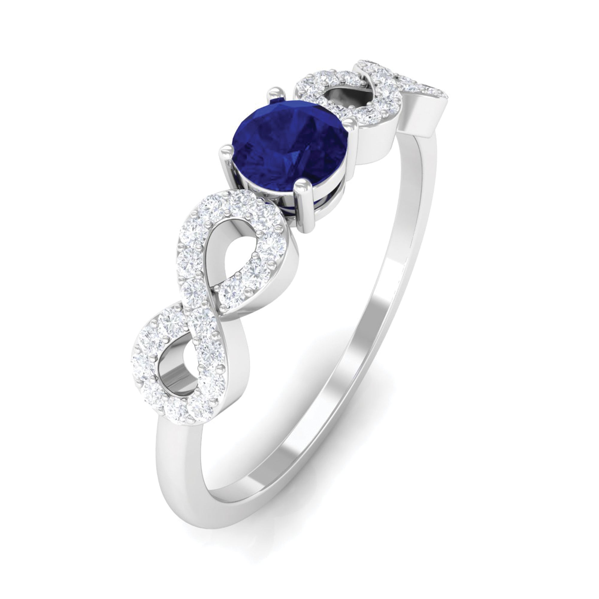 Round Blue Sapphire Solitaire Ring with Infinity Diamond