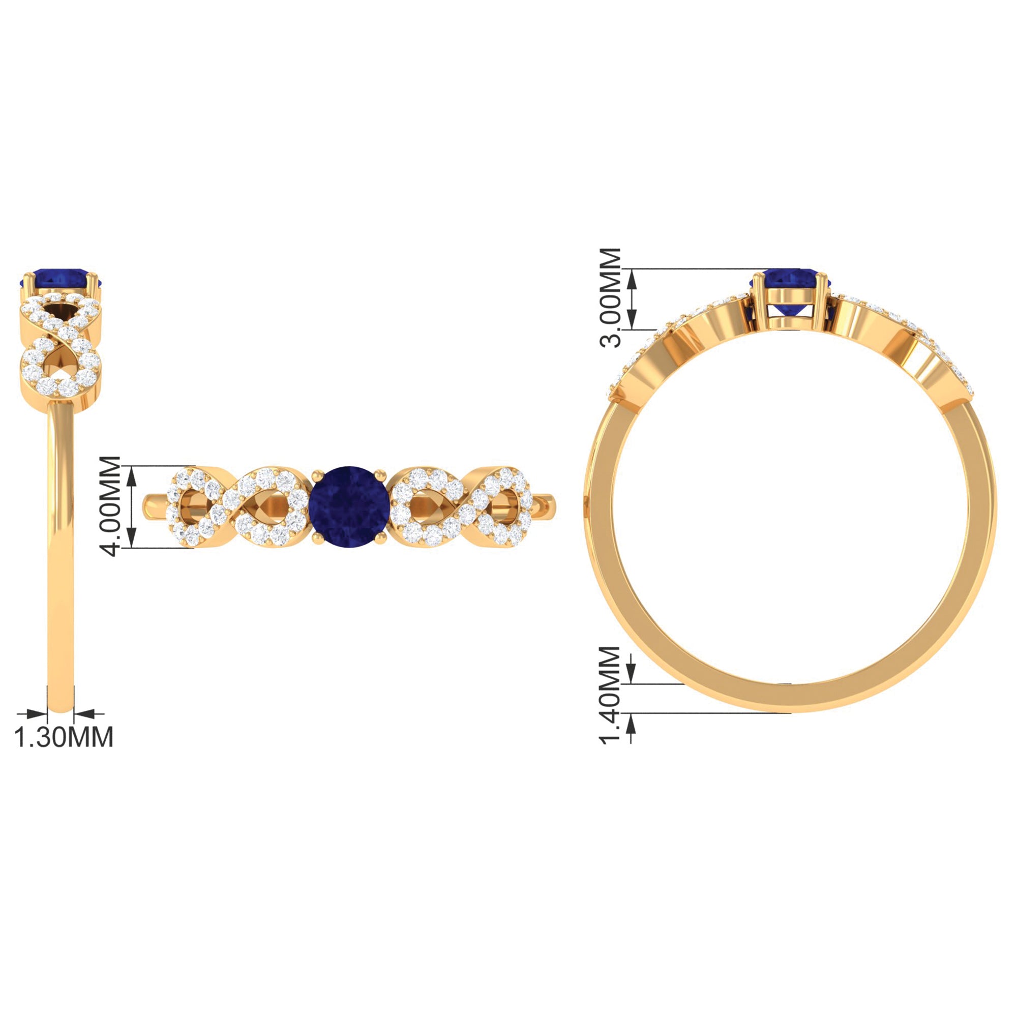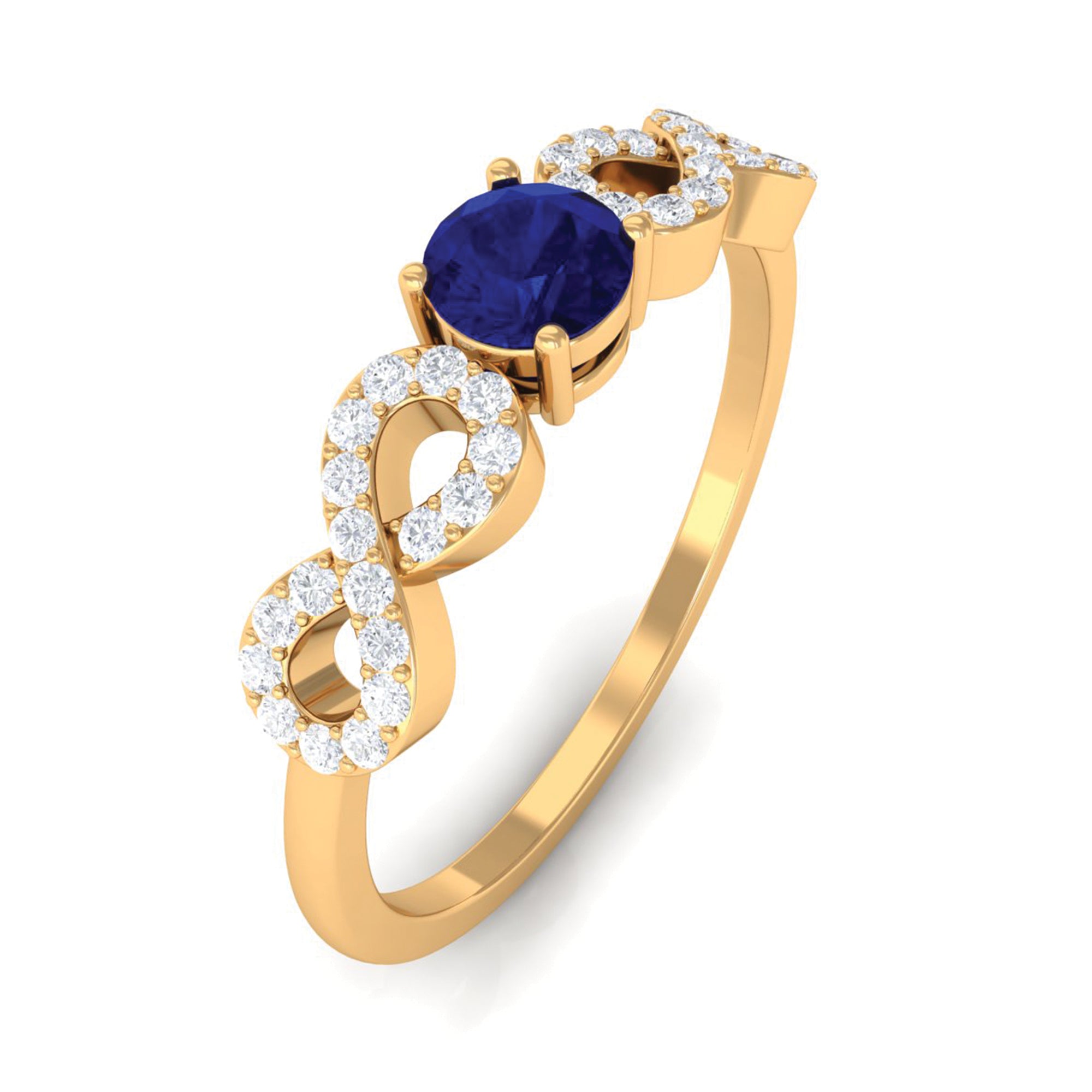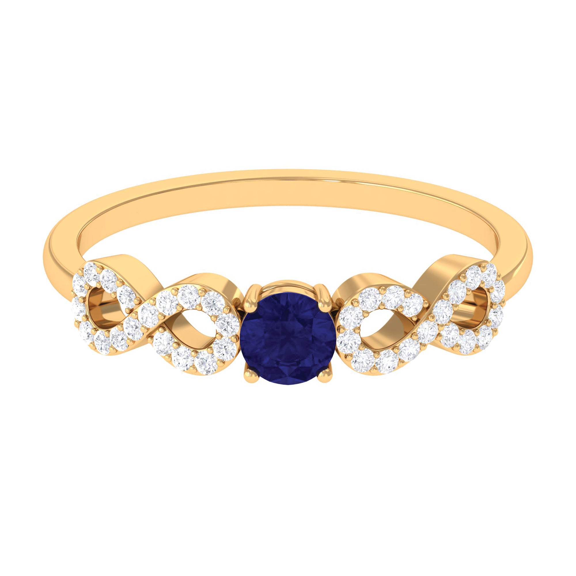 Adorn your finger with a round blue sapphire solitaire ring featuring infinity Diamond, a captivating combination of grace and brilliance.