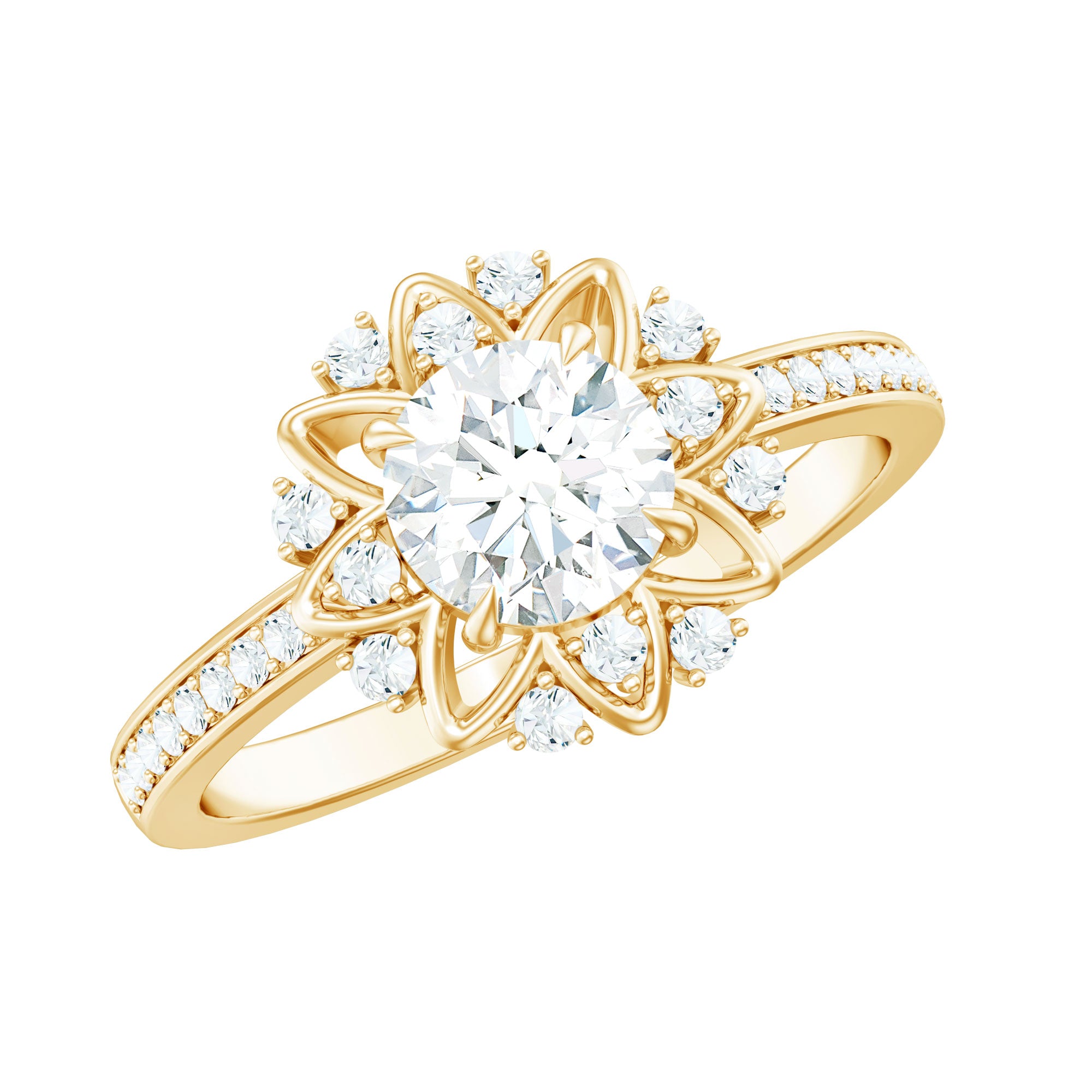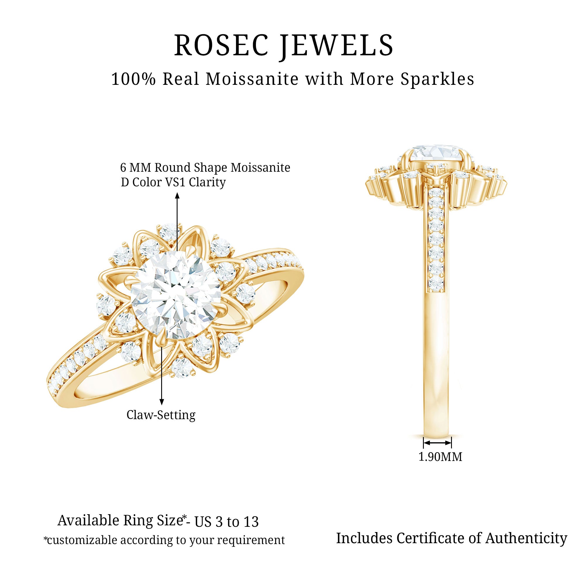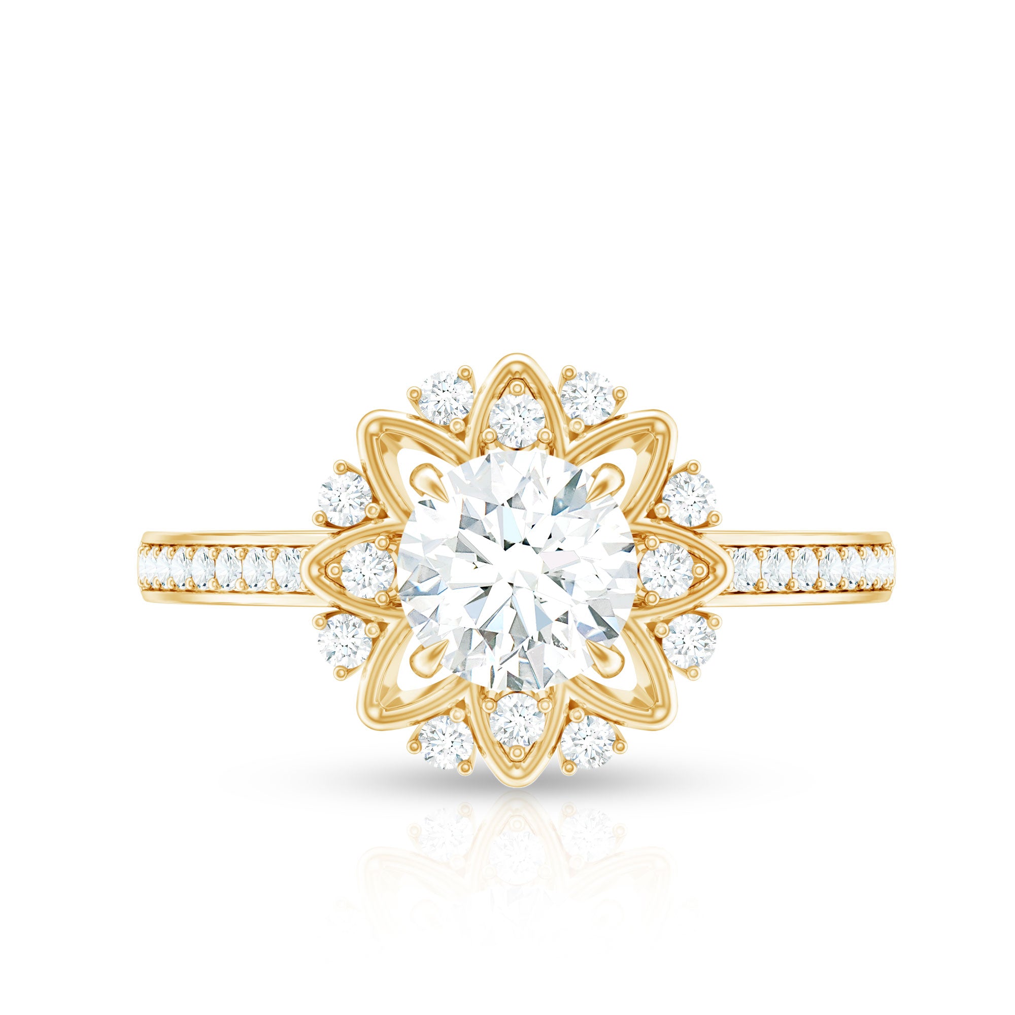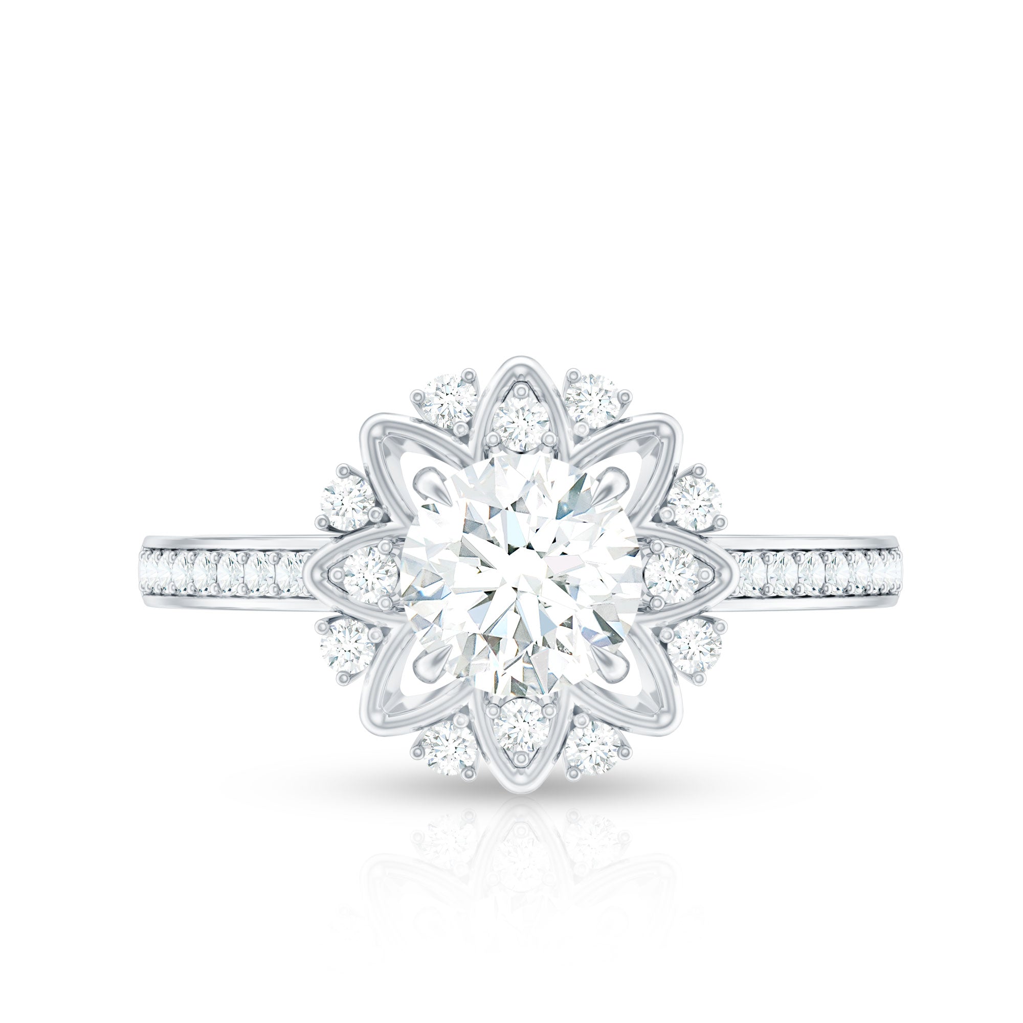 Round Certified Moissanite Flower Engagement Ring