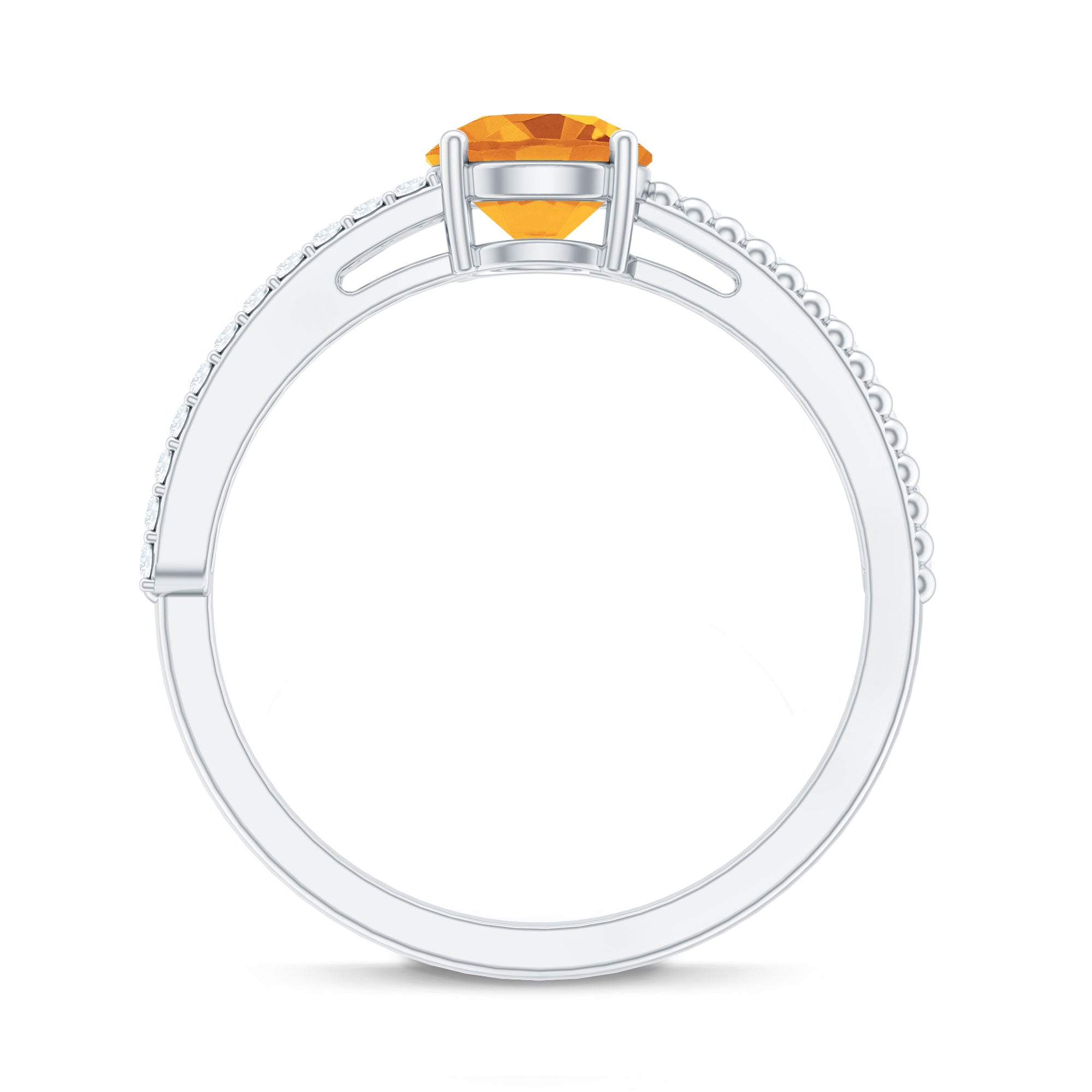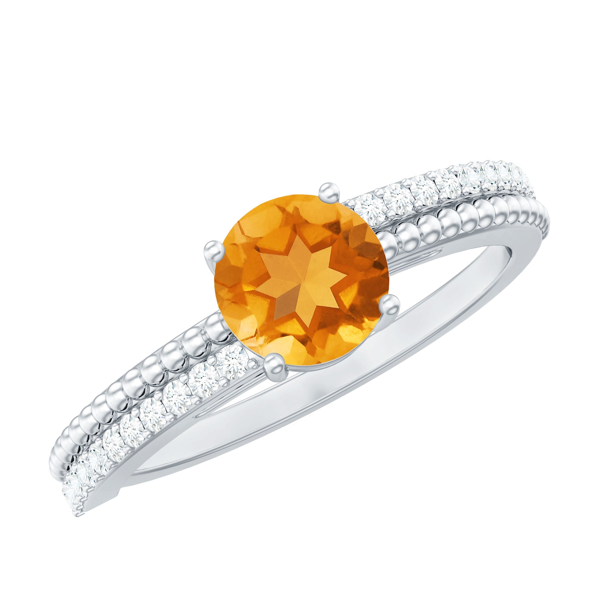 Natural Citrine Solitaire Engagement Ring with Diamond