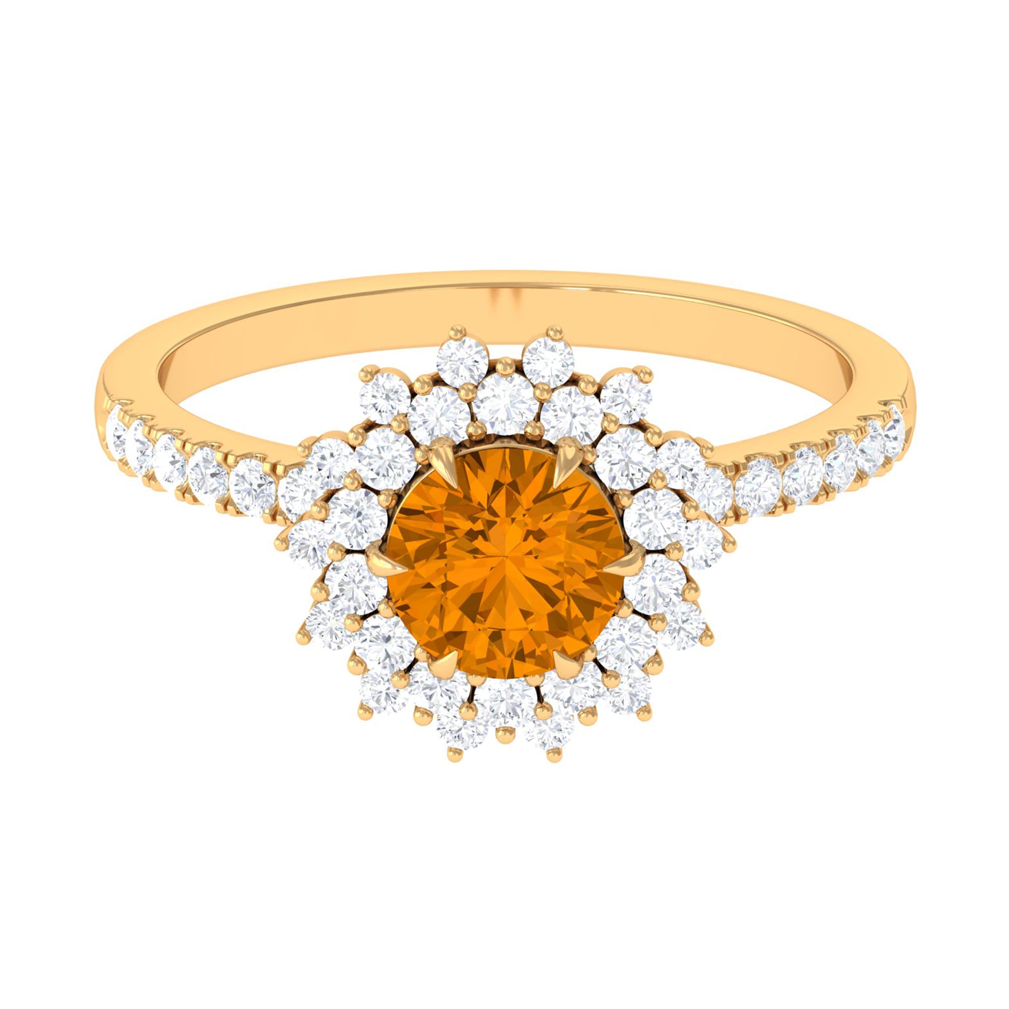 Round Citrine Statement Engagement Ring with Moissanite Cluster Halo