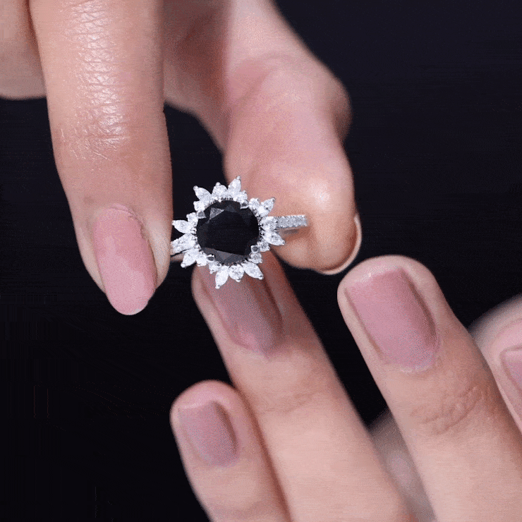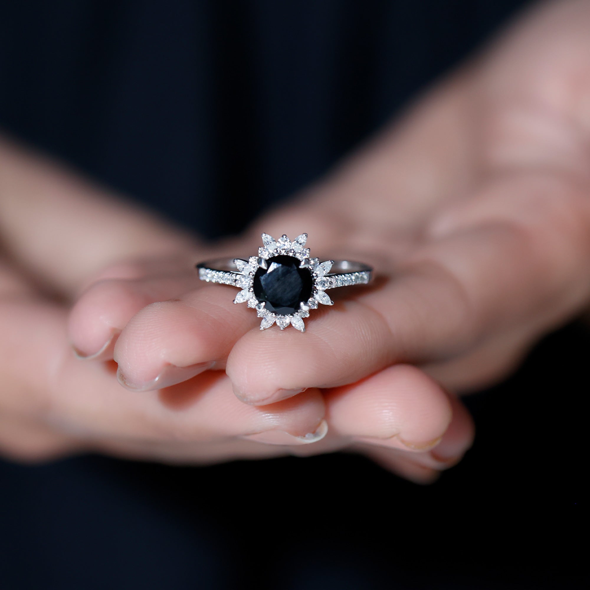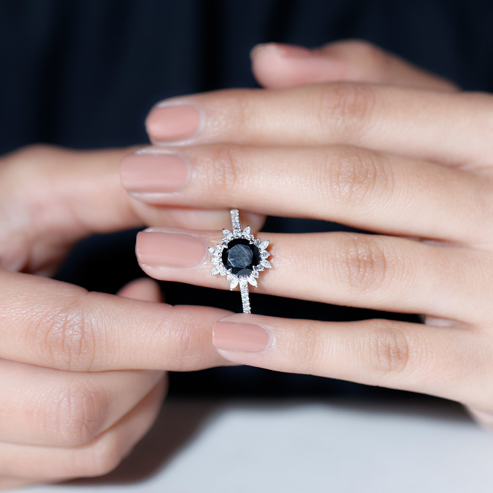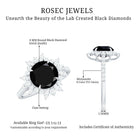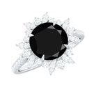 Round Created Black Diamond Statement Ring with Moissanite Floral Halo