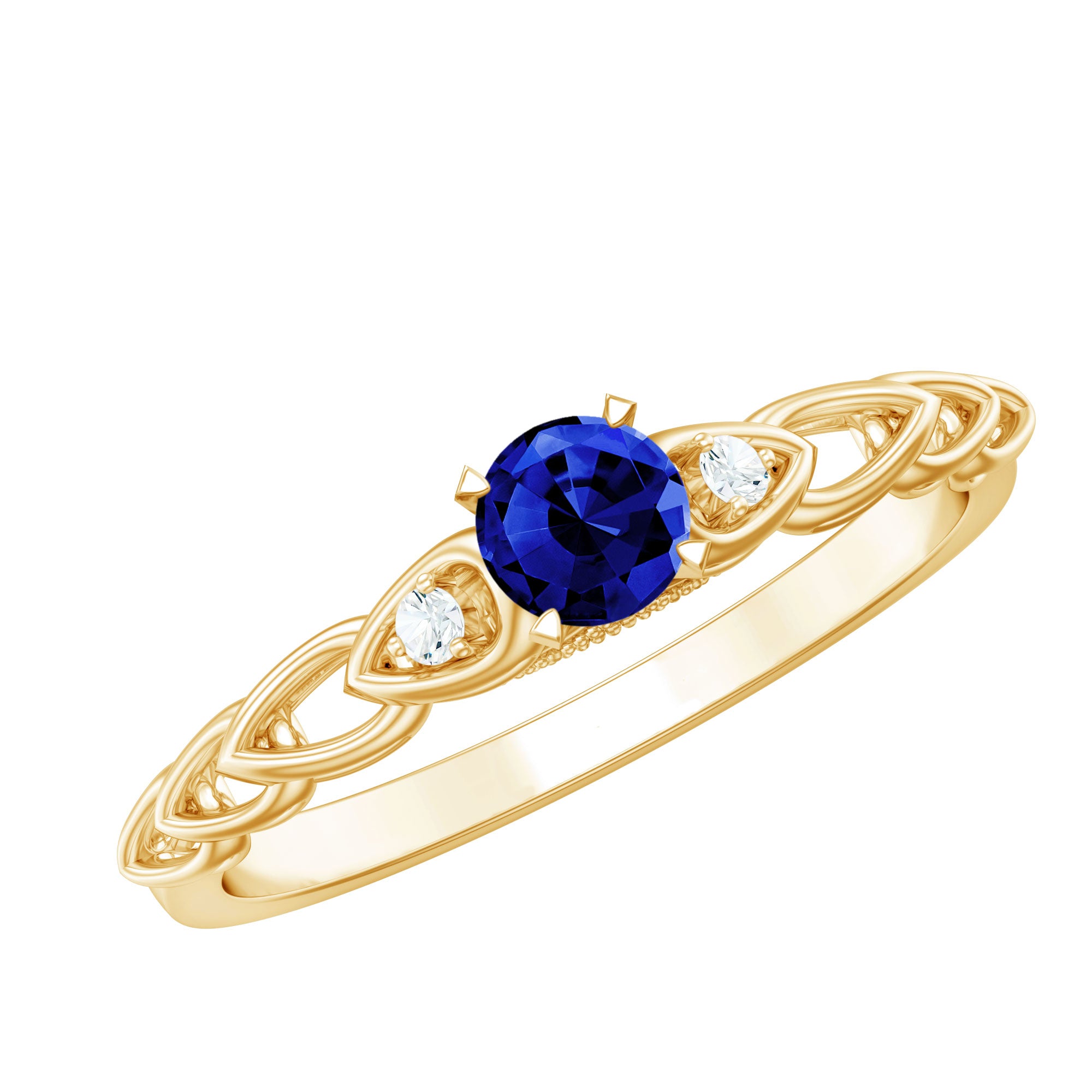 Round Created Blue Sapphire and Diamond Designer Promise Ring