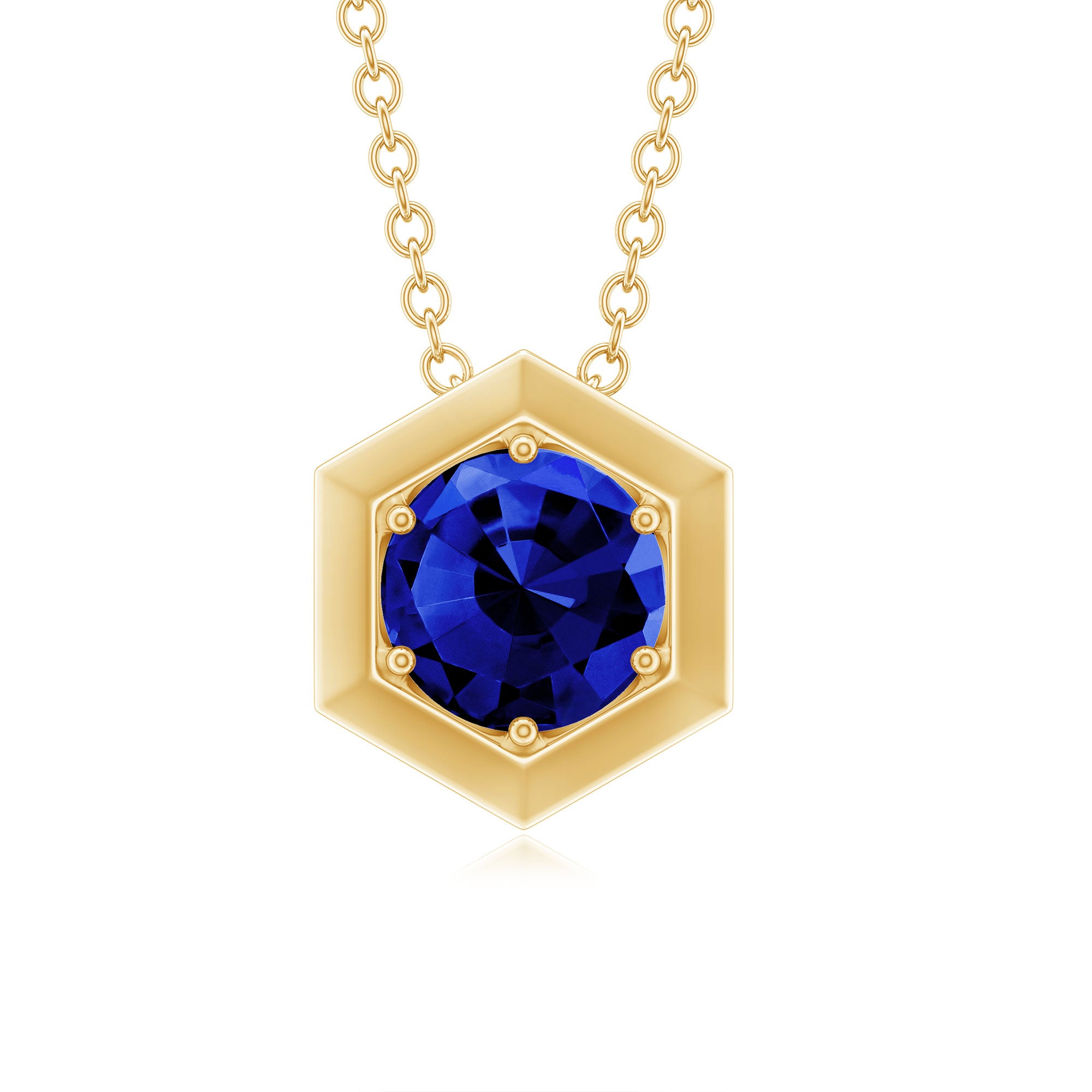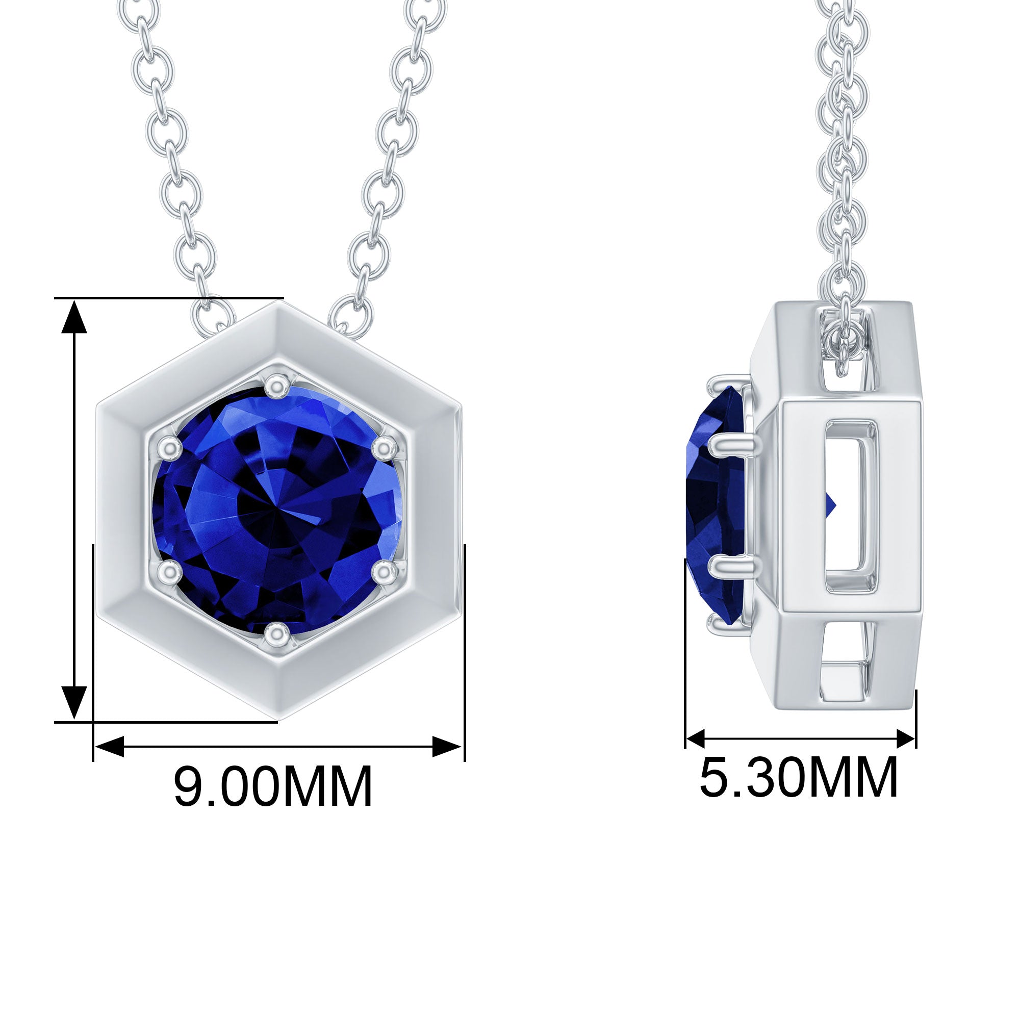 Round Created Blue Sapphire Hexagon Shape Pendant Necklace