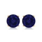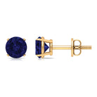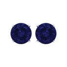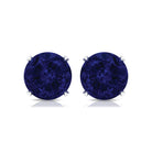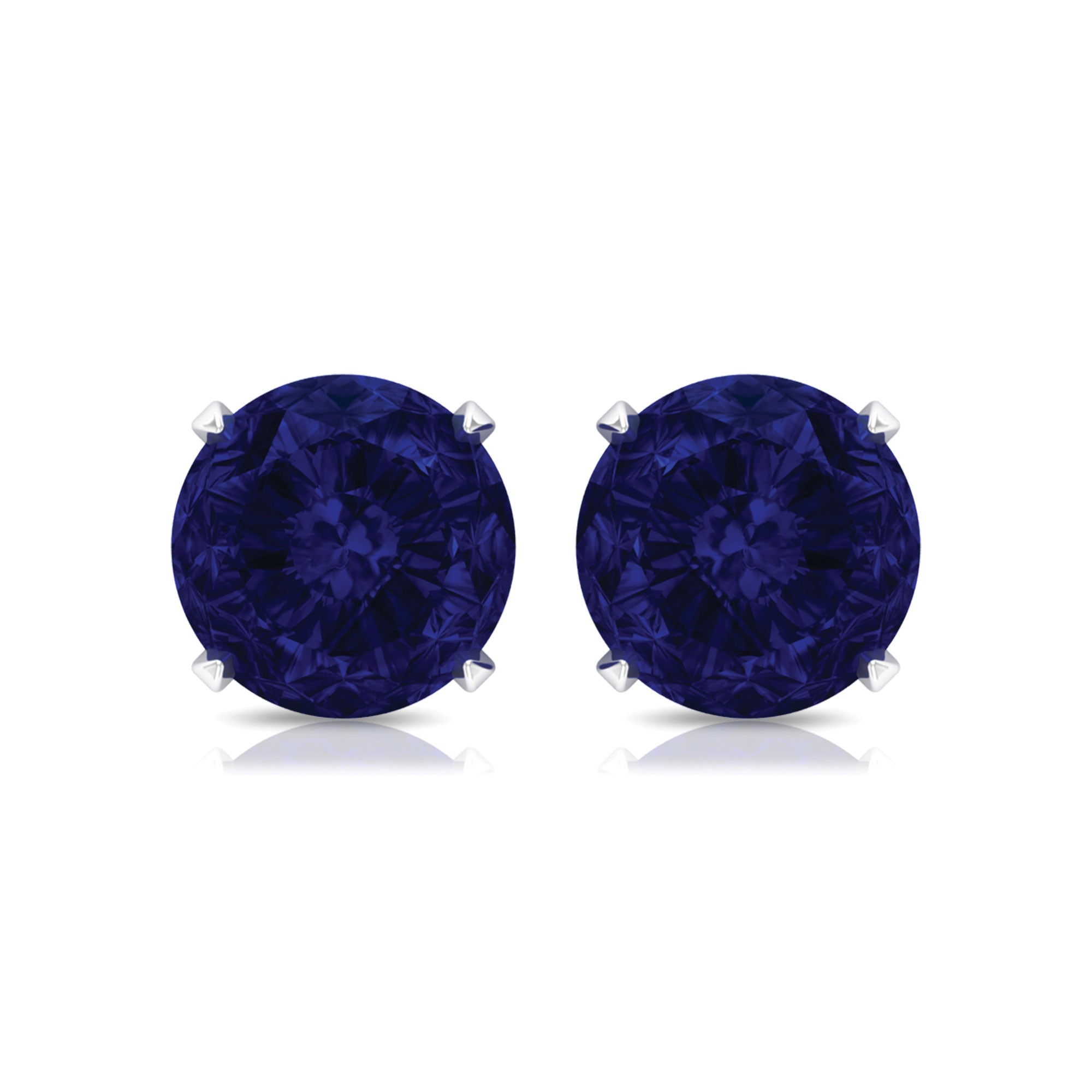 Round Created Blue Sapphire Solitaire Stud Earrings in Claw Setting