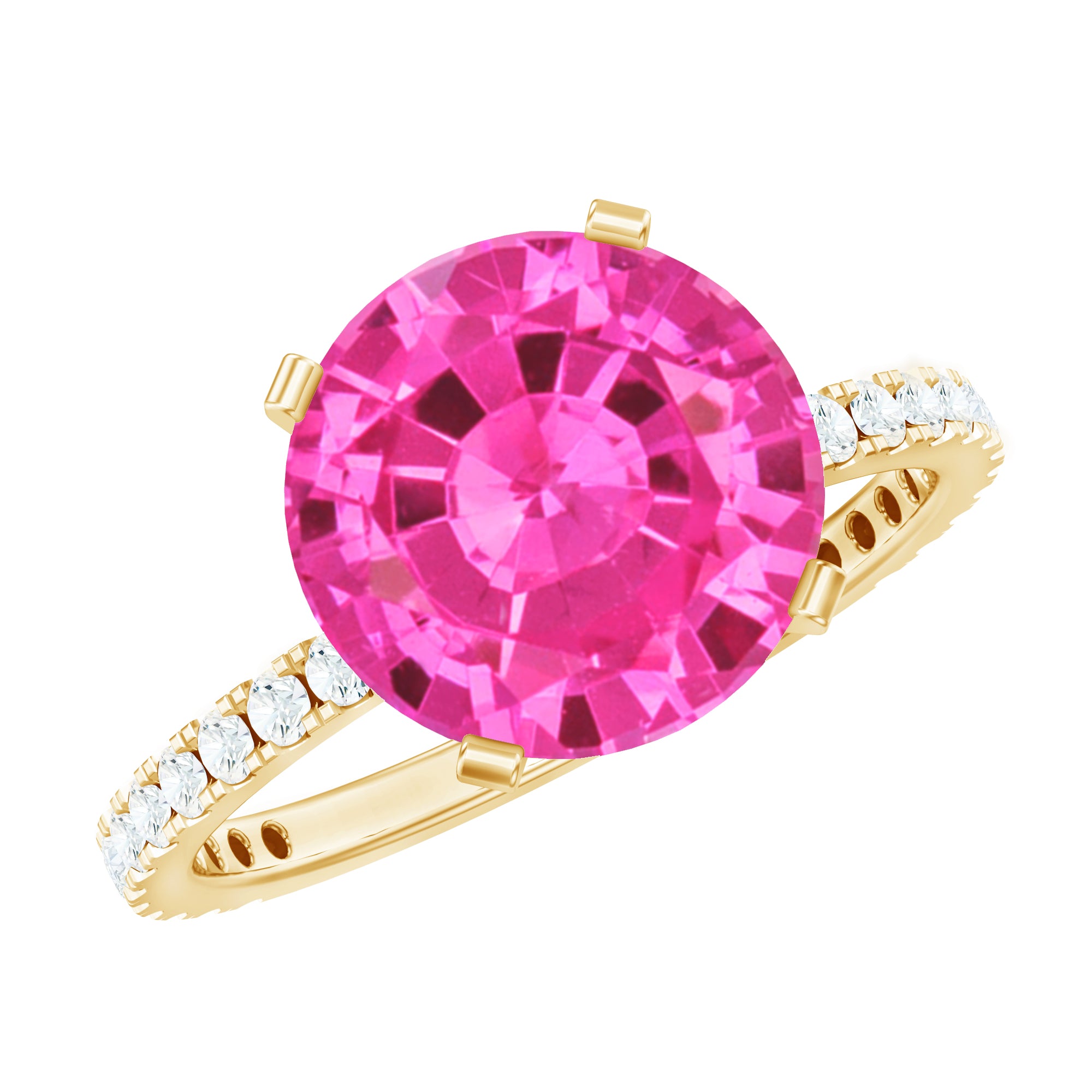 Round Created Pink Sapphire Solitaire Engagement Ring with Diamond