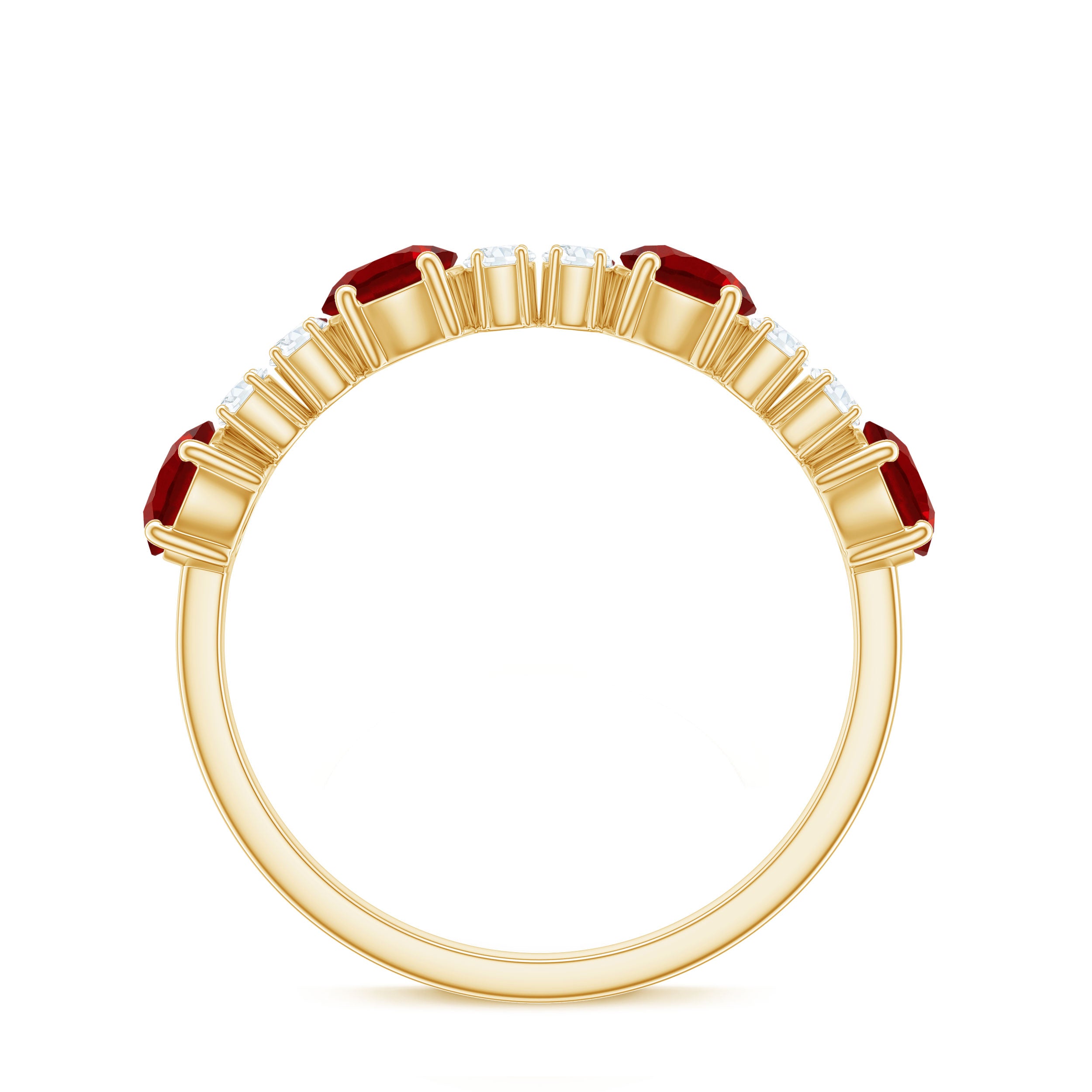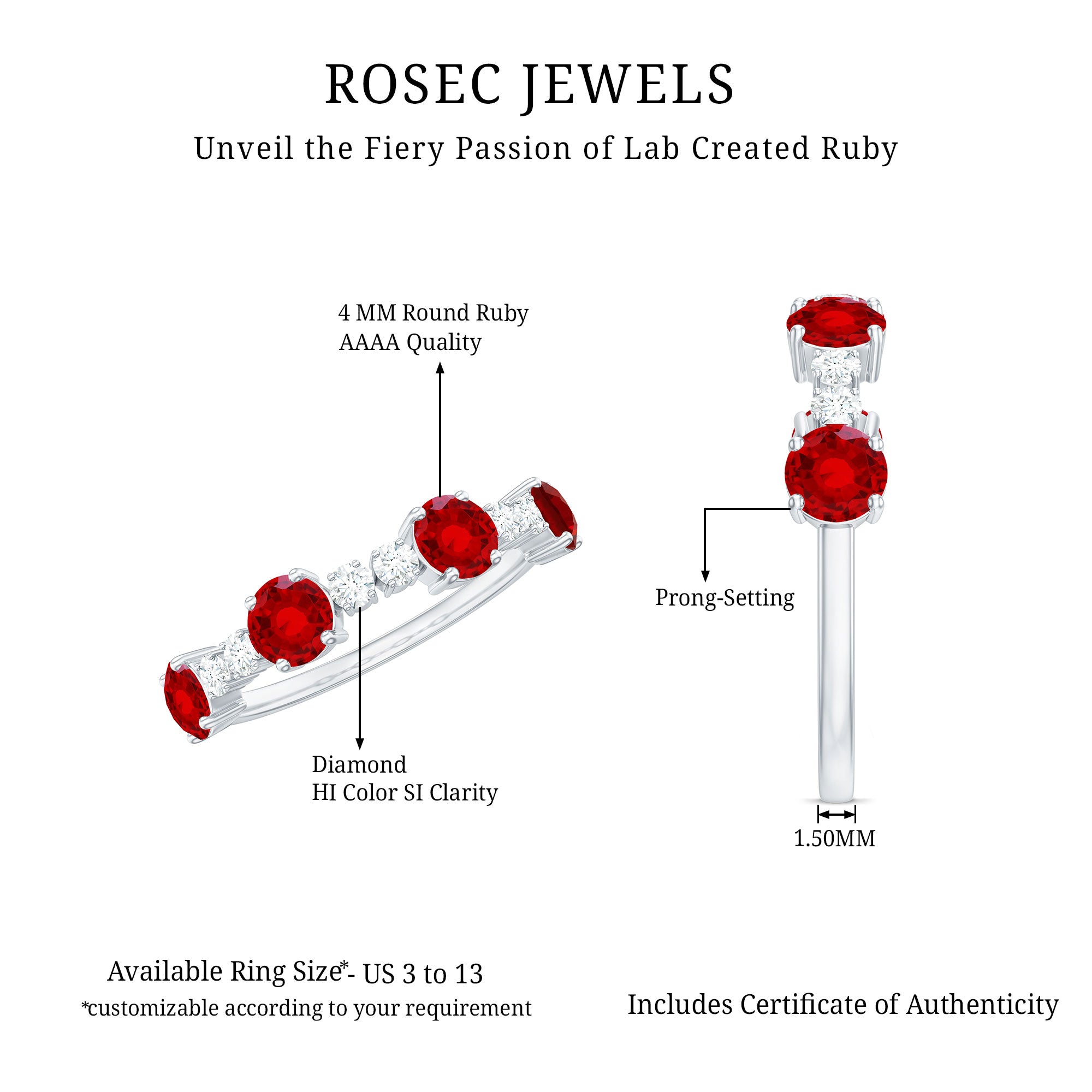 Round Created Ruby and Diamond Alternate Half Eternity Ring