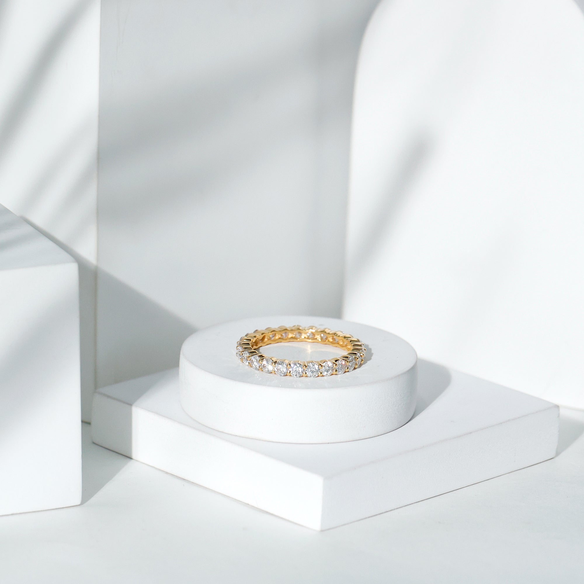 Round Cubic Zirconia Full Eternity Band Ring in Gold