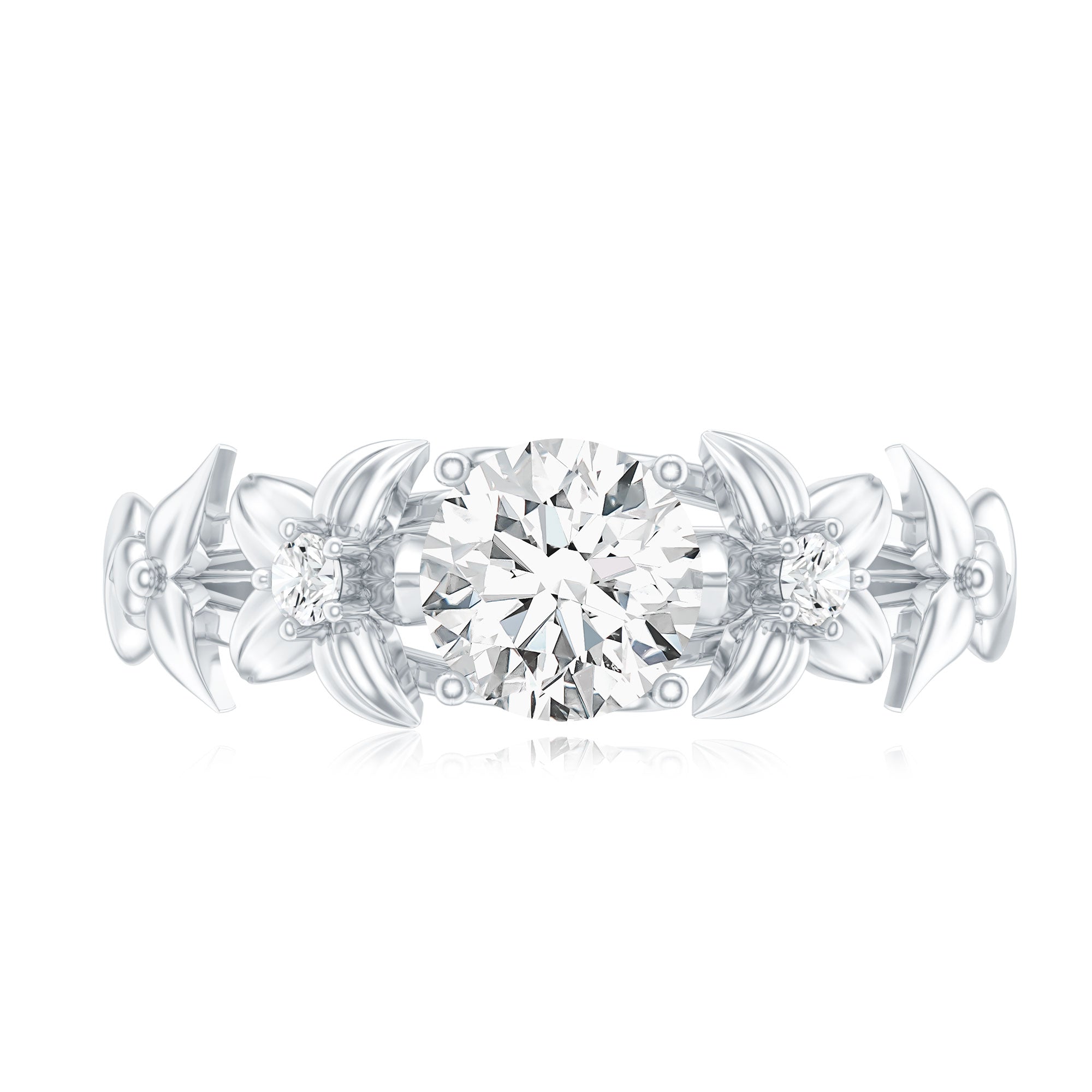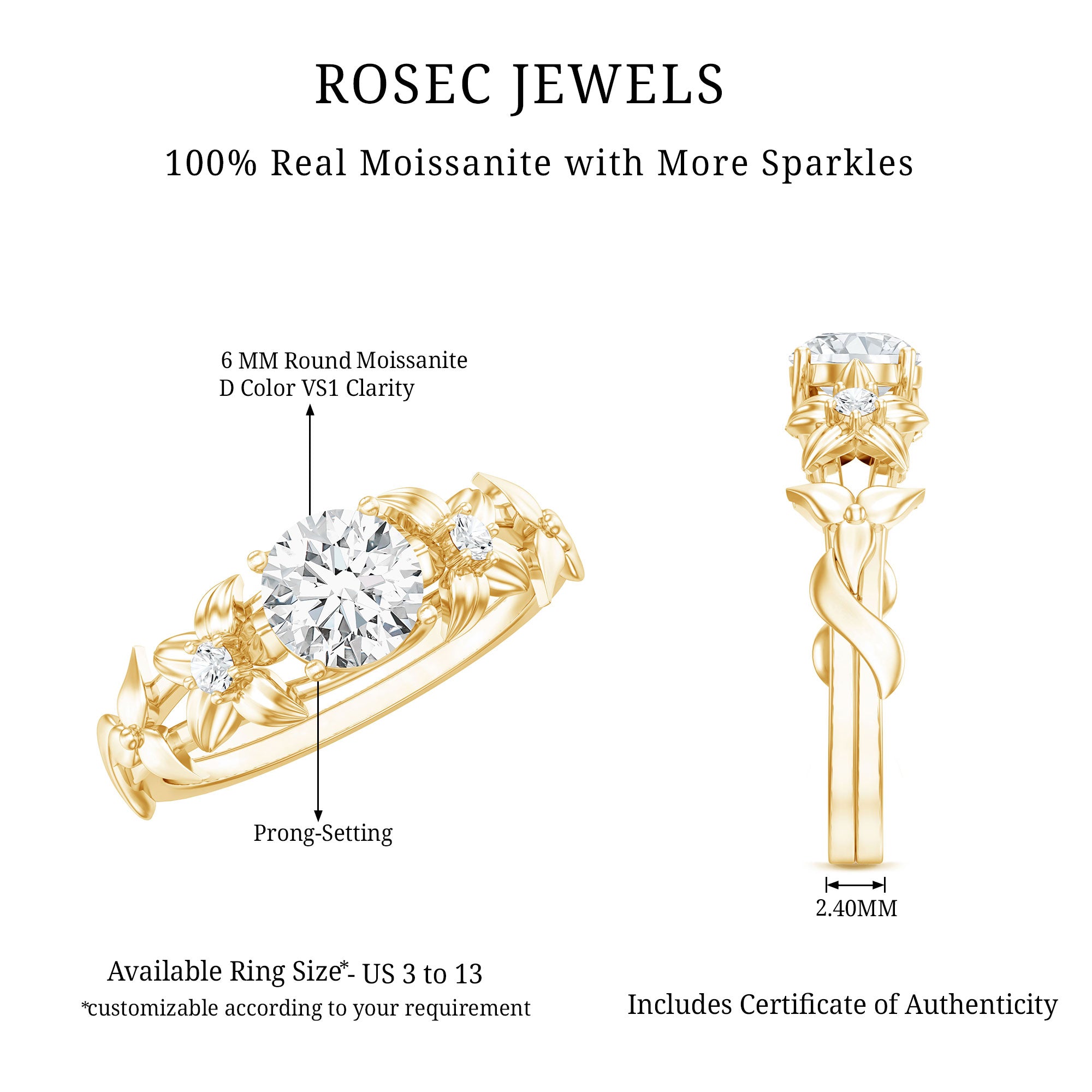 Round Cut 6 MM Moissanite Floral Engagement Ring