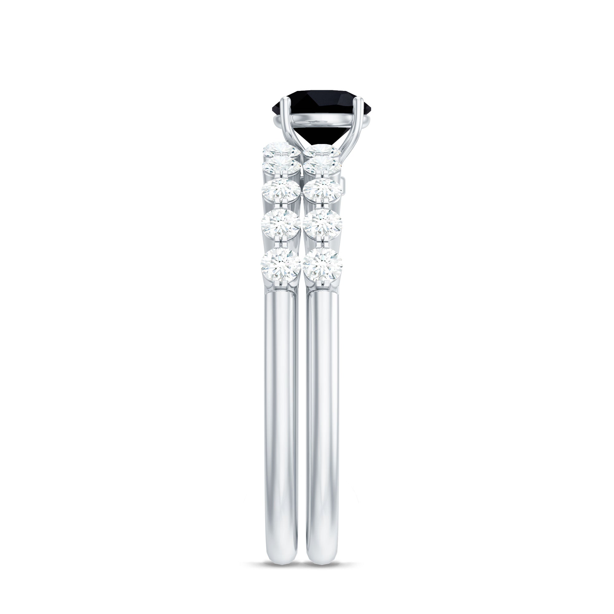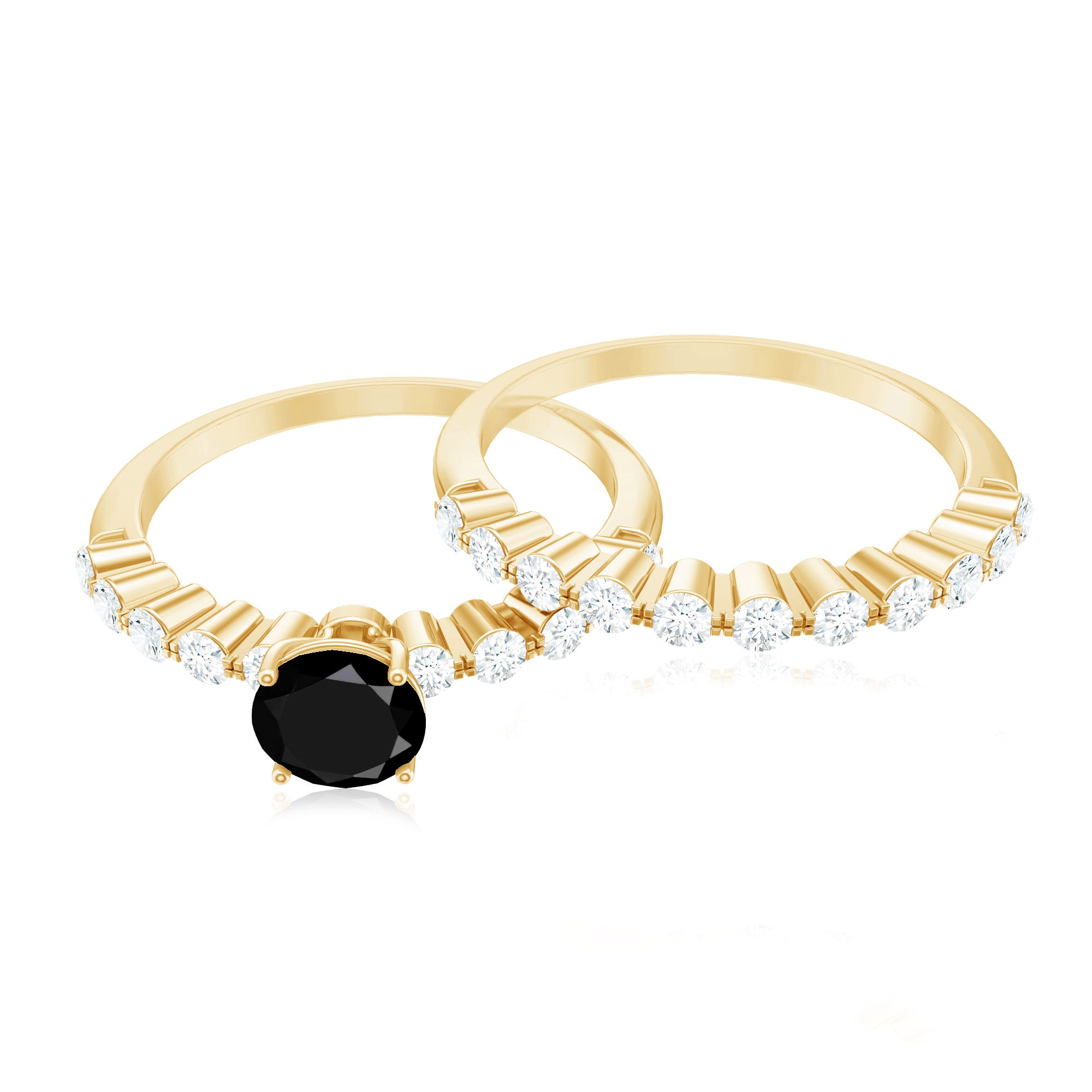 Mark a meaningful chapter in your love story with this beautifully designed Black Onyx Bridal Ring Set, crafted to reflect elegance, strength, and connection. At the heart of the engagement ring is a 5 MM round cut black onyx, held securely in basket setting. The engagement ring is accented with sparkling round diamonds along the band, offering a delicate contrast that enhances the center stone. Paired with this is a matching wedding band, designed to align perfectly and sit flush beside the engagement ring. The band features a row of round diamonds, adding extra brilliance and tying both pieces together in harmony. Whether worn as a Bridal Wedding Ring Set or separately, each ring carries its own charm and elegance. The sleek, stackable design ensures everyday comfort while maintaining a refined, graceful look. Crafted with AAA quality black onyx and HI-SI quality diamonds, the stones are hand-selected for their brilliance and quality. Available in US sizes 3 to 13, the Onyx and Diamond Wedding Set is made to fit comfortably and last through every moment. This piece comes packaged in an elegant jewelry box and includes a certificate of authenticity for added confidence. Timeless and modern all at once, this Engagement Ring with Wedding Band Set is a beautiful reminder of the bond you share and the future you are building together.