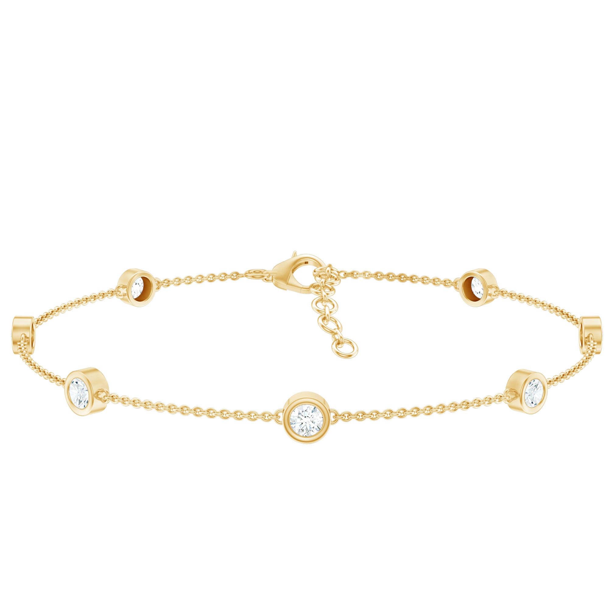 Round Cut Certified Moissanite Chain Bracelet in Bezel Setting