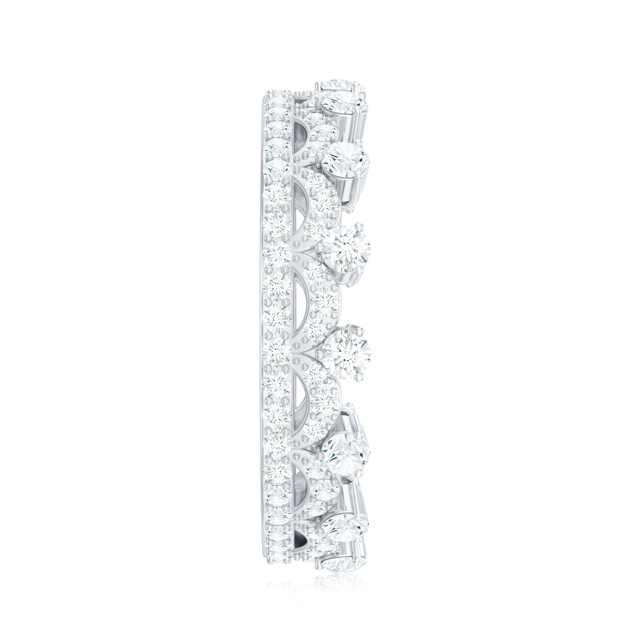 Round Cut Certified Moissanite Crown Wedding Band for Women