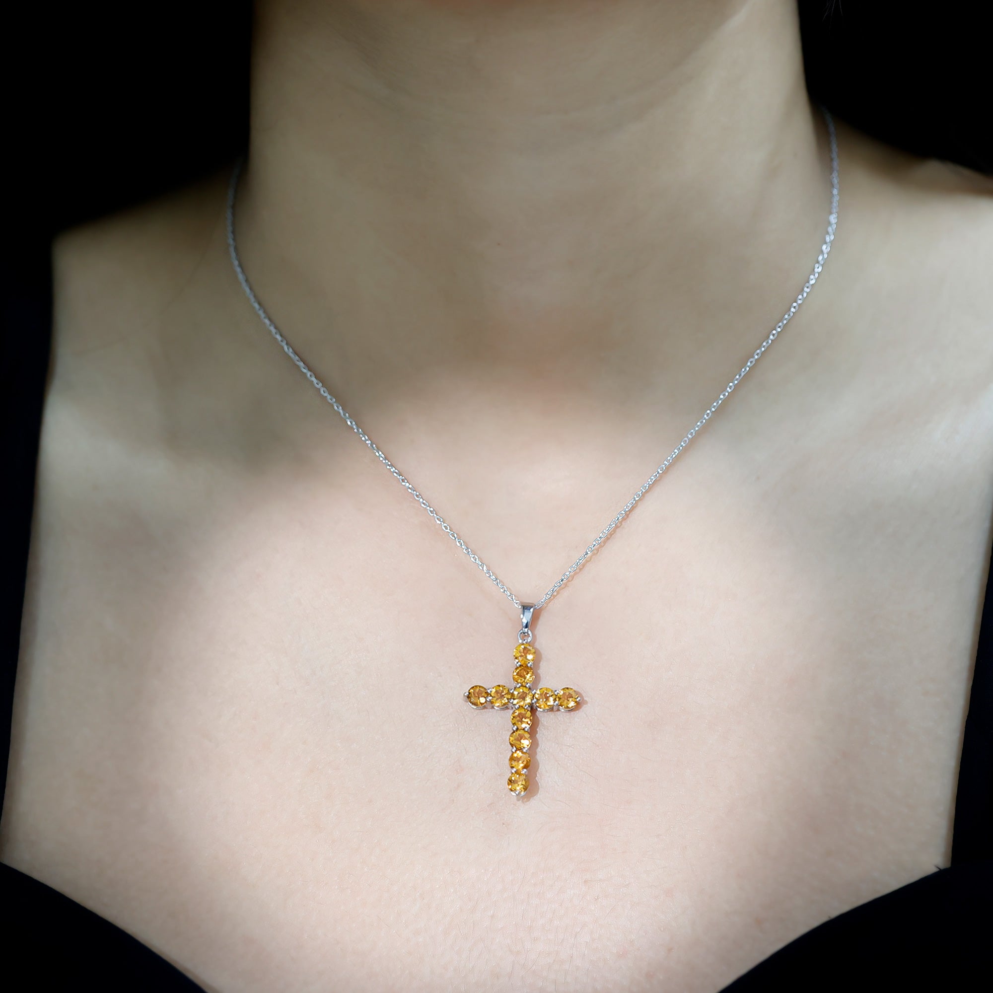Some wear jewelry for beauty, others wear it for meaning, and this Citrine Pendant Necklace does both. Curated as a timeless symbol of faith, wrapped in the vibrant glow of Scorpio energy, this piece becomes more than an accessory - it is a personal emblem of strength, spirituality, and style. This Religious Pendant Necklace features 4 MM round cut citrine stones, the cherished November Birthstone known for its warm golden hue and energizing spirit. Each stone is held in prong setting and forms a cross symbol, which protects you from evil energies. The Cross Locket Necklace is attached to a sleek, high polish bail that seamlessly connects to a delicate yet sturdy cable chain. This entire piece is masterfully created in 14K white gold plated silver, adding a cool contrast that enhances the warmth of the citrines, making every detail pop with elegance and divine craftsmanship. Whether you are gifting this to a Scorpio soul sister, honoring a milestone, or celebrating a baptism, or Thanksgiving, this Christian Cross Necklace becomes a thoughtful expression of light, life, and love. It is more than a necklace, it is a prayer you can wear or a November stone you can hold close.