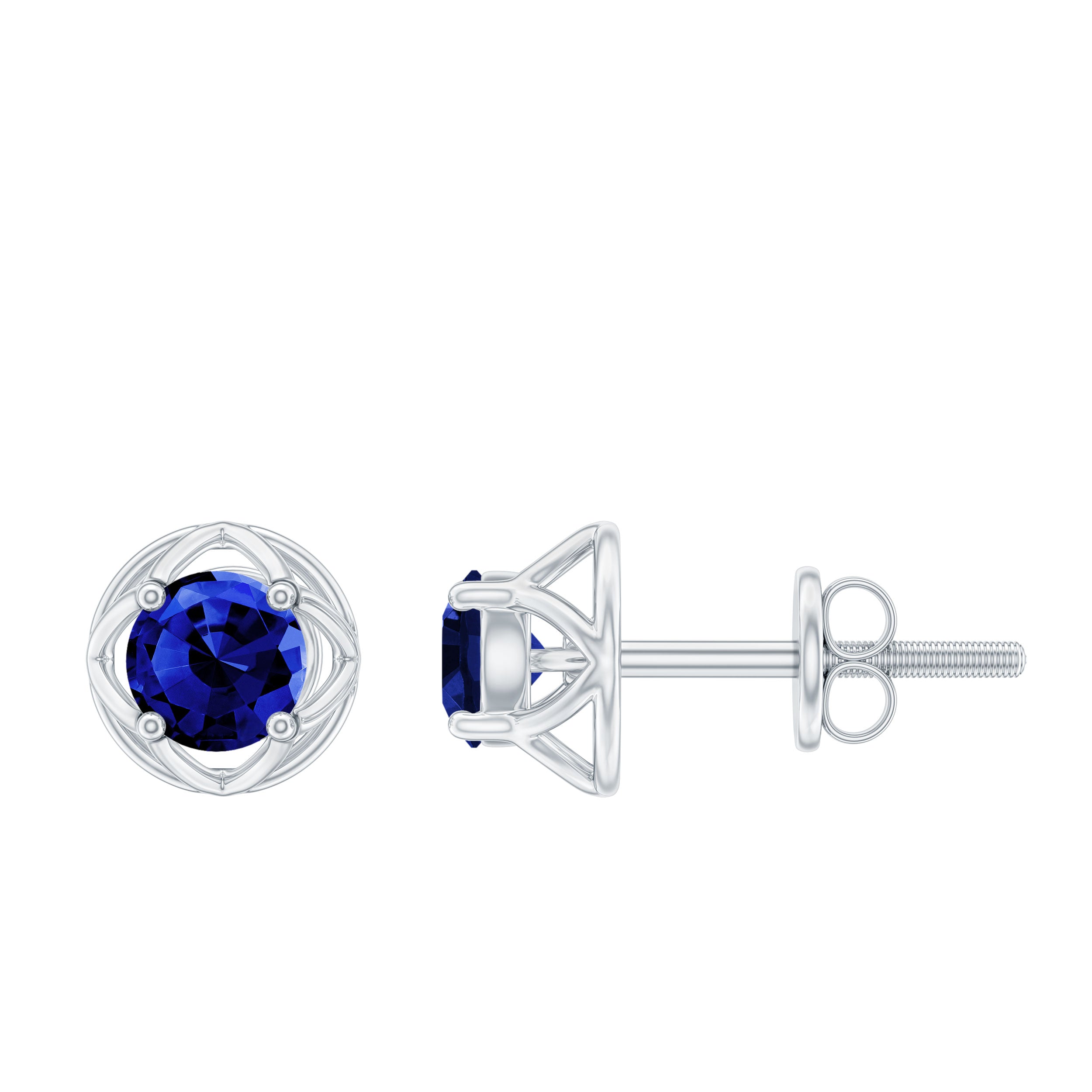 Introducing an alluring jewelry piece, perfect for your loved one. These stud earrings feature a screw back finding and are adorned with a Round Cut Created Blue Sapphire delicately set as the center stone in a prong setting. Give the gift of elegance and beauty with these captivating earrings, sure to bring joy and admiration to the recipient.
